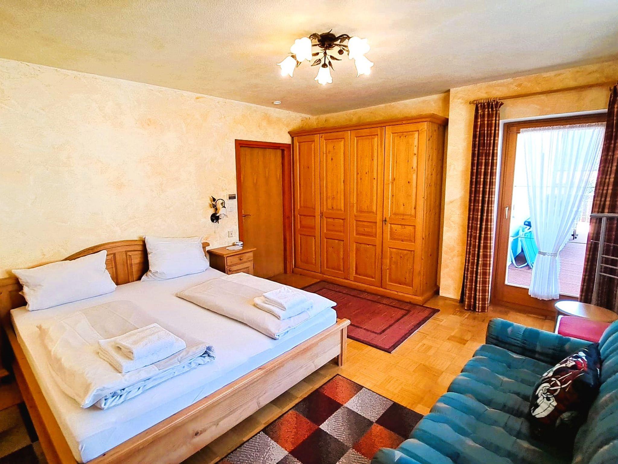 Das Wohnzimmer verfügt über eine Essecke im Landhausstil sowie eine bequeme Couch und verspricht gemütliche Abende. Die beiden Schlafzimmer sind jeweils mit einem Doppelbett und einem Schrank möbliert. Zur voll ausgestatteten, modernen Küche gehören neben einem Kühlschrank auch ein 4-Plattenherd, ein Backofen und eine Mikrowelle. Weiters verfügt die Wohnung über ein modernes Bad mit WC und Dusche, sowie eine separate extra Toilette. Der sonnige Südbalkon lädt jederzeit zum Verweilen ein und bietet eine Aussicht zum Genießen. Für unsere Gäste steht zudem freies WLAN, Kabel TV, eine Stereoanlage, ein eigener Parkplatz und ein beheizter Skiraum zur Verfügung.