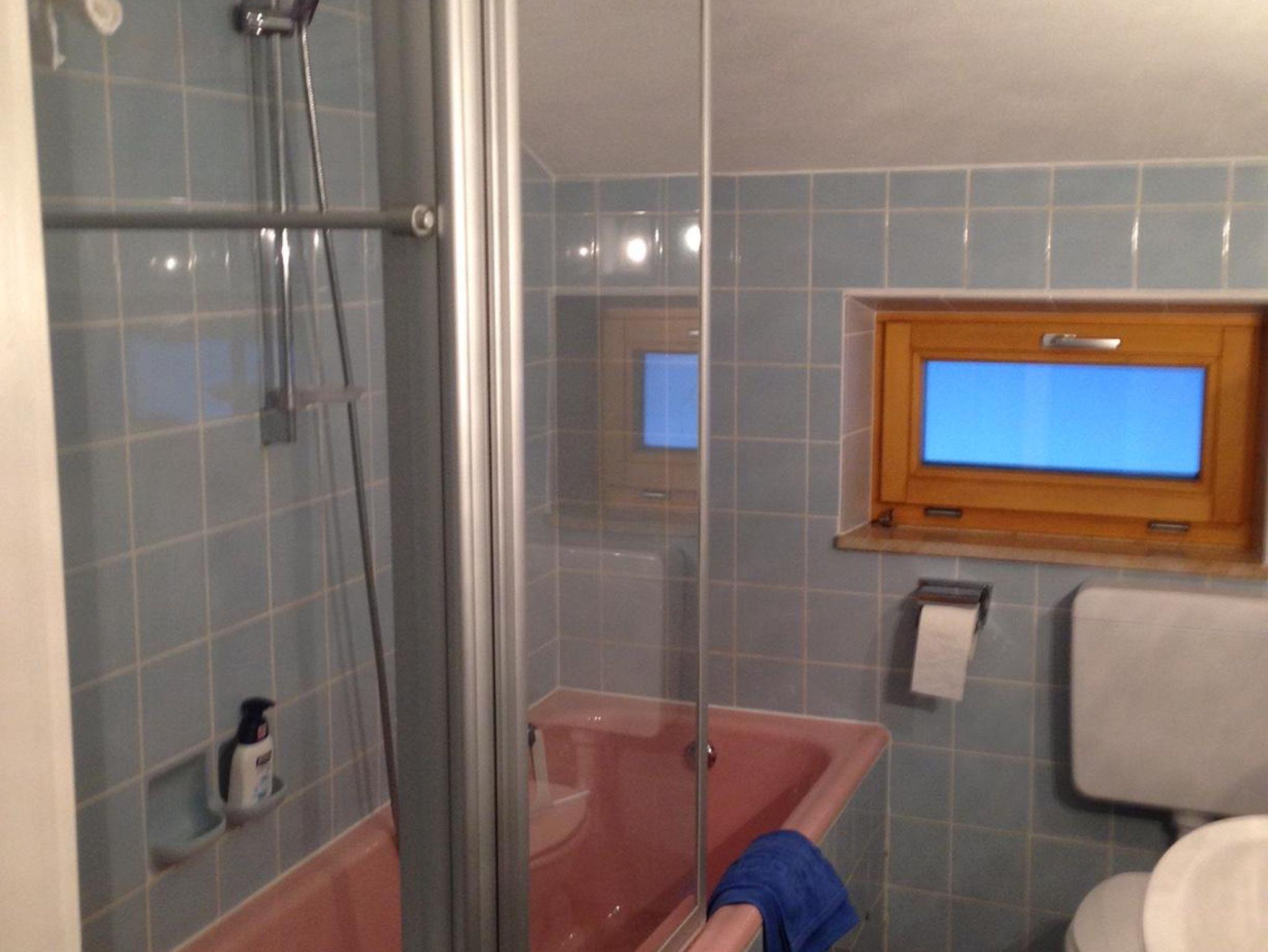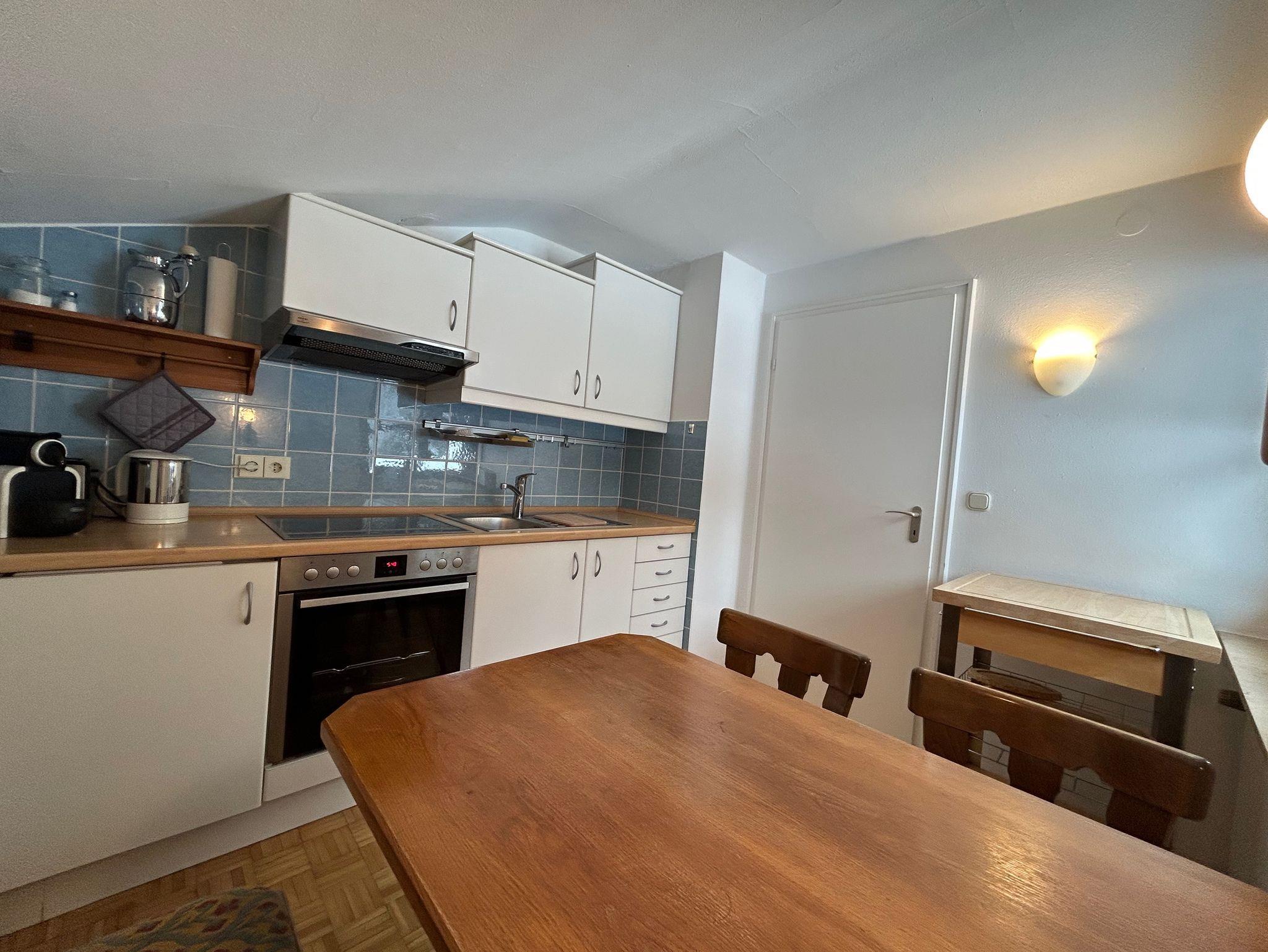 Es gibt eine separate Essküche mit 4 Sitzplätzen, ein Wohn- und ein Schlafzimmer, ein Badezimmer mit Badewanne und Bidet.