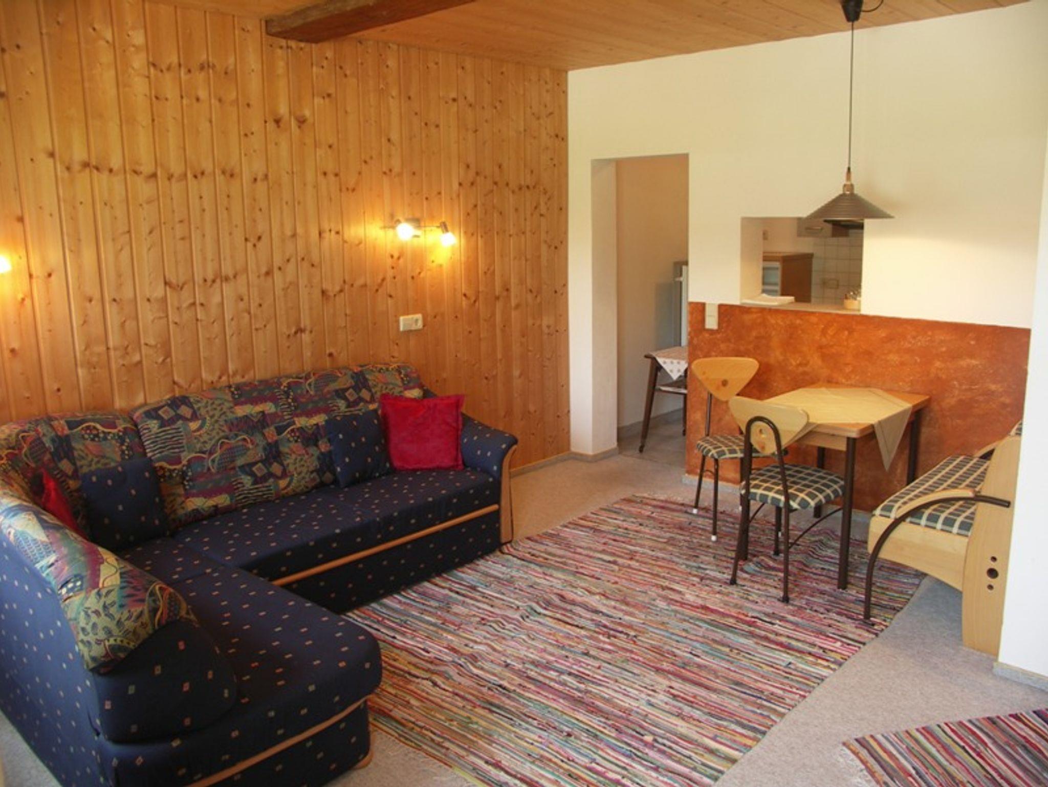 Komfortabel eingerichtete Zwei-Raum-Wohnung mit ca. 60m². In der separaten Küche lassen sich kleine Mahlzeiten zubereiten. Das Schlafzimmer ist mit Doppelbett ausgestattet. Der gemütliche Wohnraum verfügt über ein Ausziehsofa und TV. Das Bad enthält eine Dusche und WC. Zur Wohnung gehört auch ein kleiner Vorraum und eine Terrasse, von der aus Sie einen herrlichen Blick zum Unterberg haben.