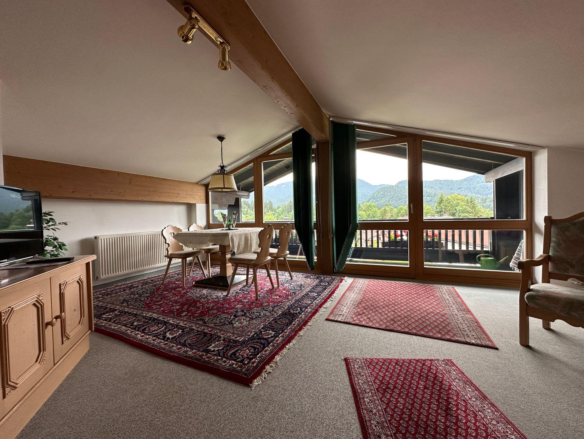 Wunderschöne Zwei-Raum-Wohnung mit 67 m² und extra Küche und Schlafzimmer. Großes Panoramafenster mit herrlichem Bergblick. Bad mit Dusche, Badewanne und WC. Gemütlich eingerichtetes Wohnzimmer.