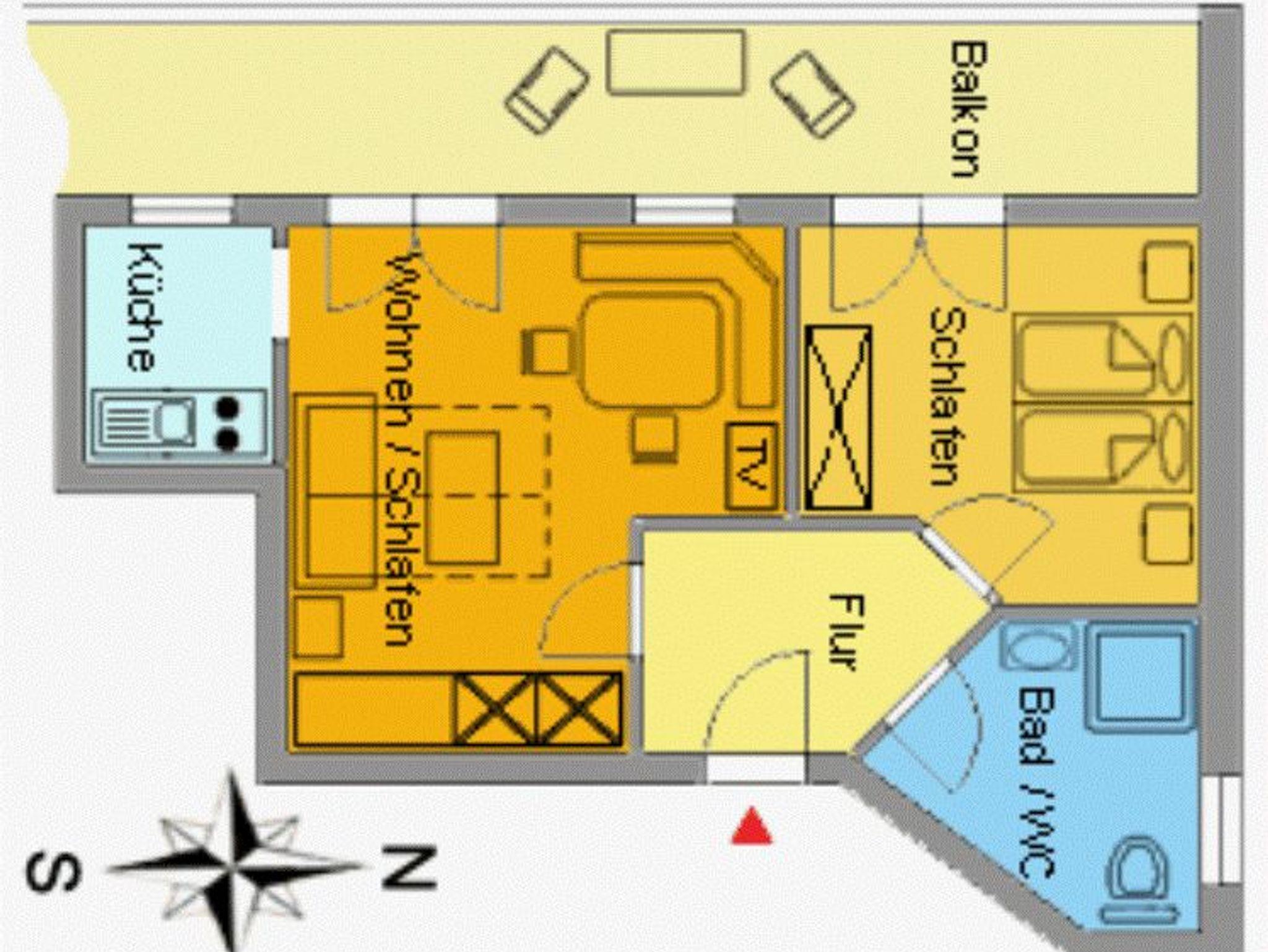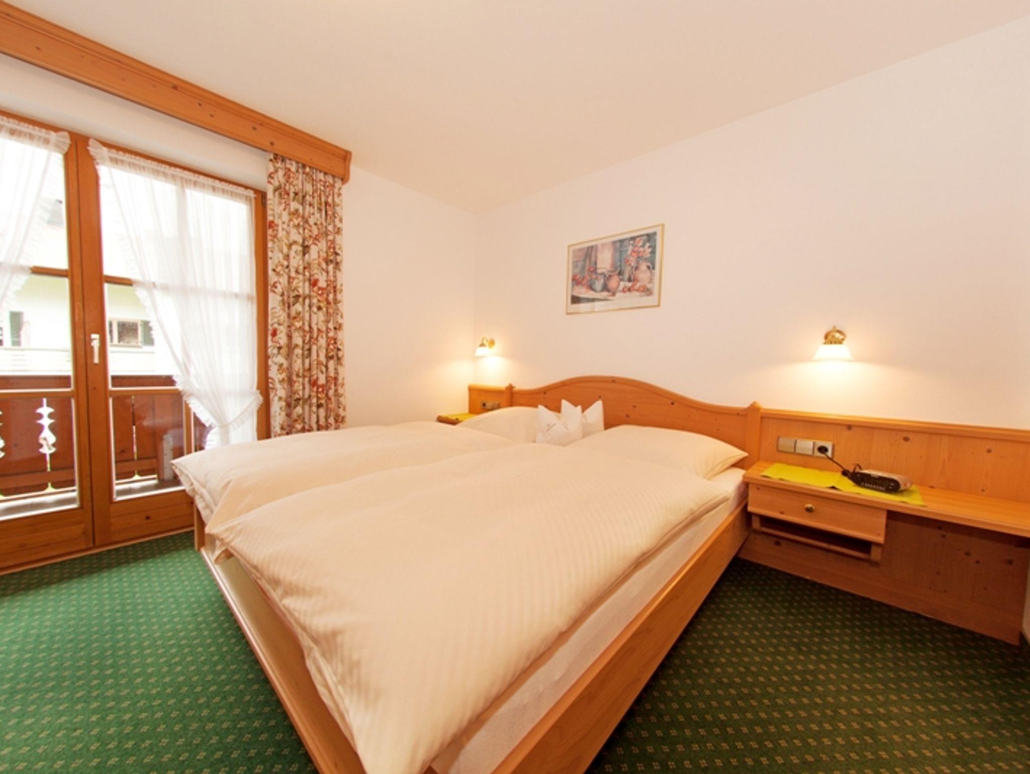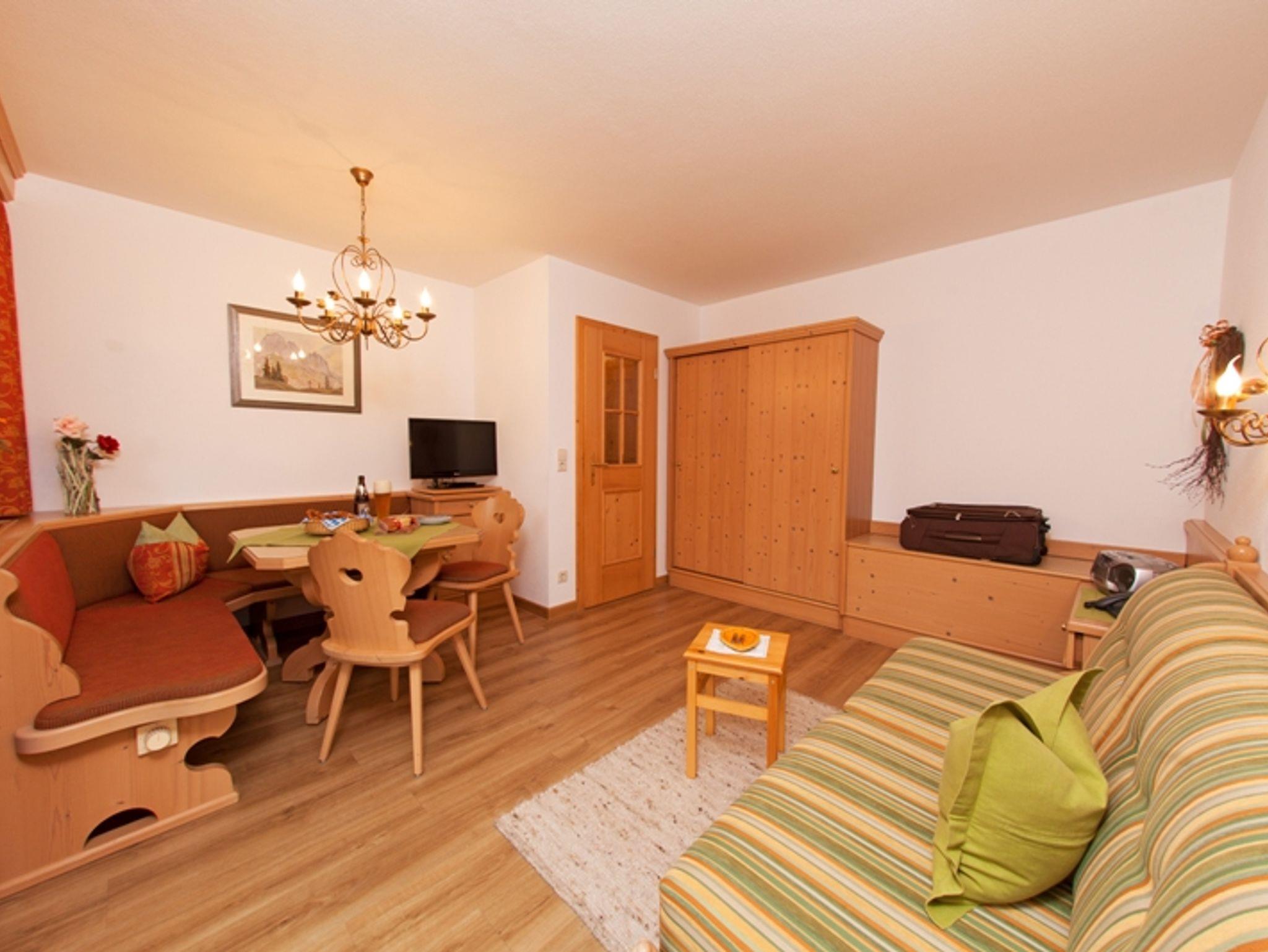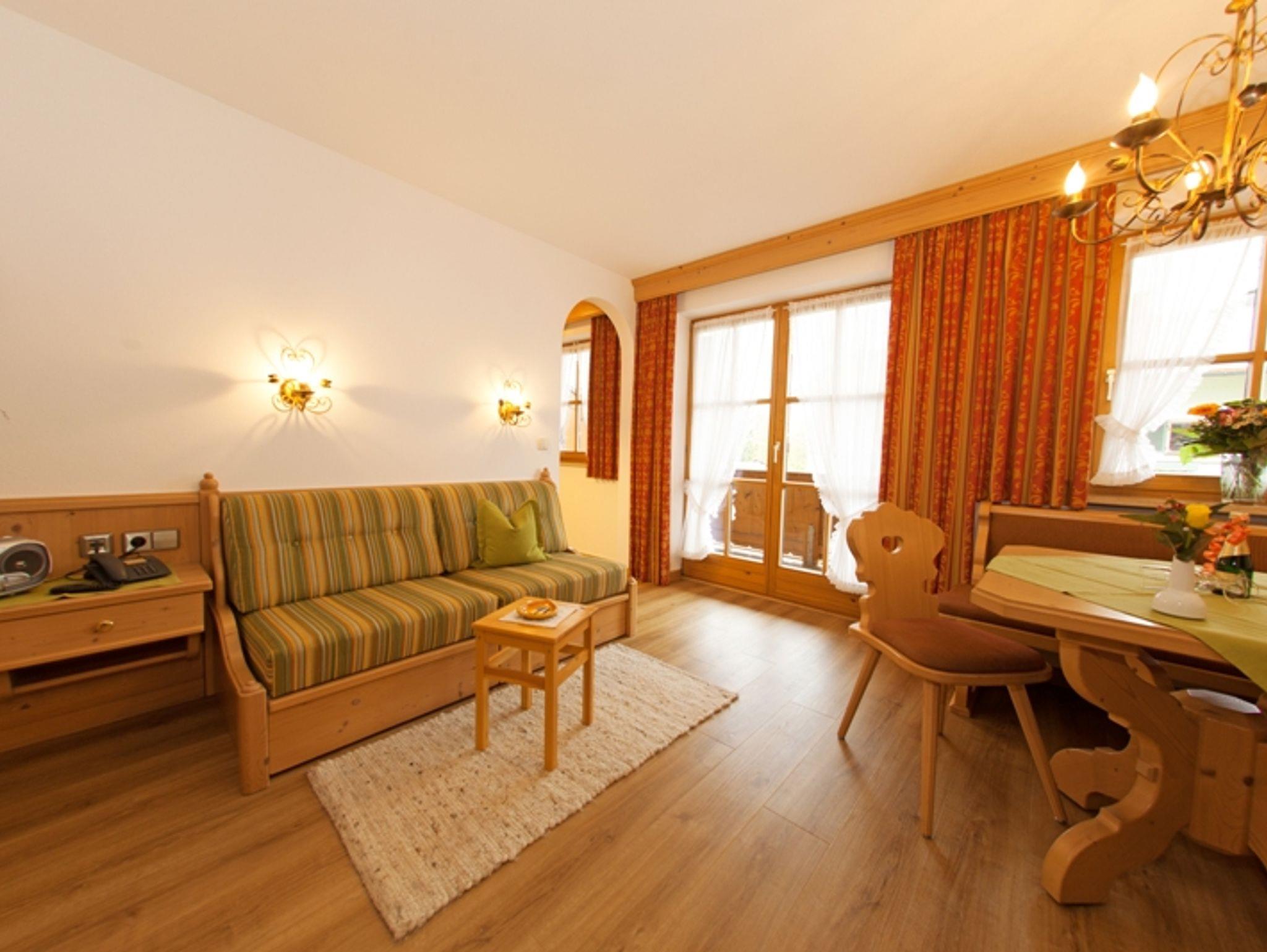 Diese Zwei-Raum-Wohnung mit 42 m² bietet Platz für 1-2 Personen. Der Wohnraum kann als getrenntes Schlafzimmer (Federkernsofa) genutzt werden. Die gemütliche Sitzecke lädt zum verweilen ein. Das separate Schlafzimmer ist mit einem Doppelbett eingerichtet. In der separaten Küche mit Mikrowelle können schmackhafte Mahlzeiten zubereitet werden. Der große Westbalkon bietet einen freien Blick in die wunderschöne Bergwelt. Die Ausstattung wird komplettiert mit Dusche/WC, Kabel-TV und kostenlosem Internet. Einen Grundriss der Wohnung finden Sie auf unserer Homepage.