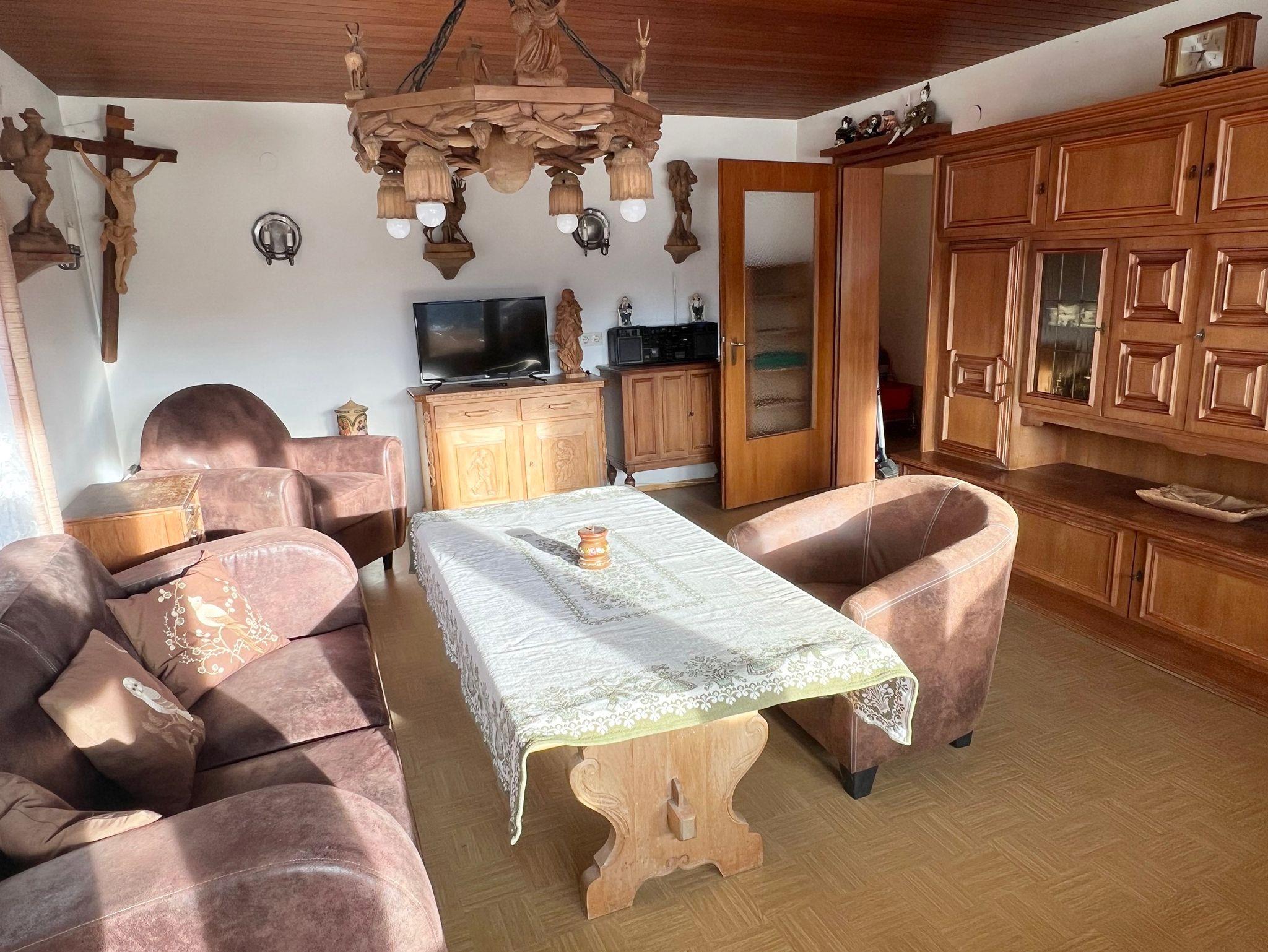 Die Ferienwohnung Sonnenseite verfügt über einen separaten Hauseingang über den Freisitz (Balkonterrasse) Sie ist mit ebenerdiger Dusche/WC, handbemalten Massivholzmöbeln im Schlafzimmer und mit Schnitzereien im Wohnzimmer ausgestattet. Eine Vollholzküche sorgt für Gemütlichkeit. Die Küche hat Kühlschrank, Backofen, Cerankochfeld, Kaffeevollautomat, Kaffeemaschine, Mikrowelle, Toaster, Wasserkocher und ist gut ausgestattet. Das Schlafzimmer verfügt über drei Schränke, Kommode und separates Waschbecken. ebenerdig. Eine eigene Garderobe sorgt für Ordnung. Deutsches Sat-TV, WLAN-Internet, Terrasse Auf dem Freisitz blicken Sie über das Reit im Winkler Tal.