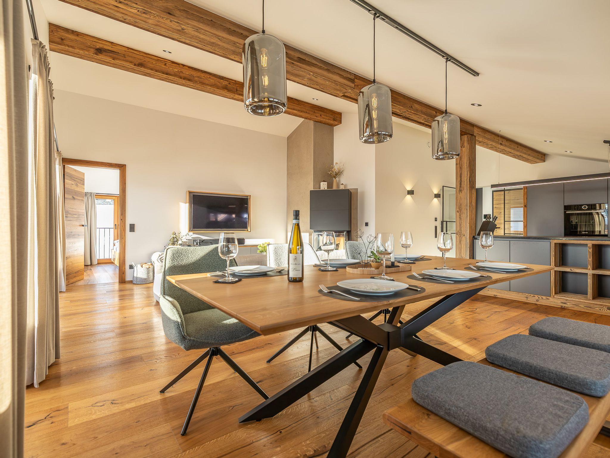 Das neu erbaute Chalet Roahäusl in Reit im Winkl bietet auf 140 Quadratmetern Wohnfläche ein luxuriöses und gemütliches Ambiente, das ideal für einen erholsamen Aufenthalt in den bayerischen Alpen ist. Das charmante Chalet vereint traditionelle Architektur mit modernen Annehmlichkeiten und schafft so eine perfekte Balance zwischen rustikalem Flair und zeitgemäßem Komfort. Die großzügige Wohnfläche erstreckt sich über mehrere Räume, die stilvoll eingerichtet sind und viel Platz für Familien, Paare oder kleine Gruppen bieten. Hier können Sie entspannte Stunden im gemütlichen Wohnzimmer verbringen, in der voll ausgestatteten Küche köstliche Mahlzeiten zubereiten oder in einem der komfortablen Schlafzimmer zur Ruhe kommen. Die hochwertige Ausstattung und die liebevollen Details sorgen dafür, dass Sie sich vom ersten Moment an wie zu Hause fühlen