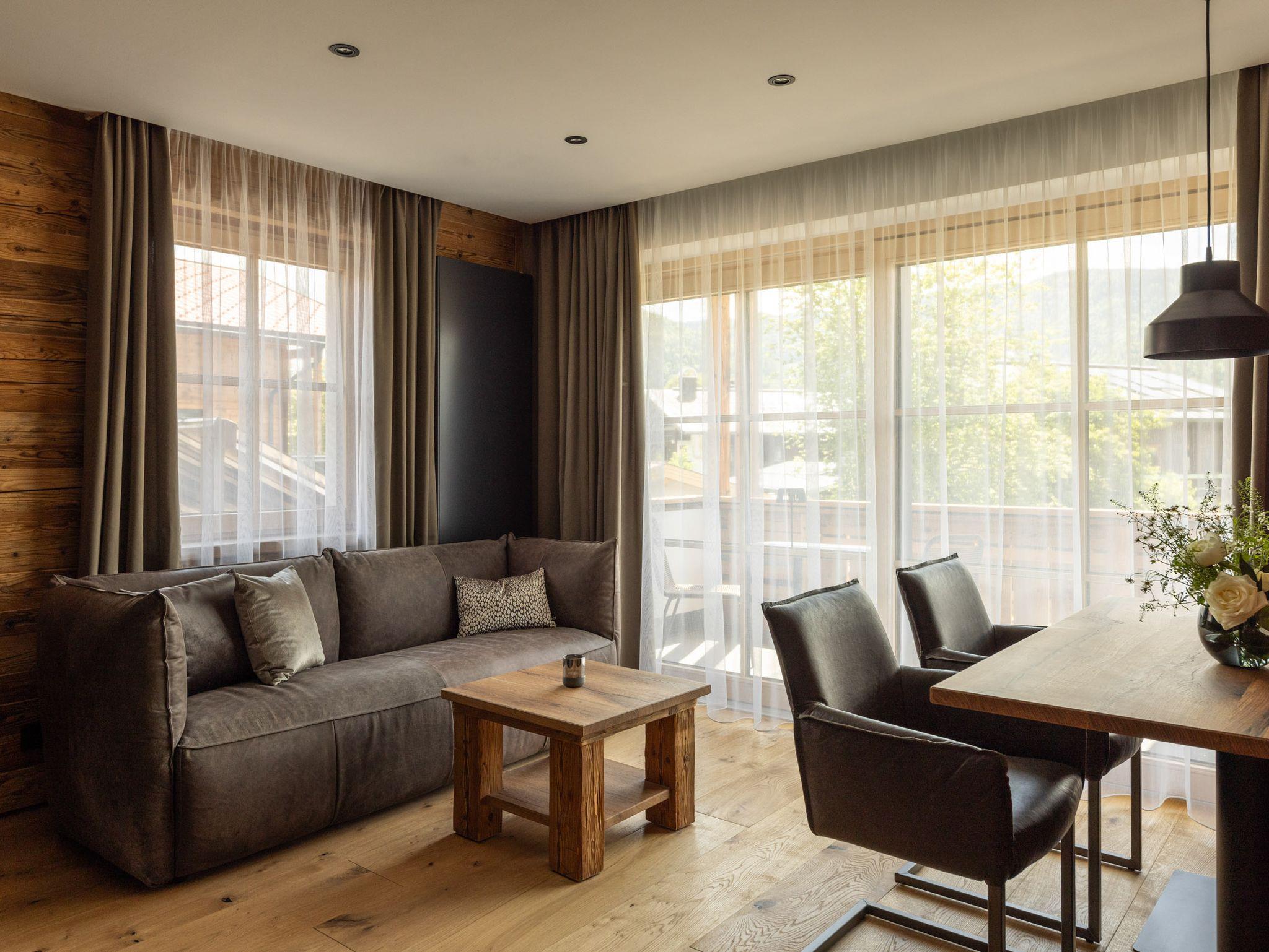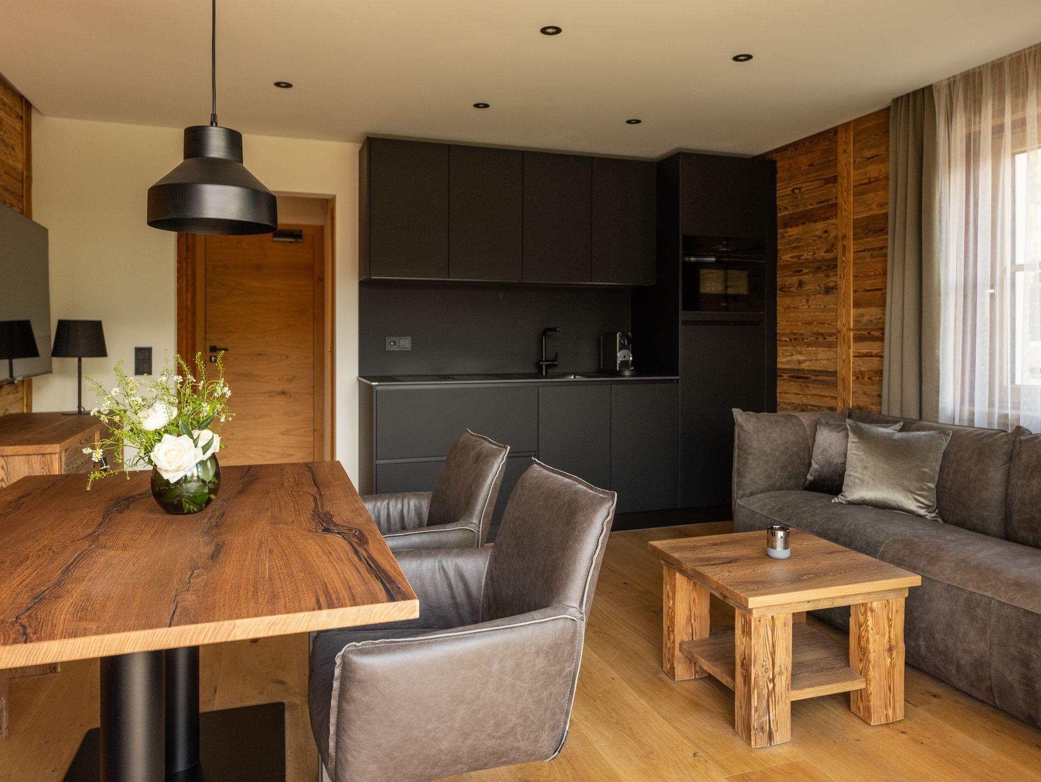 Für alle, die Ruhe mit Stil und Natur mit Komfort verbinden möchten: Sobald Sie Das Denisl betreten, stellt sich ein tiefes Gefühl der Erholung ein. Mitten im Herzen von Reit im Winkl, zentral an der Sonnenloipe, wartet ein neues Apartmenthaus mit 14 stilvollen, hellen Ferienwohnungen voller Flair auf Ihre unvergessliche Zeit im Chiemgau. Viel Altholz, gedeckte Farben, indirekte Beleuchtung, schwarze Armaturen und große Türen zu Balkon oder Terrasse machen Ihre Urlaubstage zu einem echten Design-Erlebnis. Freuen Sie sich auf bestens ausgestattete Küchen, einladende Essbereiche, gemütliche Ledersofas, große Waschtische, kuschelige Boxspringbetten und Regenduschen, die Sie rundum verwöhnen und entspannen lassen. Im Haus zählt der großzügige Aufenthalts- und Eventraum mit 120?m² zu einem beliebten Treffpunkt, um gemütlich zusammenzusitzen, gemeinsam zu feiern oder Tagungen durchzuführen – ausgestattet mit Küche, Theke, Tontechnik, Getränke-/Snackautomat und einer großen Sonnenterrasse mit Blick ins Grüne. Für Aktive Urlauber beginnen direkt vor der Tür idyllische Wanderwege, tolle Biketouren und gepflegte Skiloipen im Winter. Ihre Ausrüstung ist dabei bestens aufgehoben: im großen Skikeller mit Spinden und Skiwerkstatt sowie im Radlhäusl mit Fahrraddusche, Werkstatt und Spinden. Für entspannte Momente sorgt die charmante Sauna im Garten – Ihr Rückzugsort für Körper und Geist. Familien freuen sich über den Spielplatz und das Freibad ganz in der Nähe, aktive Urlauber schätzen schätzen die Haltestelle für den Wanderbus direkt hinter dem Haus. Kostenlose Parkplätze sind in ausreichender Anzahl im Hof vorhanden und wer elektrisch unterwegs ist, findet eine E-Ladestation bei der nahen Tourist-Info.