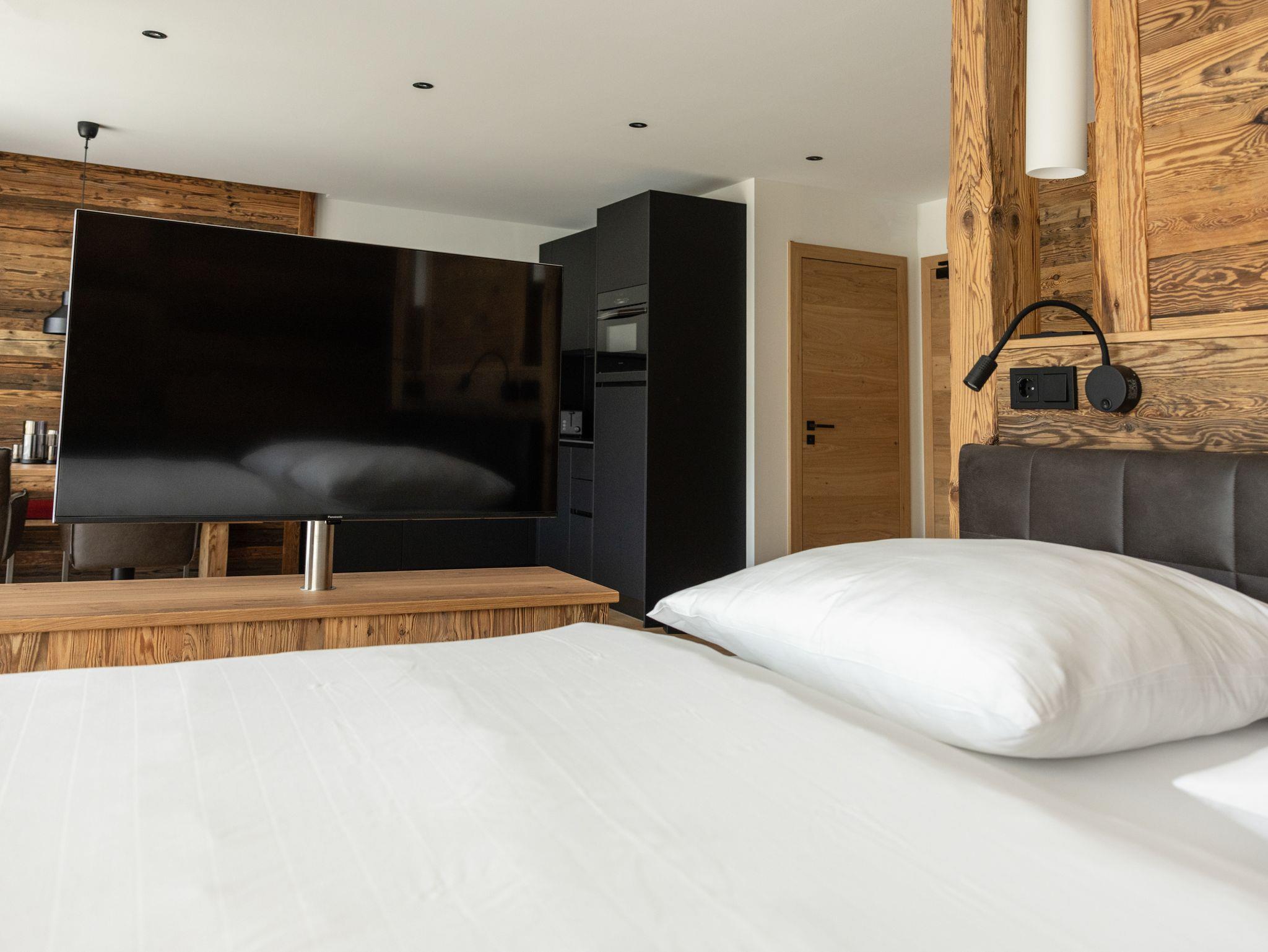 Hell, offen und gemütlich: Diese 55?m² große Wohnung eignet sich perfekt zum Durchatmen und Genießen – drinnen wie draußen. Edle Materialien, ein gemütliches Boxspringbett mit drehbarem TV und ein Essbereich mit Blick auf die großzügige Sonnenterrasse mit 35 m² schaffen viel Wohngefühl mit Herz. Für entspannte Tage zu zweit mit allem, was dazugehört.