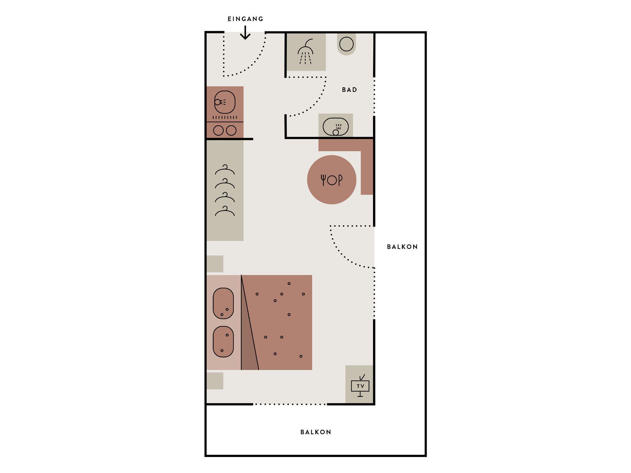 Das neu renovierte Apartment (30?m²) verfügt über einen kombinierten Wohn- und Schlafbereich mit Doppelbett (180x200), Flat-TV, gemütlicher Sitzecke, Schrank und einer voll ausgestatteten, kompakten Küchenzeile mit Geschirrspüler. Das Bad ist modern und mit Dusche ausgestattet.