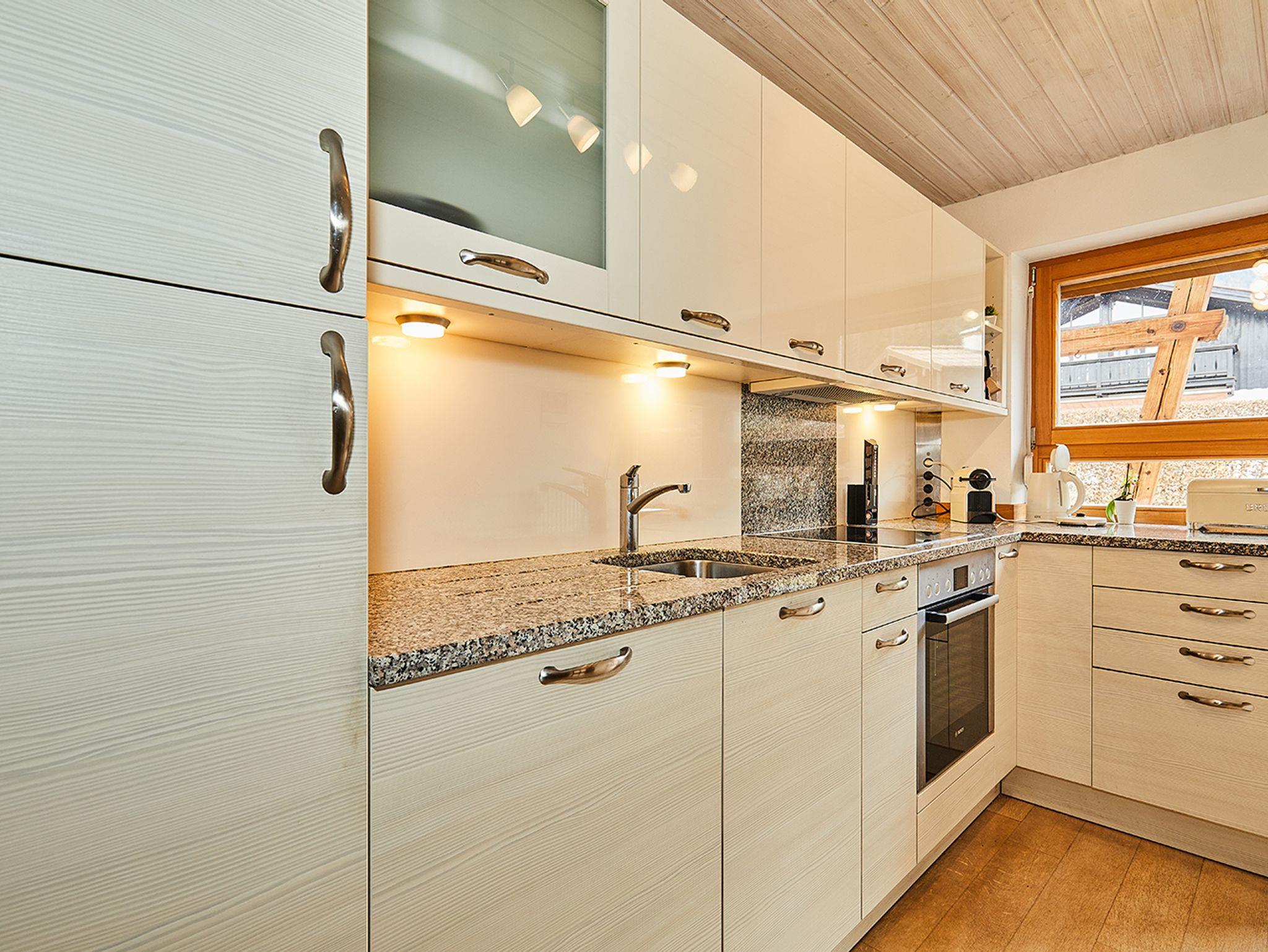Es verfügt über eine schöne Stube mit Kachelofen, wo man nette Spiele- oder Fernsehabende verbringen kann. Direkt zwischen Wohnzimmer und der vollausgestatteten modernen Küche inkl. Spülmaschine befindet sich das Esszimmer, locker für 8 Personen.