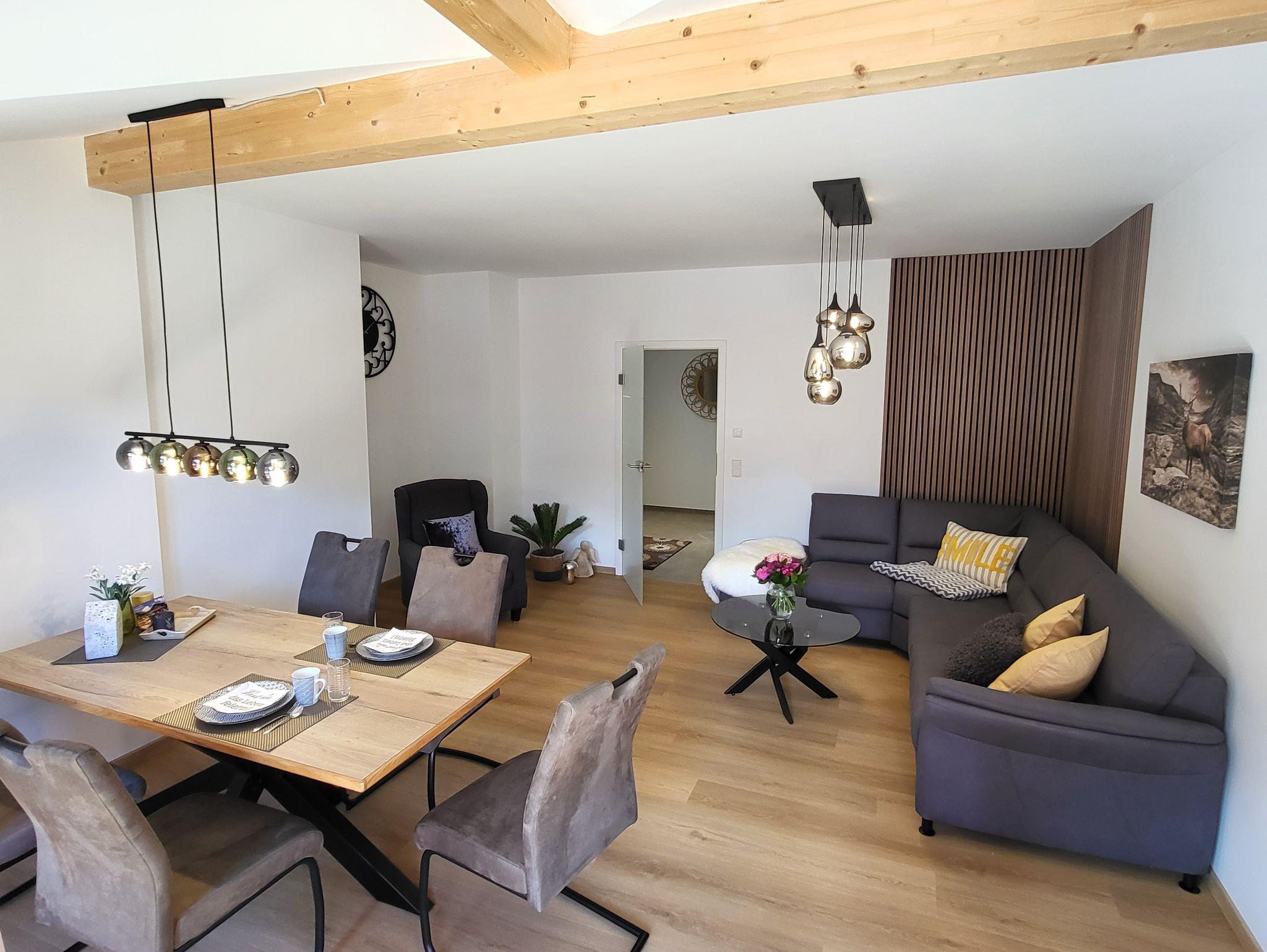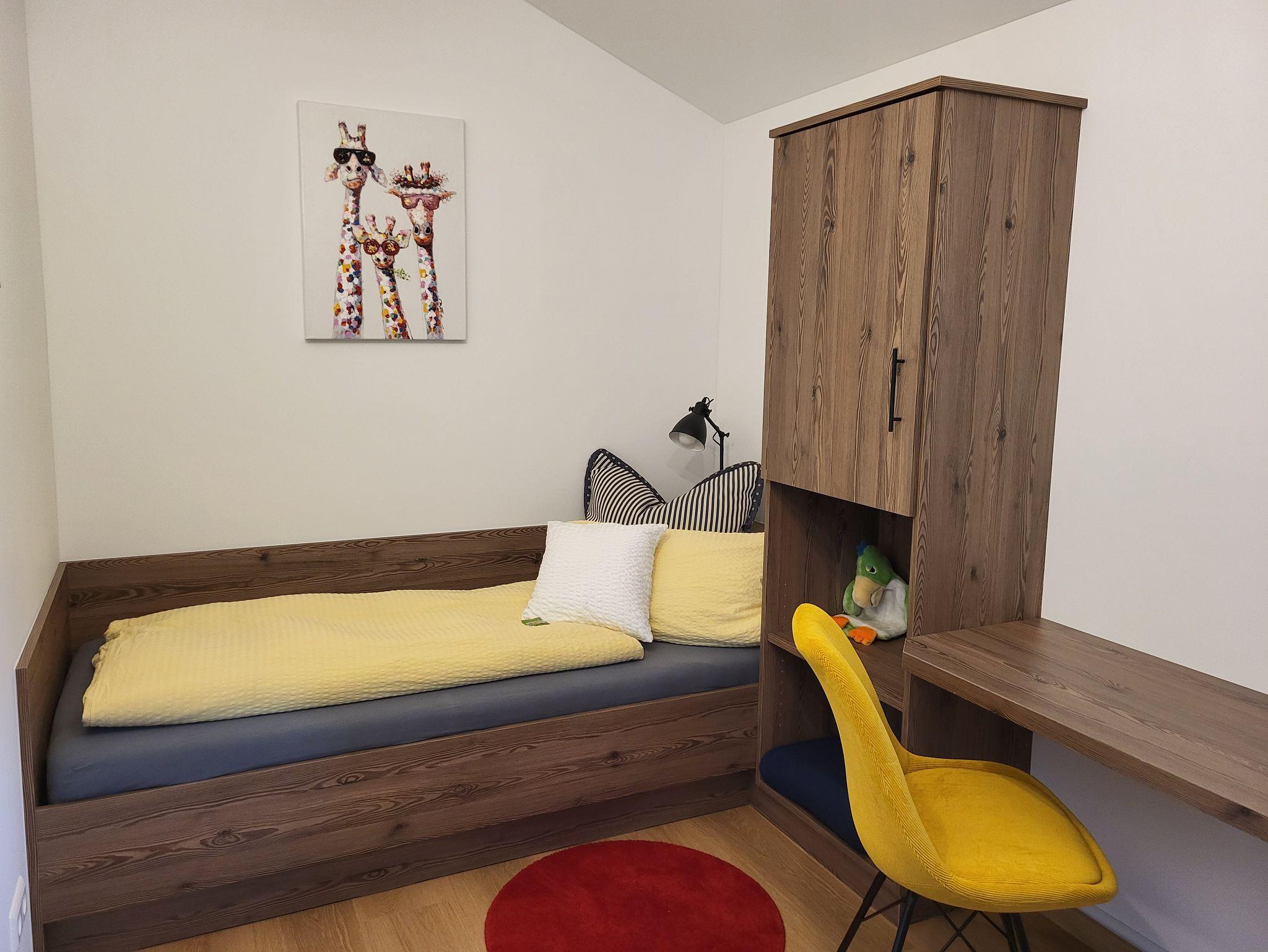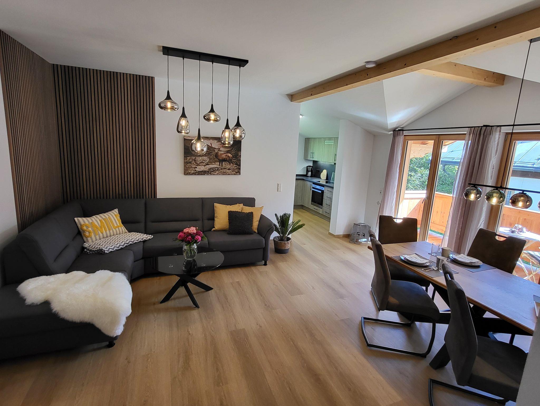 Moderne, in 2024 neu gebaute, geräumige Dreiraumwohnung mit 75 m2 in Holz-/Ständerbauweise im 1. Stock, komplett mit Fußbodenheizung ausgestattet, ruhig nach Osten gelegen - für max. zwei Erwachsene und drei Kinder buchbar, besteht aus Eltern- und Kinderschlafzimmer, großem Bad, sowie großem Wohnzimmer mit Couch, Essecke mit Stühlen und angrenzender Küche, sowie geräumigen Balkon!