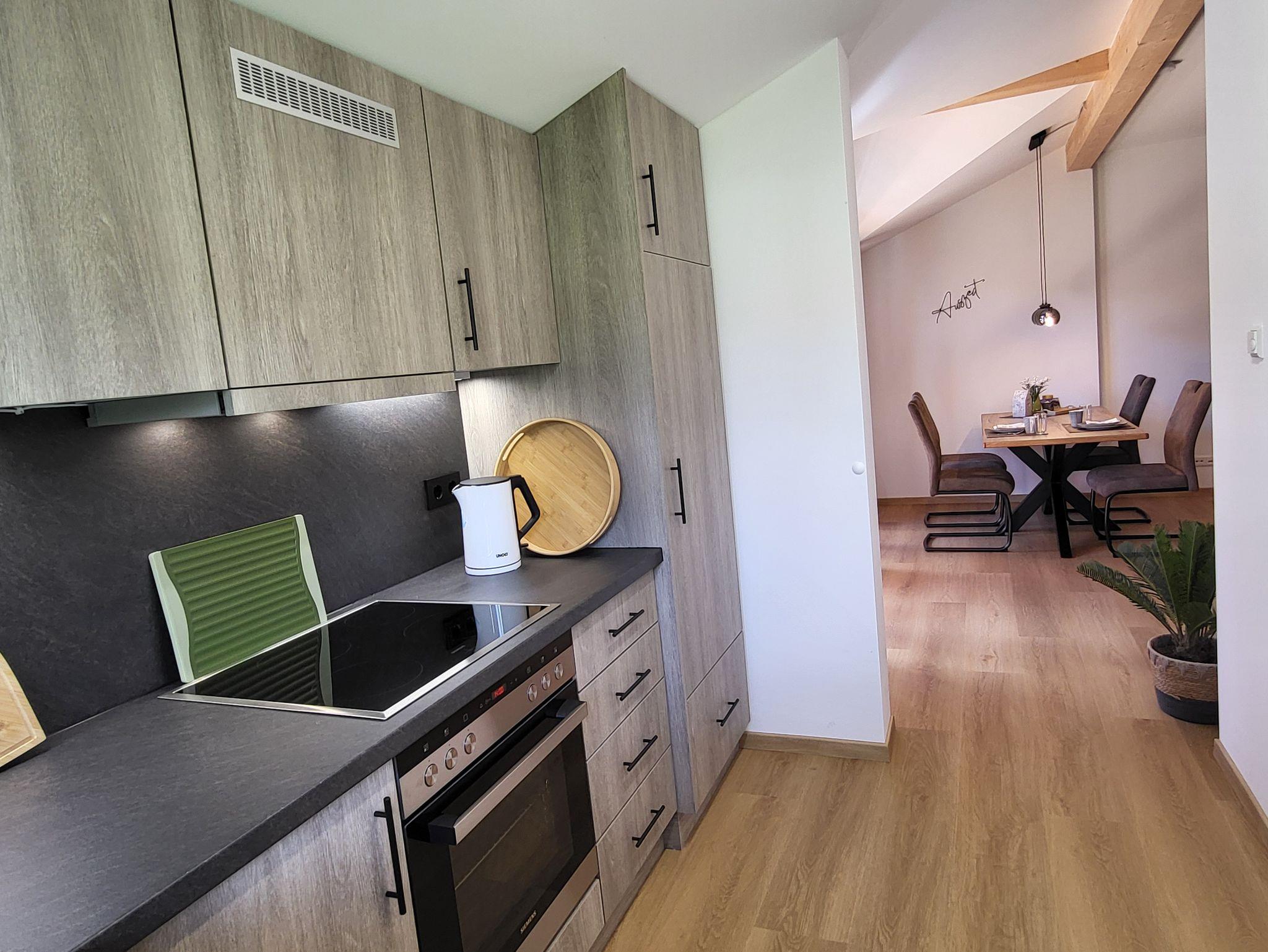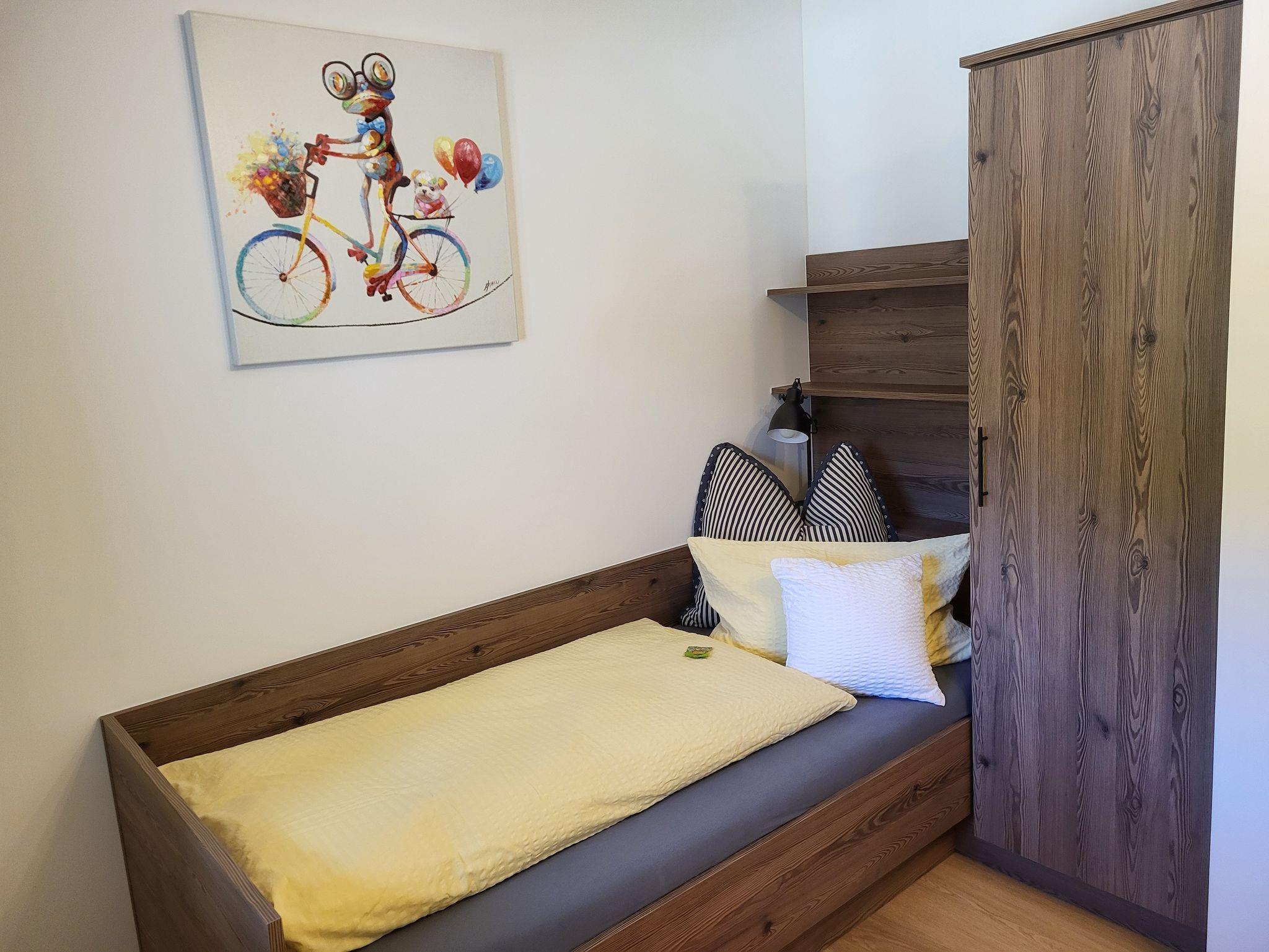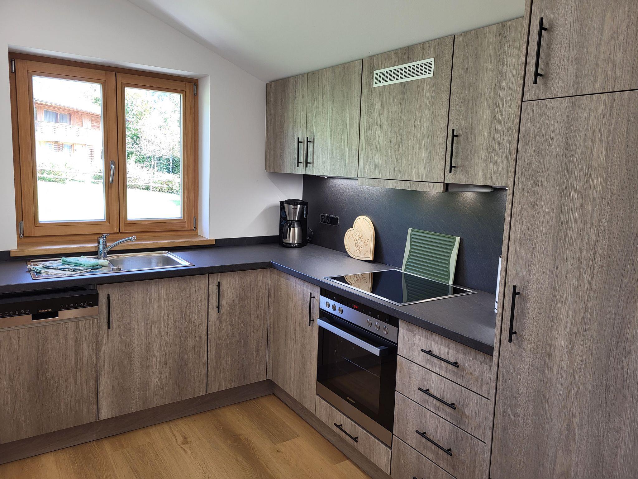 Moderne, in 2024 neu gebaute, geräumige Dreiraumwohnung mit 75 m2 in Holz-/Ständerbauweise im 1. Stock, komplett mit Fußbodenheizung ausgestattet, ruhig nach Osten gelegen - für max. zwei Erwachsene und drei Kinder buchbar, besteht aus Eltern- und Kinderschlafzimmer, großem Bad, sowie großem Wohnzimmer mit Couch, Essecke mit Stühlen und angrenzender Küche, sowie geräumigen Balkon!