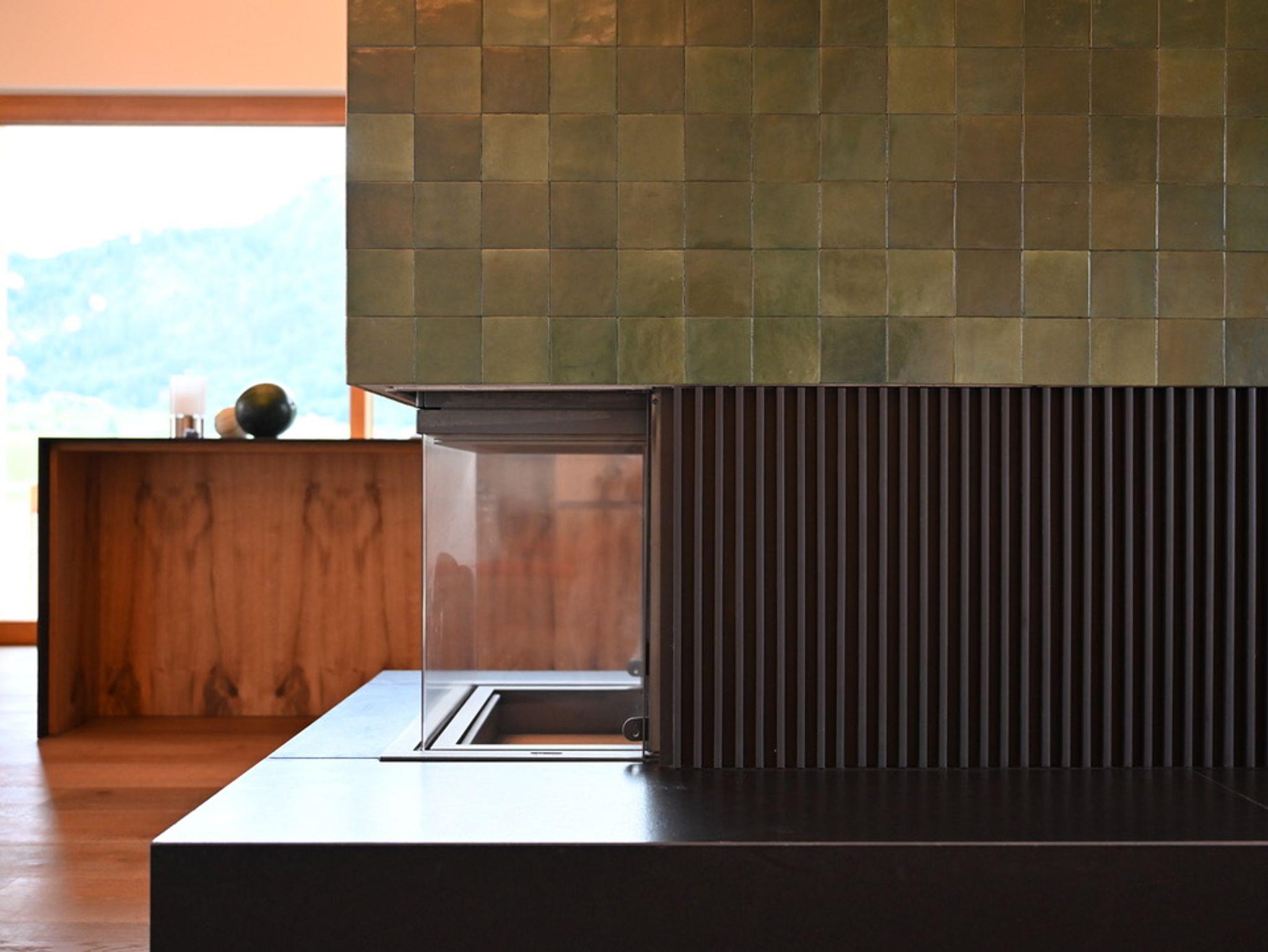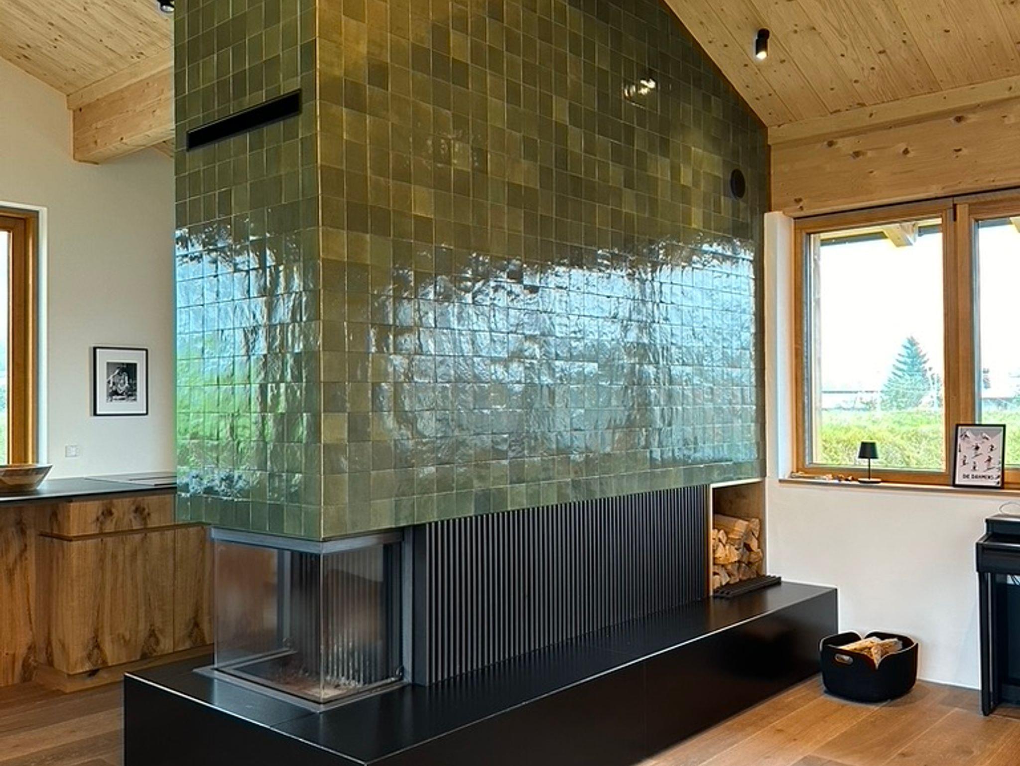 Das Haus hat im Obergeschoss einen offenen und hohen Wohnbereich mit Küche, Kochinsel und Wohnraum, bis zu 10 Personen können am großzügigen Tisch der Essecke Platz finden.