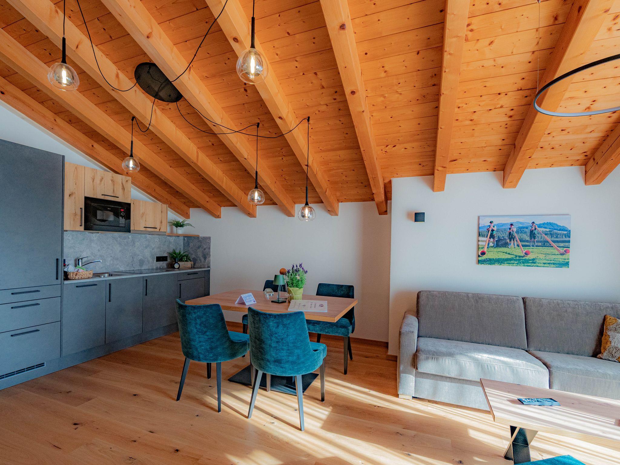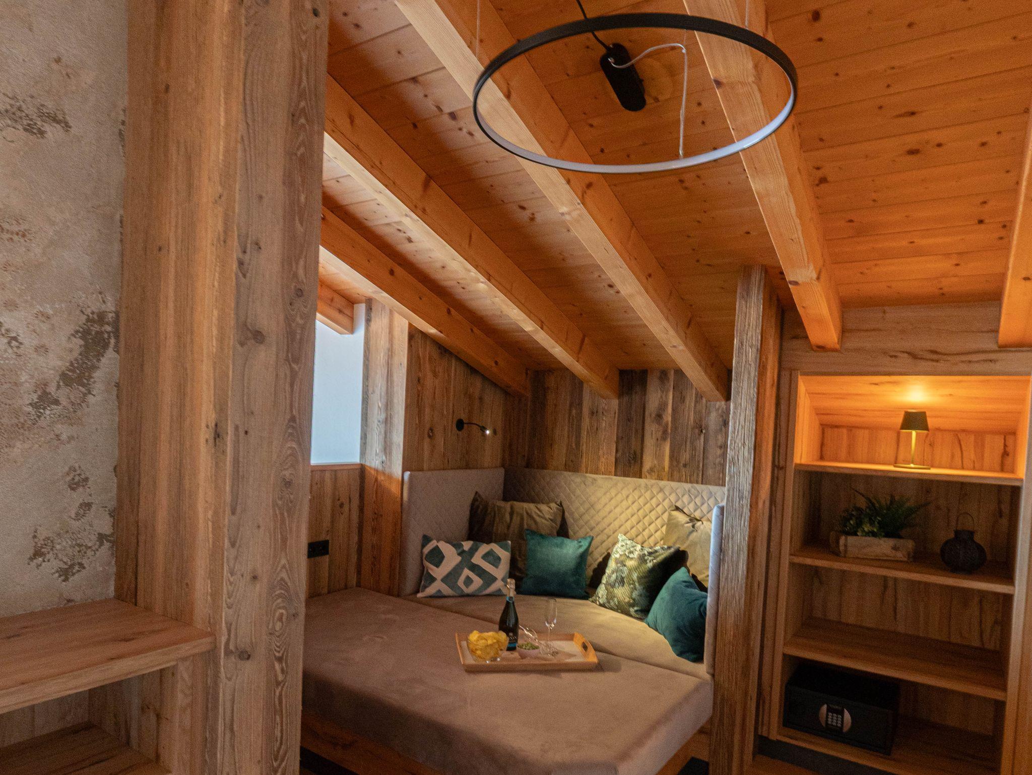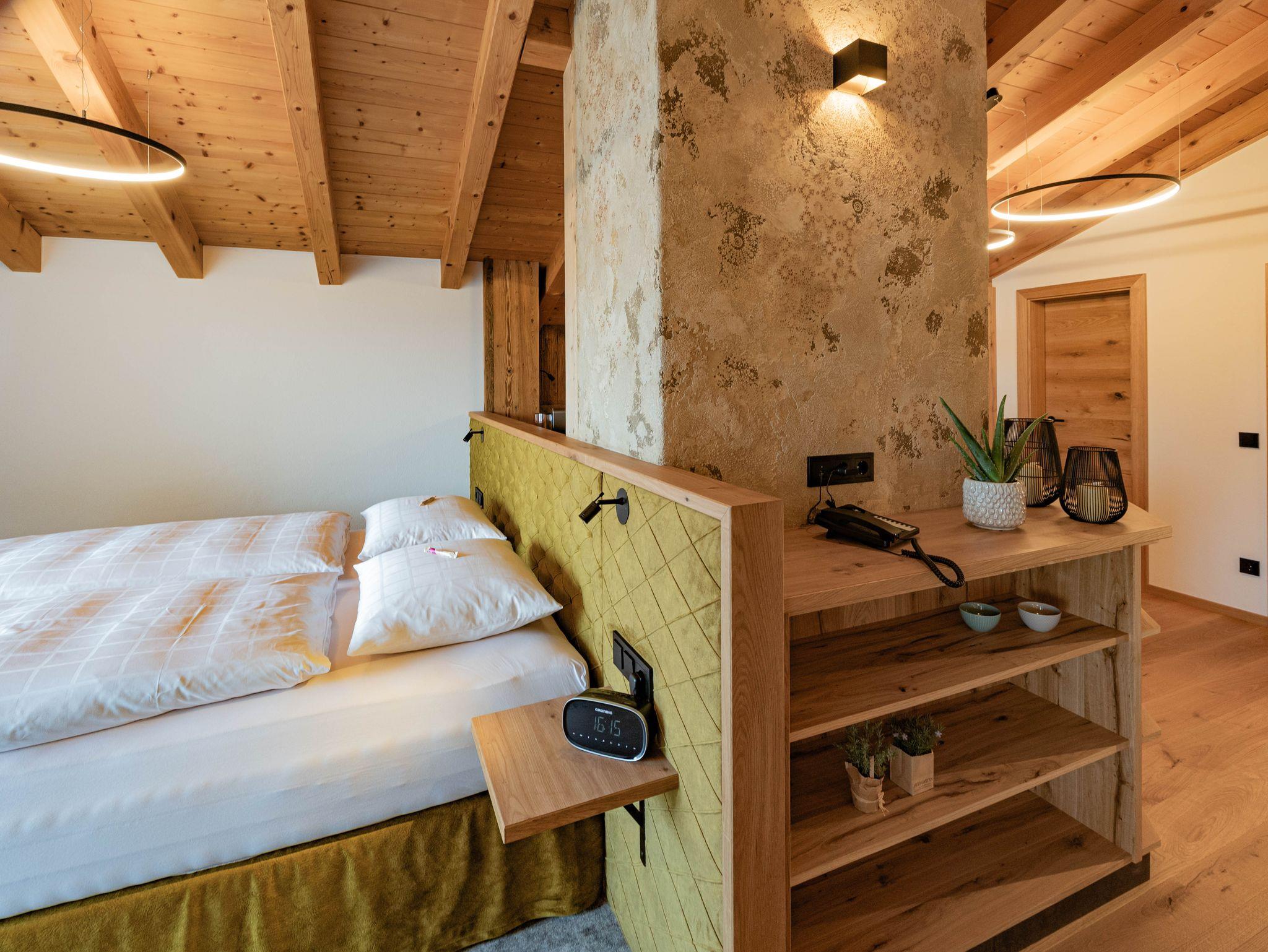 Einzigartig und mit einem atemberaubenden Blick auf die umliegende Bergkullisse begeistert unsere Dachgeschoss-Suite „Stoaadler“.