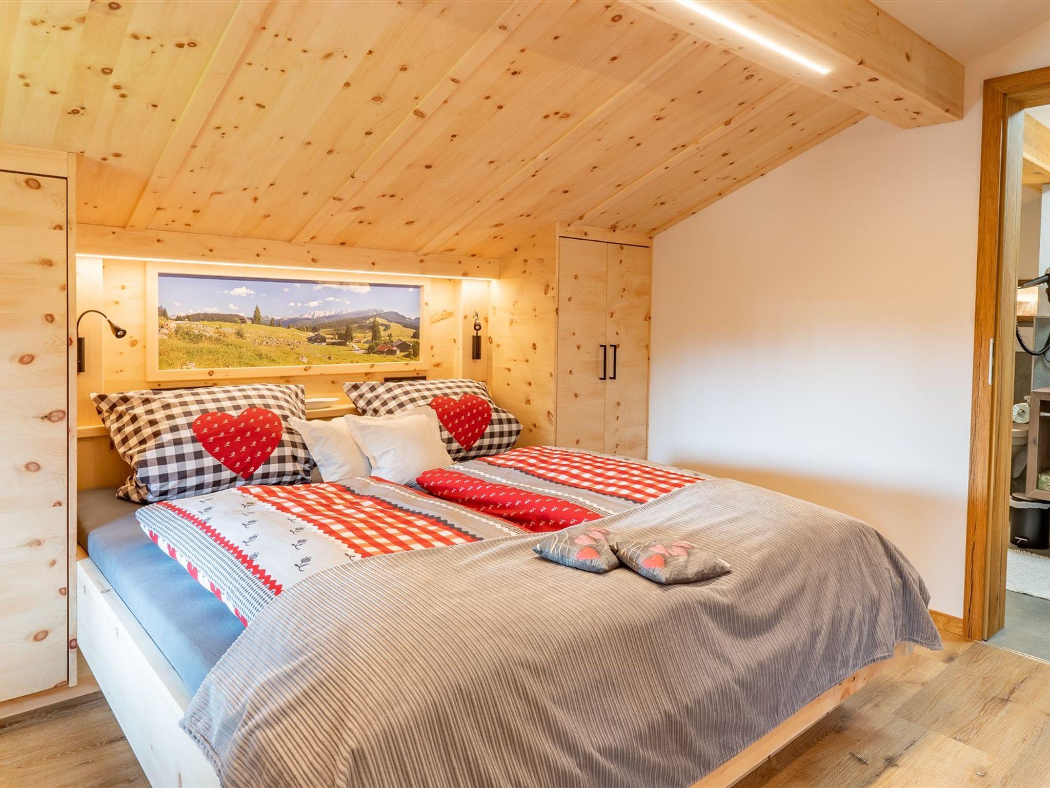 Unsere sieben Ferienwohnungen (für 2-5 Personen), davon Nr. 1,6,7,8 mit einer **** und *****Sternen Klassifizierung und die drei Doppelzimmer sind teilweise alpenländisch, aber auch modern mit viel Liebe zum Detail gestaltet und werden ständig renoviert. Viele Schnitzarbeiten, Möbel und Holzdetails fallen auf - Sie werden vom Hausherrn individuell gefertigt - darum steckt auch viel Herzblut in der Einrichtung.