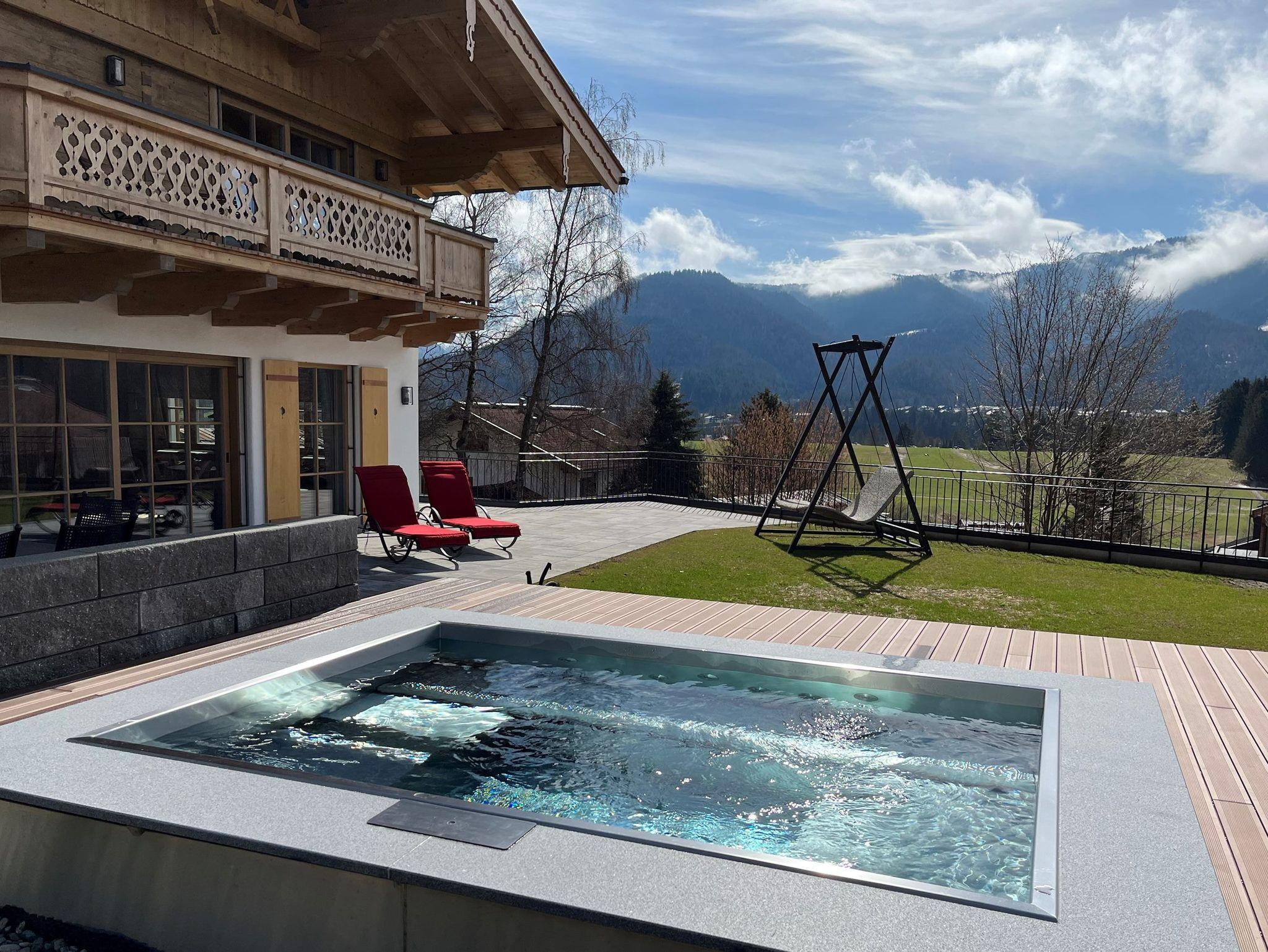 Nach einem aktiven Tag in unserer schönen Landschaft können Sie im hauseigenen Wellnessbad mit Panorama-Sauna entspannen. Anschließend können Sie in der offen gestalteten Komfortküche ein leckeres Essen zubereiten und dieses im angegliederten Essbereich genießen. Als perfekte Abrundung lassen Sie den Tag am offenen Feuer des freischwebenden Gyrofocus-Kamins mit musikalischer Untermalung aus der innovativen Audio-Anlage ausklingen. Der Pool hat eine Breite von 2,80 m und eine Länge von 2,0 m. Er verfügt über zwei Liegeflächen und vier Sitzflächen Bei uns können Sie zur Ruhe kommen, entschleunigen, die schöne Sicht auf die Berge wirken lassen und ein wenig aus Ihrem anstrengenden Alltag entfliehen.