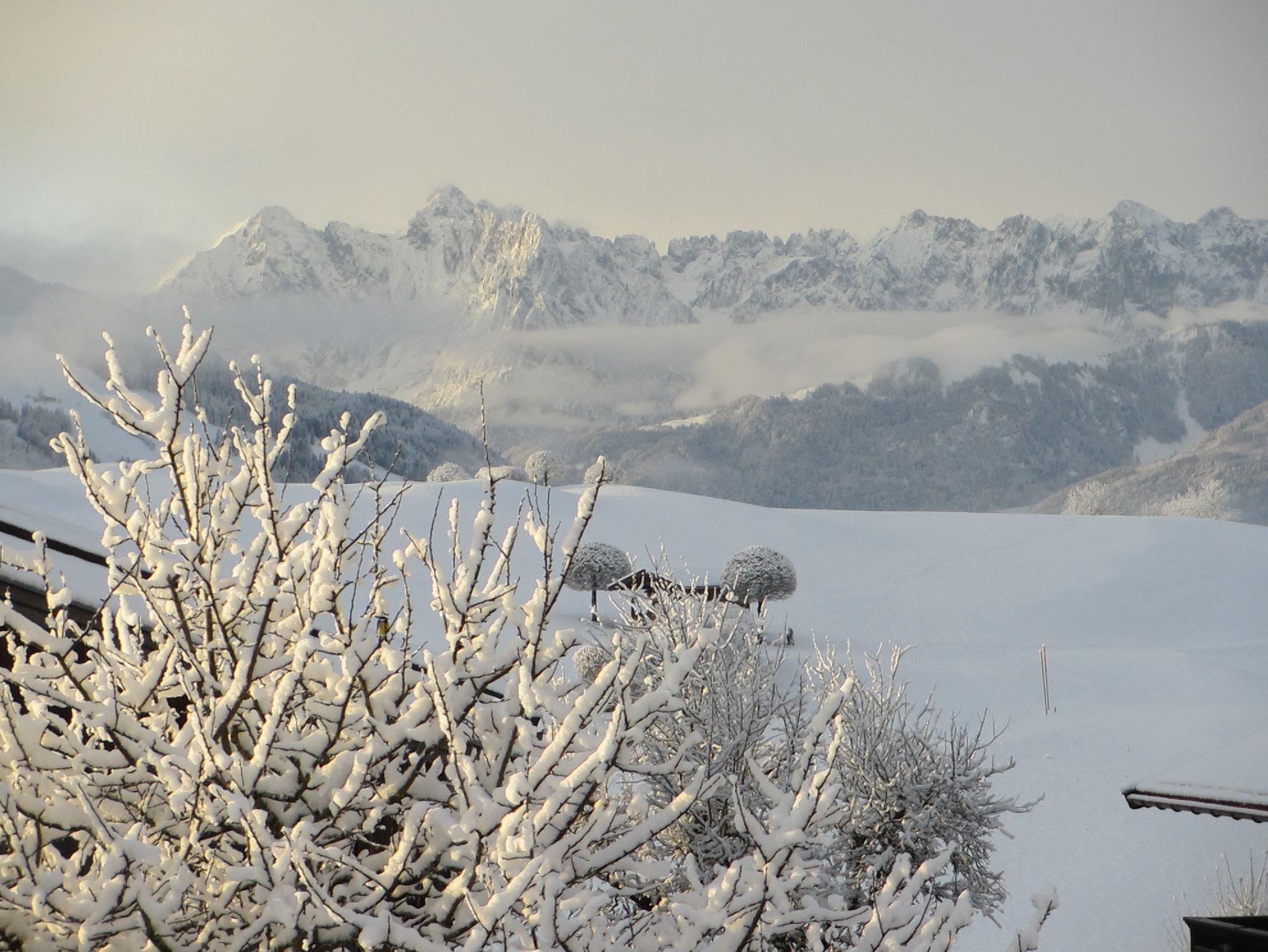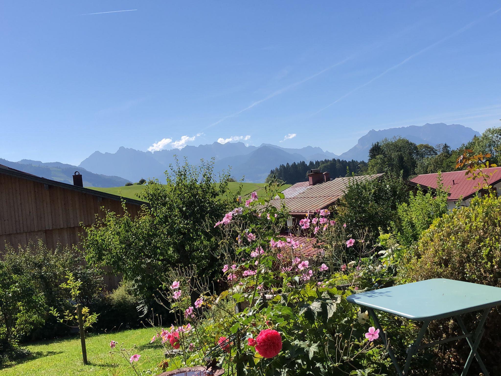 Unser Haus befindet sich in herrlich ruhiger Südhang Lage mit freiem Blick auf den Wilden und Zahmen Kaiser und die umliegenden Berge.