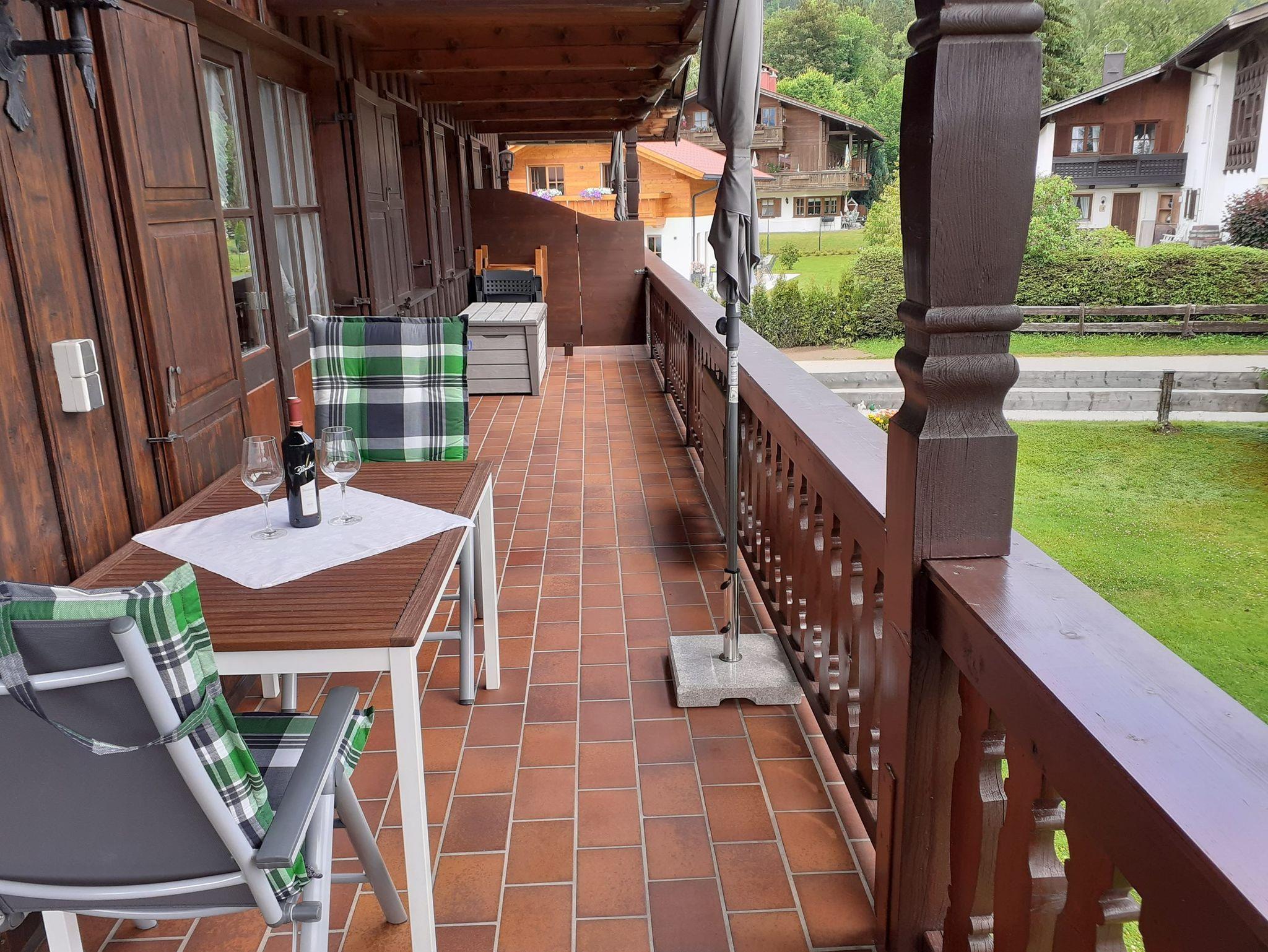 Die im alpenländischen Stil eingerichteten 2-Raum-Wohnungen sind hell und ruhig gelegen, verfügen jeweils über ein Wohn-/Esszimmer, ein separates Schlafzimmer, eine Einbauküche sowie ein Bad mit Fenster. Vom großen Südbalkon haben Sie einen herrlichen Blick auf die Berge und können hier Ihr Frühstück oder Abendessen genießen bzw. den Tag ausklingen lassen. Da die beiden Ferienwohnungen nebeneinander liegen, können diese auch zusammen als Mehrgenerationen-Wohnung genutzt werden. Schnelles Internet.