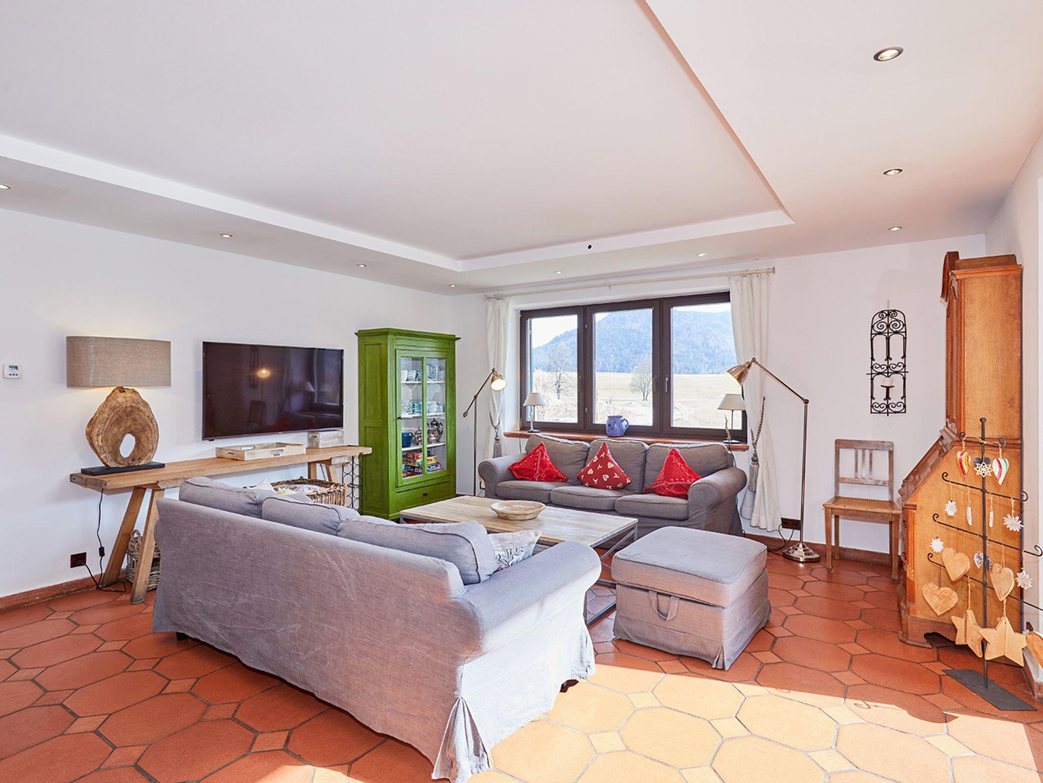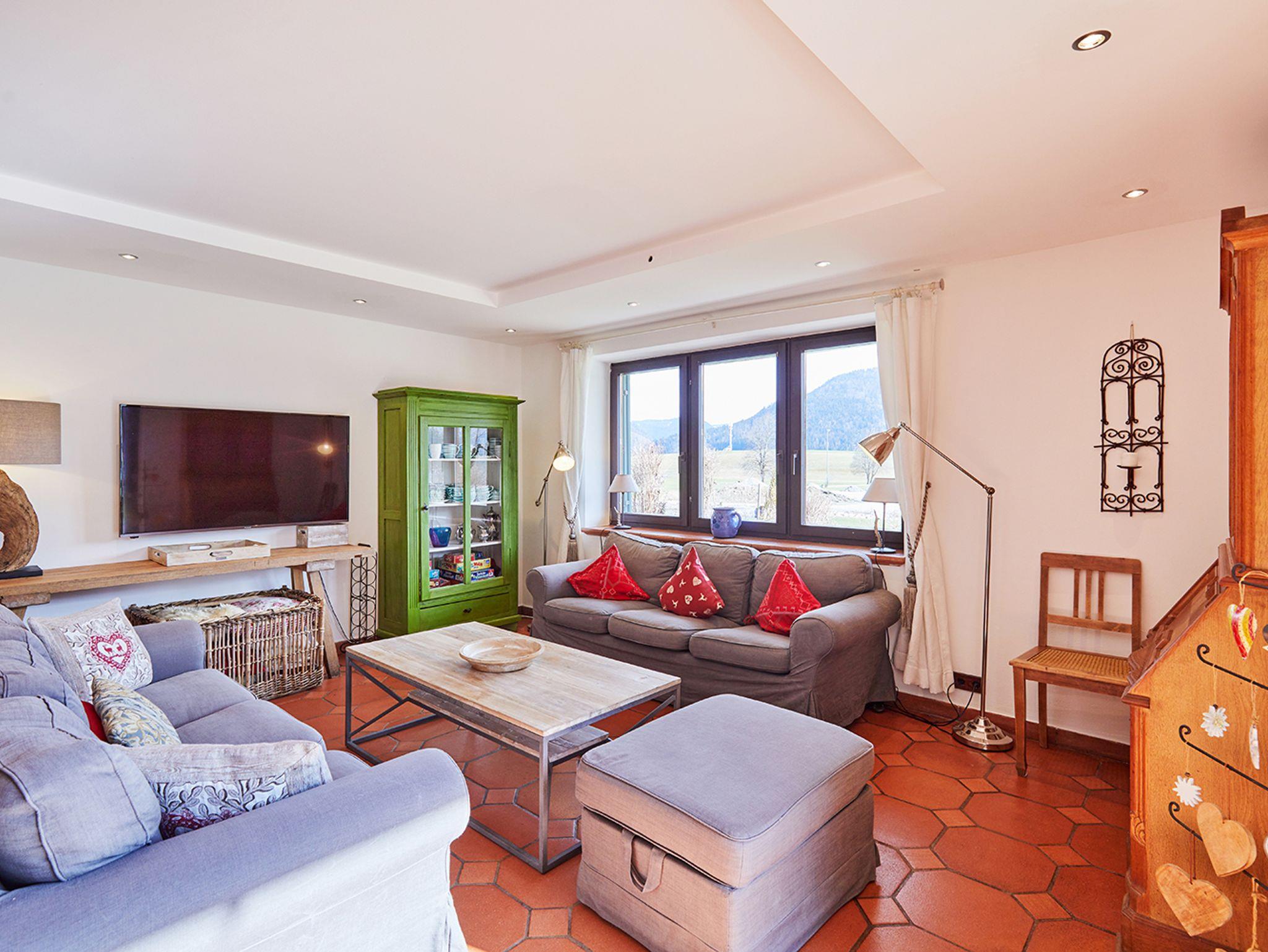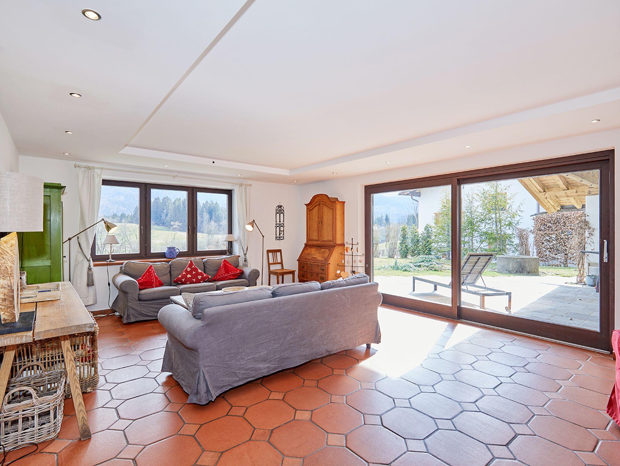 Das mit 4 Sternen klassifizierte, 250qm große „Chalet Chiemgau“ bietet eine Kombination aus Luxus und Nähe zur Natur und befindet sich in sonniger Südhanglage ca. 350m vom Ortskern entfernt. In herrlicher Wohnlage ist es für bis zu neun Personen geeignet und damit ideal für einen Urlaub mit der Familie oder Freunden.Das geräumige Haus verfügt über vier Schlafräume, wovon drei mit bequemen Doppelbetten, und eines mit zwei Einzelbetten ausgestattet ist. Die drei luxuriösen Bäder verfügen über eine Dusche bzw. eine gemütliche Badewanne und werden so zu einem entspannenden Erlebnis. Die Küche ist mit Kühlschrank, Mikrowelle, Vier-Plattenherd, Geschirrspülmaschine, Mikrowelle etc. voll ausgestattet und lässt keine Wünsche offen. Im Wohnraum gibt es mit zwei bequemen Sofas und zwei Couchsesseln mehr als genug Entspannungsmöglichkeiten. Weiters finden Sie im Haus ein geräumiges Esszimmer, sowie einen Hauswirtschaftsraum und es steht Ihnen frei, W-LAN, Kabel-TV, Stereoanlage, Bose-Radio oder die Tischtennisplatte zu verwenden.Die große möblierte Terrasse überzeugt mit einer traumhaften Aussicht und lädt jederzeit zum Verweilen ein. Für Pkws stehen Garagen- und Stellplätze zur Verfügung. In der Garage befindet sich eine Wall-Box und die Lademöglichkeit für E-Bikes. Genießen Sie den Ausblick auf den Wilden Kaiser, die ruhige Lage und die Nähe zur Natur. Auch Wanderer kommen auf ihre Kosten, denn viele der Touren starten quasi vor der Haustüre. Das Zentrum von Reit im Winkl ist ebenfalls in nur 10 Gehminuten erreichbar und lädt zu einem gemütlichen Bummel ein.