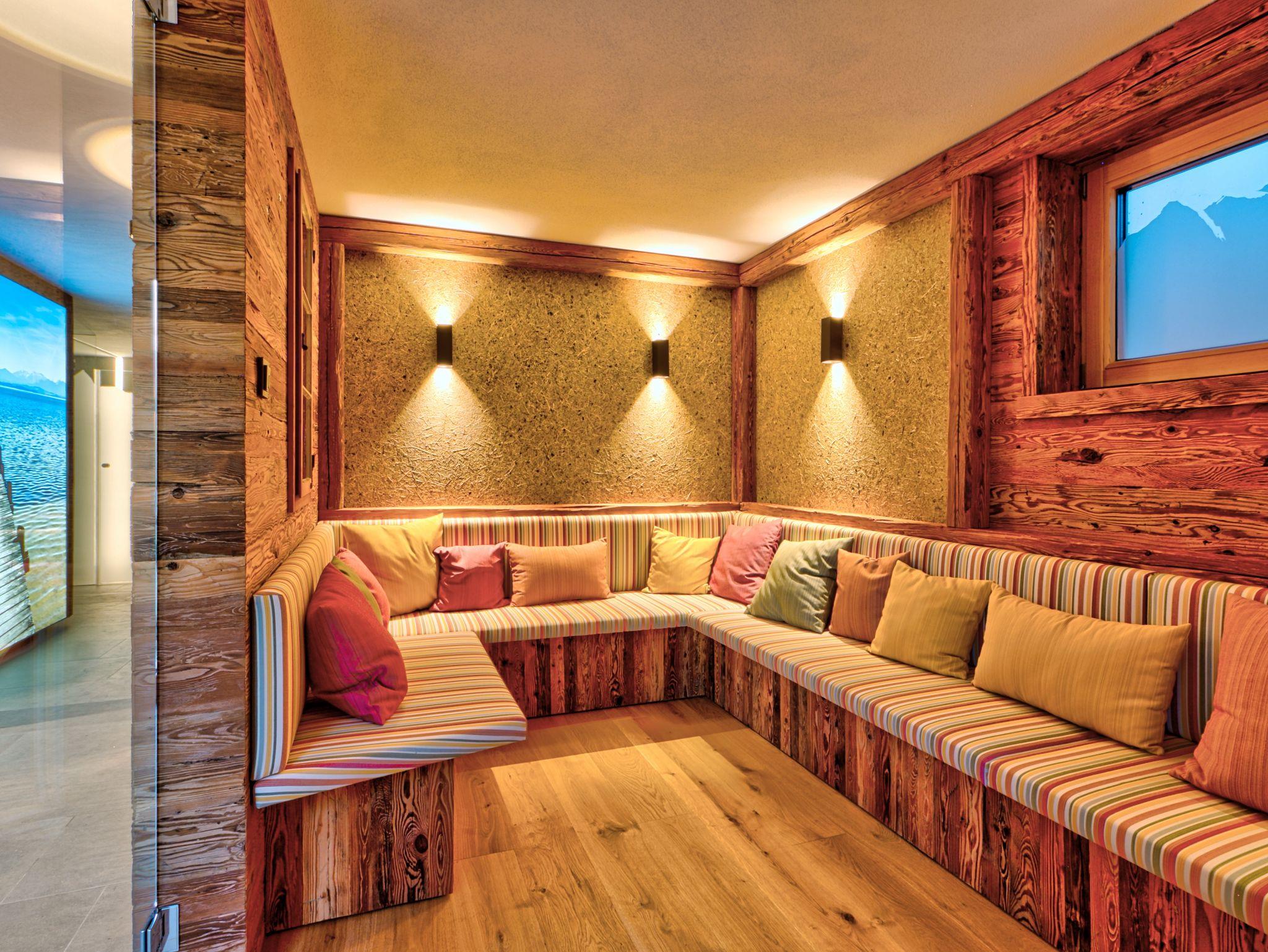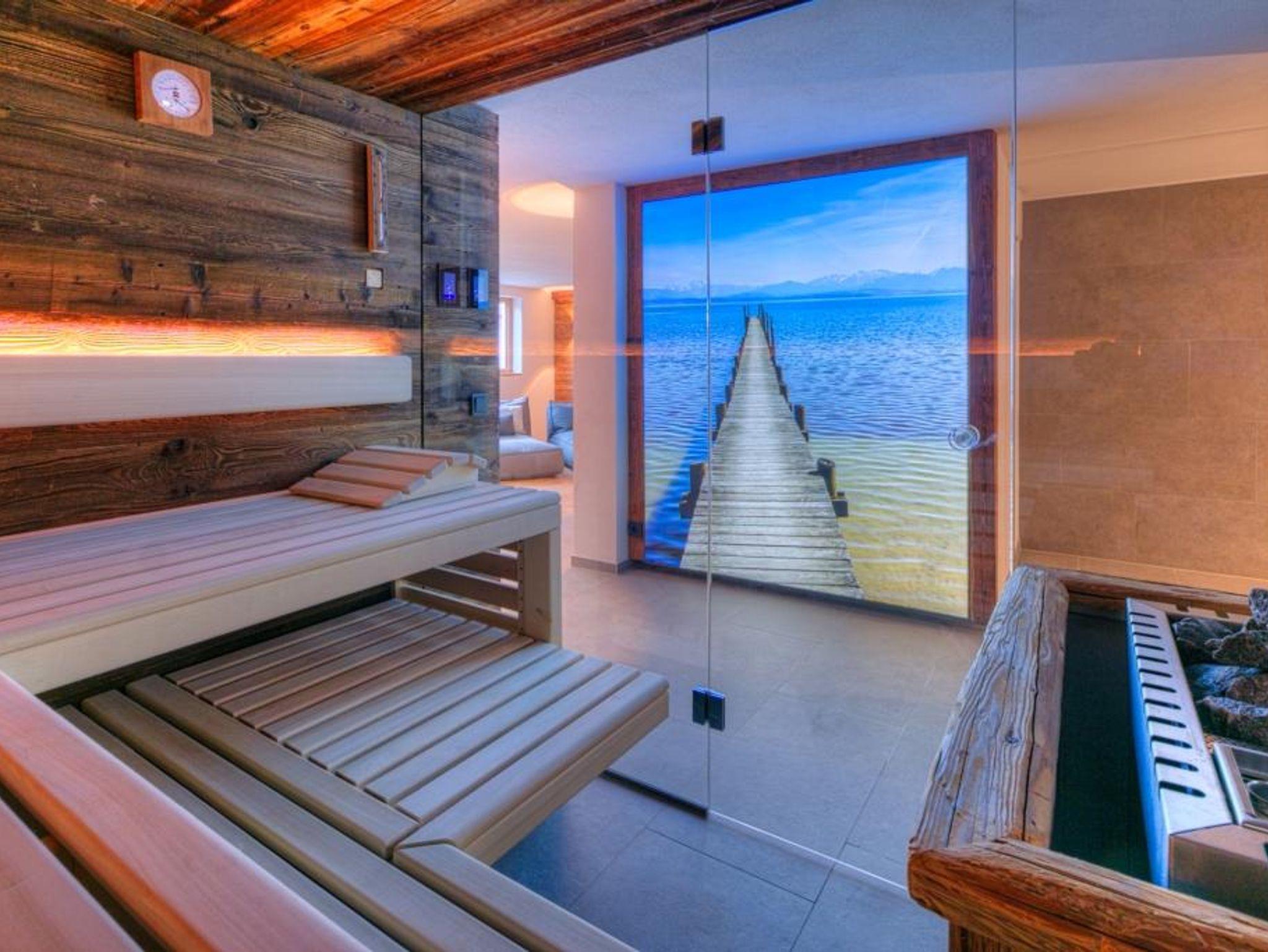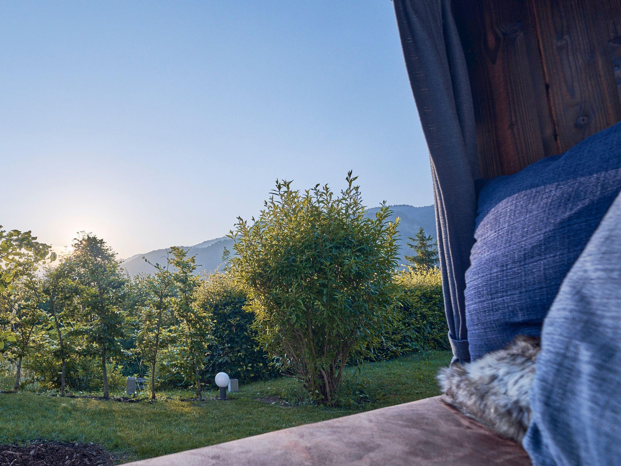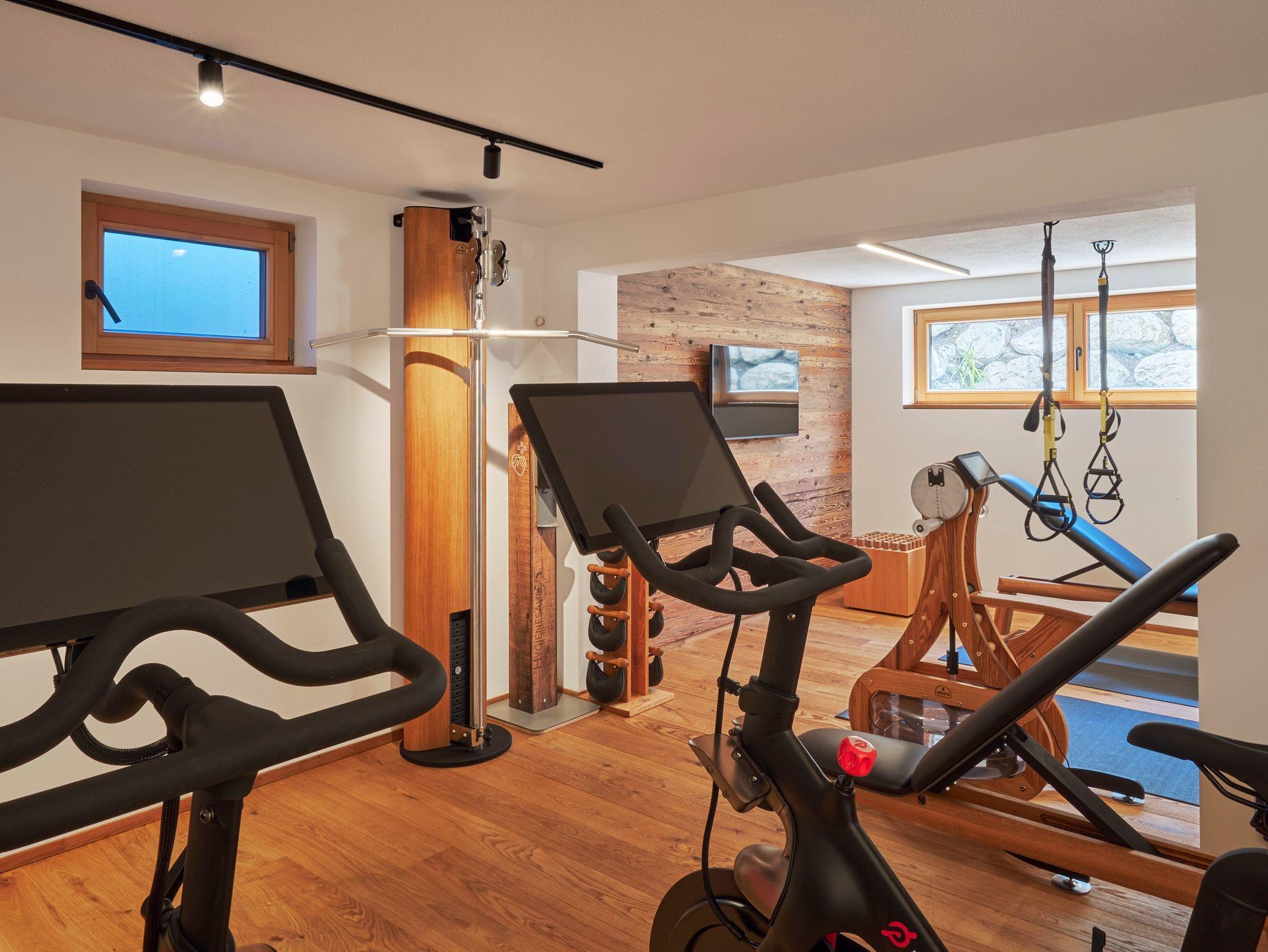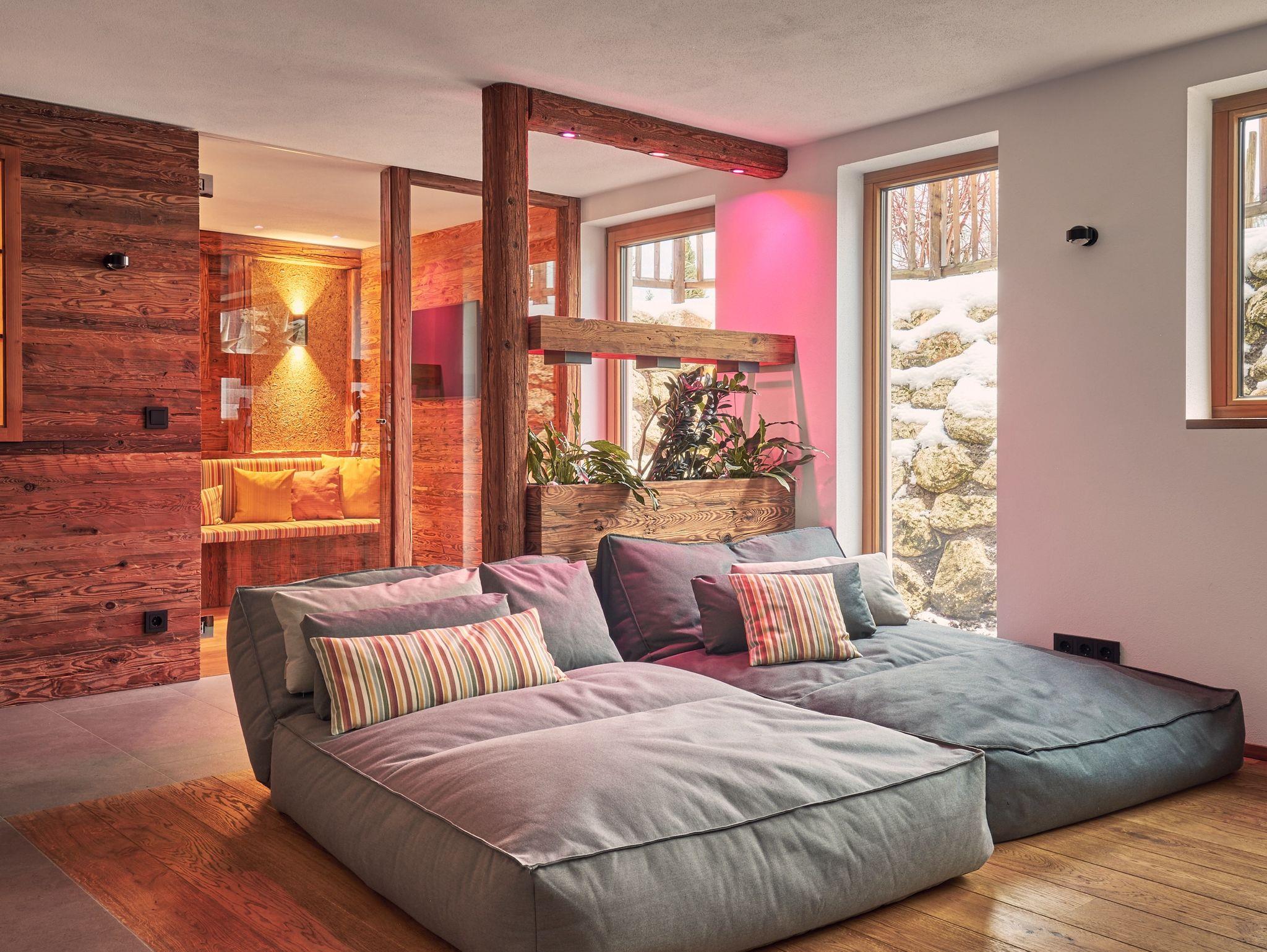 Ein exklusiver Kinosaal, ein modern ausgestatteter Fitness- und Wellnessbereich mit finnischer und Bio-Sauna sowie ein Tageslicht durchfluteter Fitnessraum stehen allen Gästen zur Verfügung und bieten Ihnen zahlreiche Möglichkeiten für Bewegung und Entspannung. Nach einem aktiven Tag können Sie im Wellnessbereich die Seele baumeln lassen und in der Ruheoase neue Energie tanken. Über eine Außentreppe gelangen Sie vom Wellnessbereich in den Garten, wo Sie in zwei alpenländischen Körben die Natur in vollen Zügen genießen können.