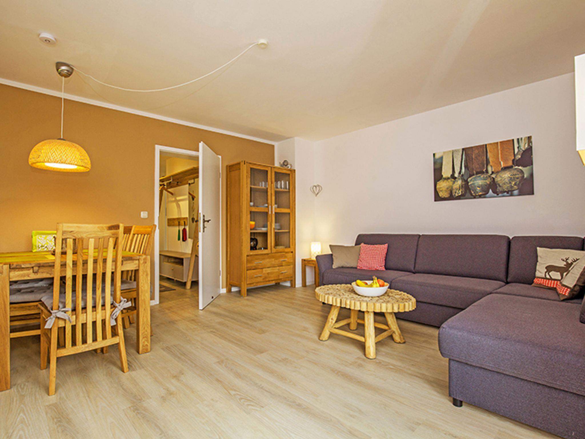 Die Wohnung ‚Schmankerl' wurde 2022 renoviert, dabei wurden auch alle Möbel erneuert. Der moderne, hochwertig eingerichtete Wohnbereich strahlt ein angenehmes Wohngefühl aus und verfügt über einen Essbereich und eine große, komfortable Sofagarnitur. Die neue, vollausgestattete Einbauküche ist unter anderem mit Induktionsherd, Spülmaschine, Mikrowelle, Kaffeemaschine, Toaster, Wasserkocher, ausgestattet und lässt keine Wünsche offen. In einem der Schlafzimmer befindet sich ein bequemes Doppelbett, während das andere mit einem ausziehbaren Doppelbett ausgestattet ist. Bei Bedarf stehen auch ein Kleinkindbett und ein Hochstuhl zur Verfügung. Das helle, große Badezimmer verfügt über WC, Dusche und zwei Waschbecken. Zwei gemütliche Balkone laden bei sonnigem Wetter zum Entspannen ein und bieten eine herrliche Aussicht auf die umliegenden Berge.