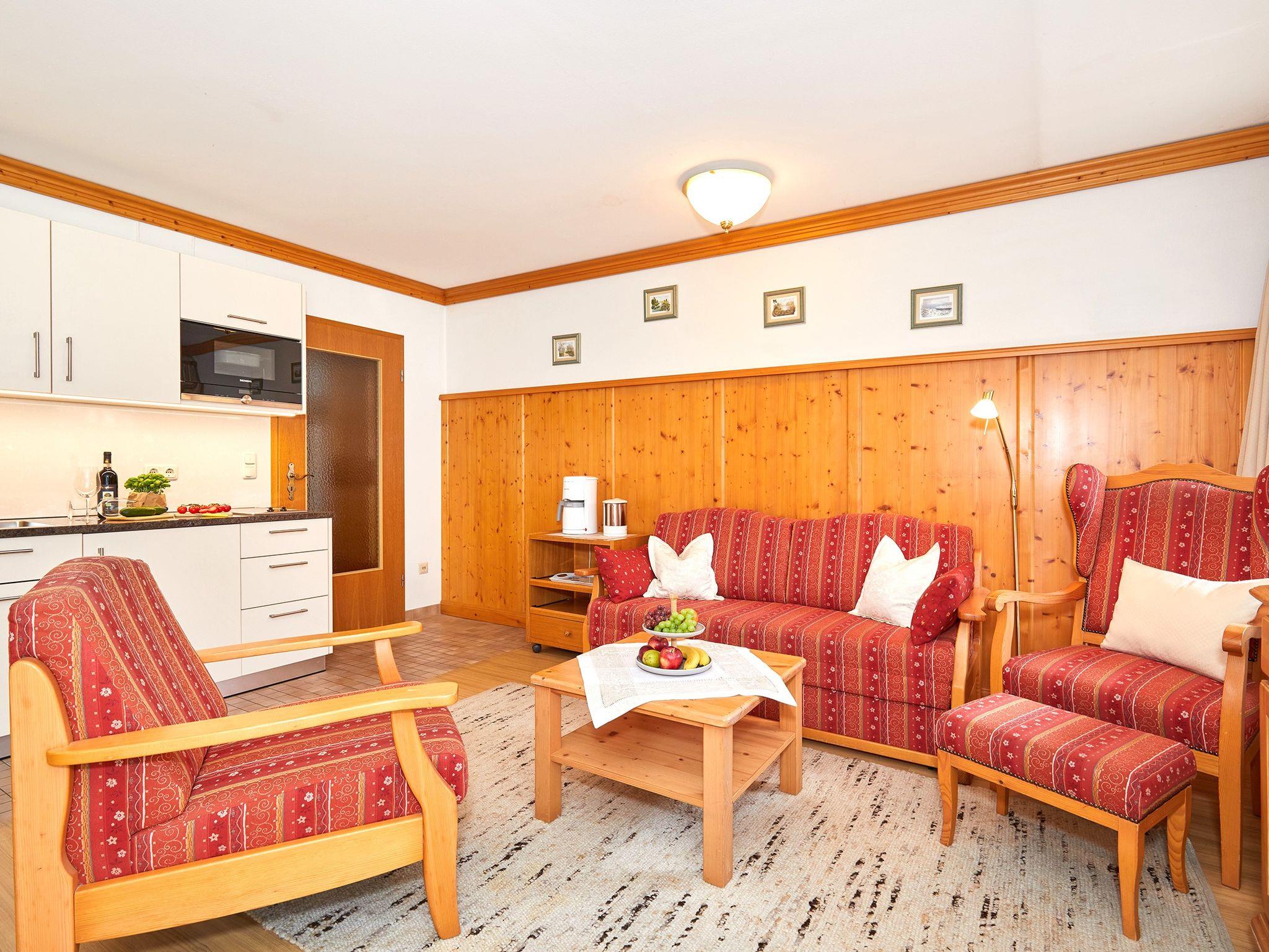 Die 2-Zimmer-Wohnung verfügt über eine Sitzecke, Sofa, Essecke, Kabel-TV, Flachbildschirm und W-LAN. Das separate Schlafzimmer verfügt über ein Doppelbett, und ist absolut ruhig zur Walmbergseite hin ausgerichtet. Bei Belegung mit mehr als zwei Personen dient Ihnen das Sofa im Wohnraum als vollwertiges Doppelbett-Schlafsofa. Das moderne Bad verfügt über Dusche und WC, ein Föhn ist vorhanden. Die Ferienwohnung bietet eine vollständig eingerichtete Küchenzeile, unter anderem mit Kühlschrank inkl. Gefrierfach, Herd, Mikrowelle, Kaffeemaschine, Wasserkocher und Toaster. Von der südwestlich gelegenen Terrasse mit Liegewiese haben Sie einen herrlichen Ausblick auf das umliegende Bergpanorama.