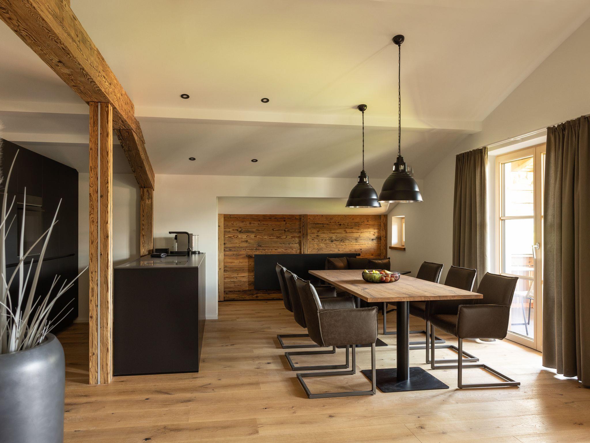 Für alle, die Ruhe mit Stil und Natur mit Komfort verbinden möchten: Sobald Sie Das Denisl betreten, stellt sich ein tiefes Gefühl der Erholung ein. Mitten im Herzen von Reit im Winkl, zentral an der Sonnenloipe, wartet ein neues Apartmenthaus mit 14 stilvollen, hellen Ferienwohnungen voller Flair auf Ihre unvergessliche Zeit im Chiemgau. Viel Altholz, gedeckte Farben, indirekte Beleuchtung, schwarze Armaturen und große Türen zu Balkon oder Terrasse machen Ihre Urlaubstage zu einem echten Design-Erlebnis. Freuen Sie sich auf bestens ausgestattete Küchen, einladende Essbereiche, gemütliche Ledersofas, große Waschtische, kuschelige Boxspringbetten und Regenduschen, die Sie rundum verwöhnen und entspannen lassen. Im Haus zählt der großzügige Aufenthalts- und Eventraum mit 120?m² zu einem beliebten Treffpunkt, um gemütlich zusammenzusitzen, gemeinsam zu feiern oder Tagungen durchzuführen – ausgestattet mit Küche, Theke, Tontechnik, Getränke-/Snackautomat und einer großen Sonnenterrasse mit Blick ins Grüne. Für Aktive Urlauber beginnen direkt vor der Tür idyllische Wanderwege, tolle Biketouren und gepflegte Skiloipen im Winter. Ihre Ausrüstung ist dabei bestens aufgehoben: im großen Skikeller mit Spinden und Skiwerkstatt sowie im Radlhäusl mit Fahrraddusche, Werkstatt und Spinden. Für entspannte Momente sorgt die charmante Sauna im Garten – Ihr Rückzugsort für Körper und Geist. Familien freuen sich über den Spielplatz und das Freibad ganz in der Nähe, aktive Urlauber schätzen schätzen die Haltestelle für den Wanderbus direkt hinter dem Haus. Kostenlose Parkplätze sind in ausreichender Anzahl im Hof vorhanden und wer elektrisch unterwegs ist, findet eine E-Ladestation bei der nahen Tourist-Info.