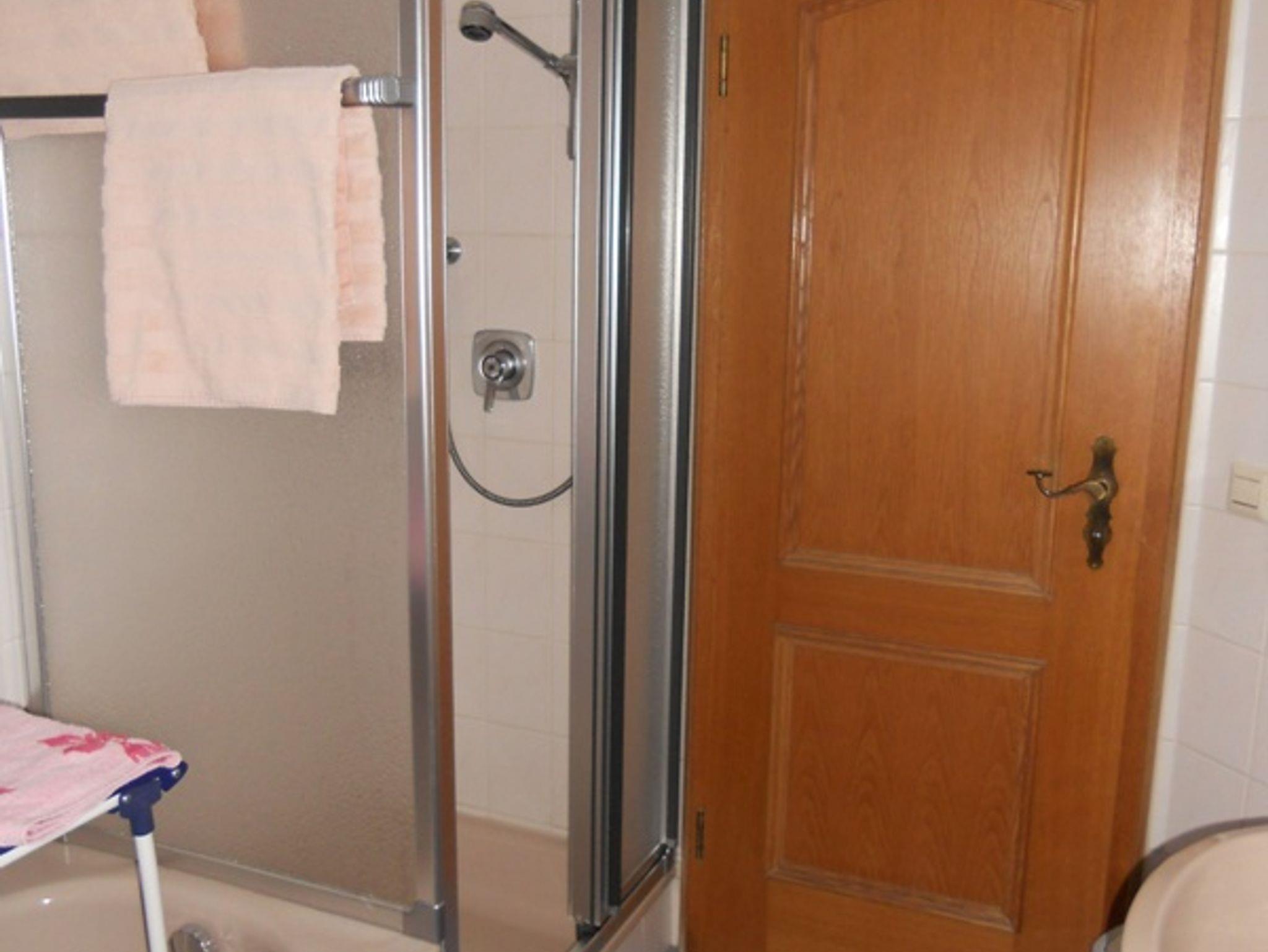 Das Badezimmer besteht aus Badewanne, Dusche und WC.