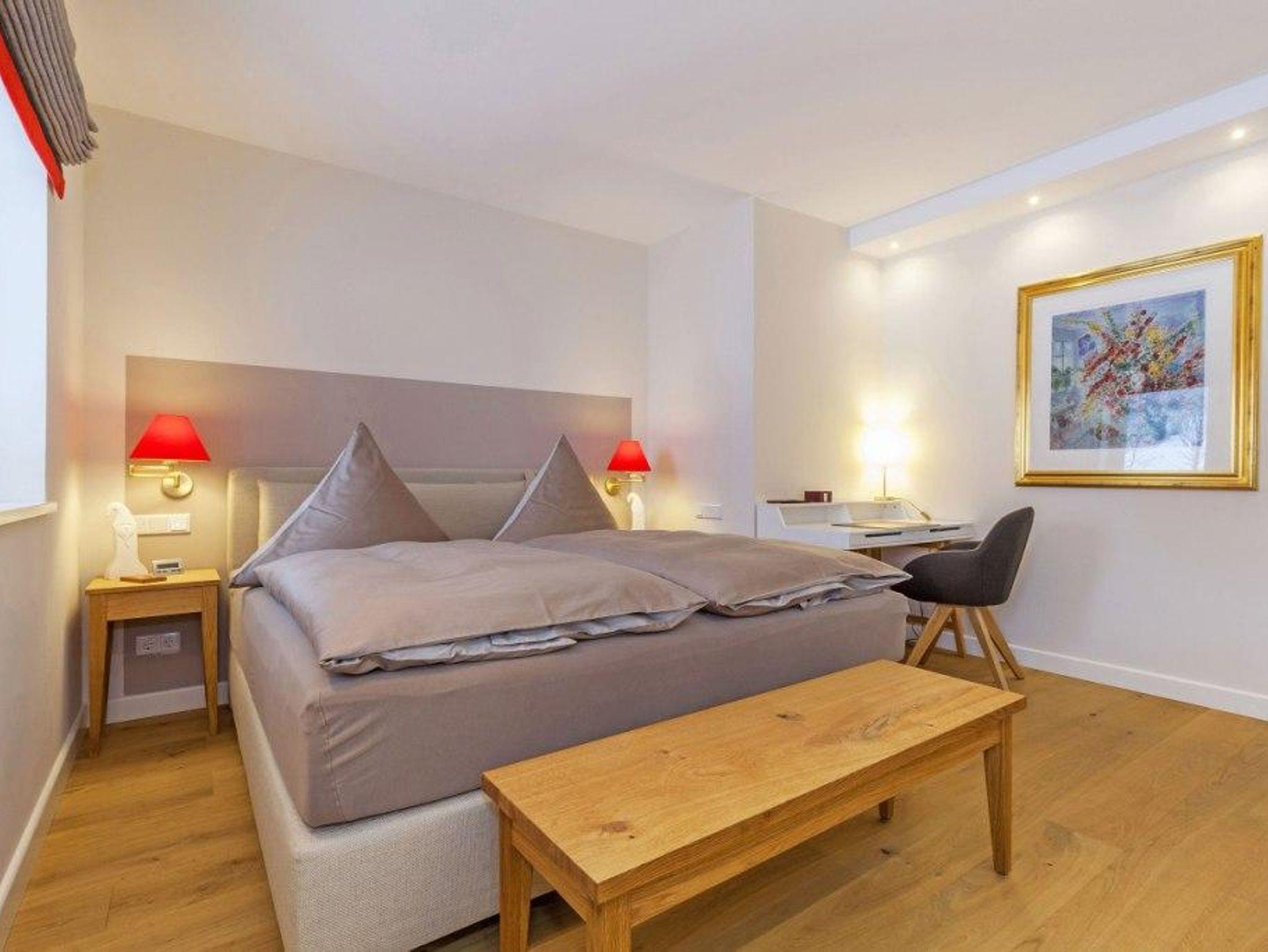 Unsere 80 m² große Ferienwohnung Wilder Kaiser verfügt über ein separates Entrée und ist im modernen Landhausstil eingerichtet. Vom Wohnzimmer mit offener Küche genießen Sie den Blick auf den angrenzenden Golfplatz. Der Südbalkon bietet eine gemütliche Sitzgelegenheit und eine herrliche Aussicht auf ein faszinierendes Bergpanorama. Das separate Schlafzimmer hat ein Boxspringbett mit 1,80 x 2,00 m. Für zwei weitere Personen steht im Wohnzimmer eine Schlafcouch (2,00 x 2,00 m) mit Federkernmatratze bereit. Ein voll ausgestattetes Badezimmer mit Dusche, Badewanne, WC, Handtuchtrockner, Bademäntel erwartet Sie. W-LAN Internetzugang, TV-Flachbildschirm und Stereoanlage mit USB- und I-Phone-Zugang. Komplett ausgestattete Küche, Induktionskochfeld, Mikrowelle, Backofen, große Kühl-Gefrierkombi, Spülmaschine, Nespresso Kaffeemaschine uns sonstige Küchenhilfen.