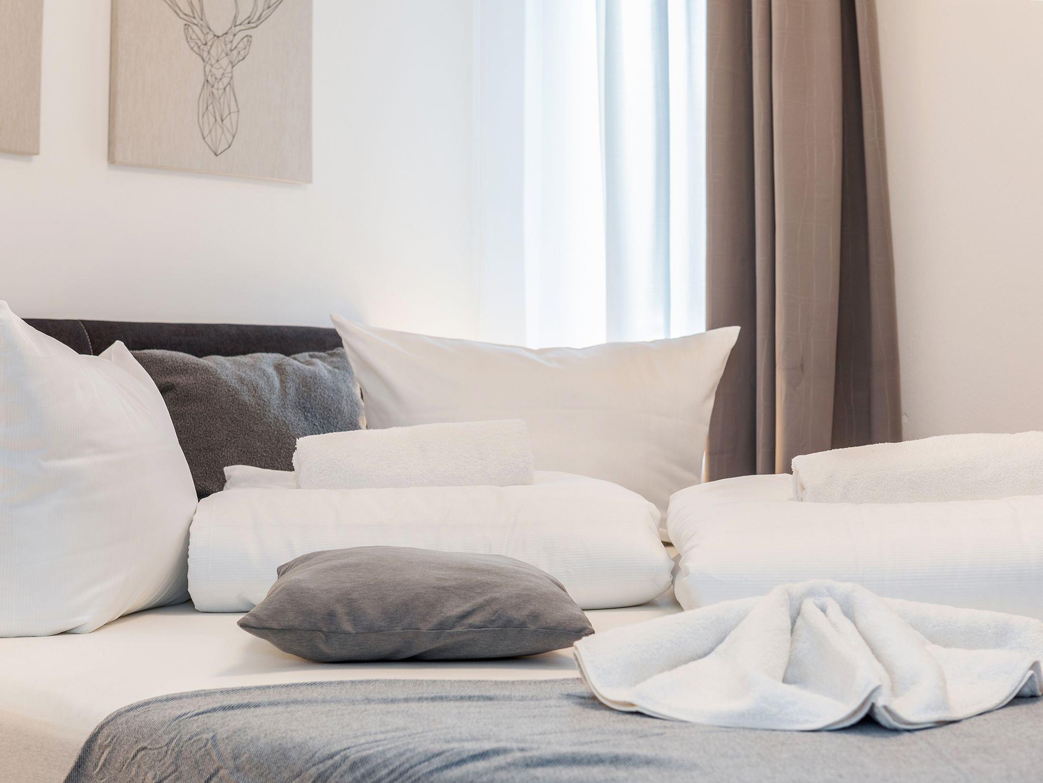 Für einen erholsamen Schlaf stellen wir Ihnen Topper, Kissen und Decken in verschiedenen Größen und Härtegraden zur Verfügung. Auf Anfrage bieten wir auch Kinderbetten, Hochstühle und Babyphone kostenfrei an.