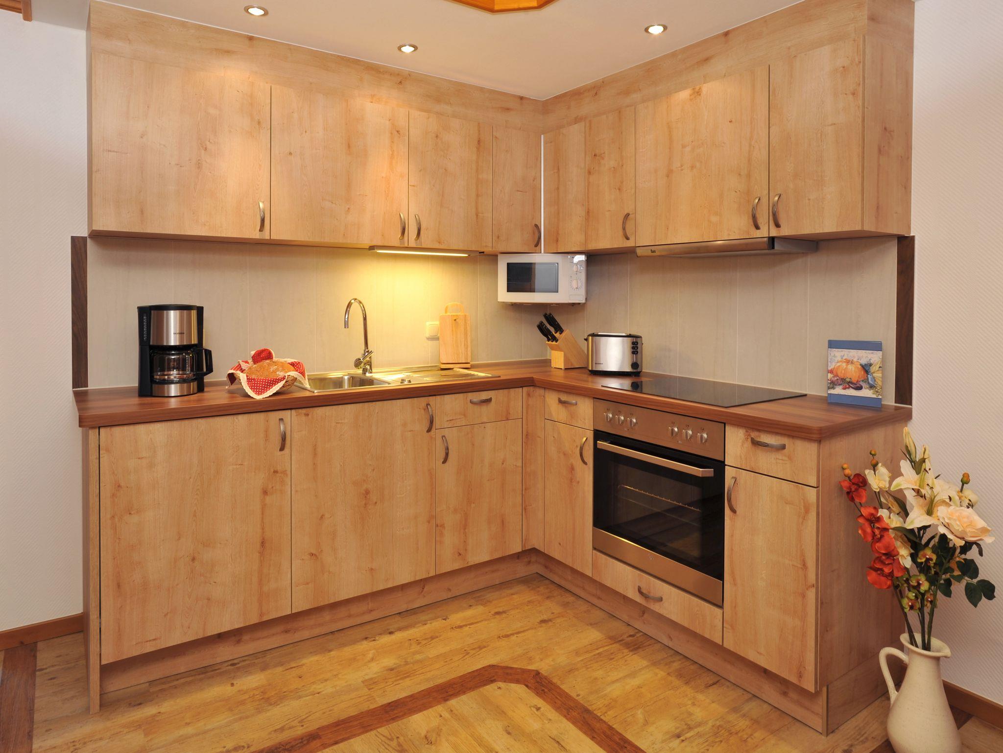 Komfortable Zwei-Raum-Ferienwohnung mit 45m² bietet Platz für 2 bis 3 Personen. Die voll eingerichtete Küche ist ausgestattet mit einem 4-Plattenherd inklusive Backrohr, Mikrowelle, Toaster, Wasserkocher, Kaffeemaschine und Kühlschrank mit Tiefkühlfach. Die Wohnung verfügt über eine Essecke mit gemütlicher Couchgarnitur, Kabel- /Sat- TV und WLAN - Internet Anschluss und ein separates Schlafzimmer mit Doppelbett. Die Couch lässt sich für eine weitere Person (Kind) herrichten. Für den Fernsehabend steht Ihnen ein Flachbildschirm zur Verfügung. Bettwäsche und Handtücher sind ausreichend vorhanden. Das helle Bad ist mit Dusche / WC, Fön und Fenster ausgestattet. Von den zwei Balkonen haben Sie einen herrlichen Ausblick nach Nord-Ost bzw. Süd-West. Auf Wunsch bieten wir Ihnen gerne einen Brötchenservice an.