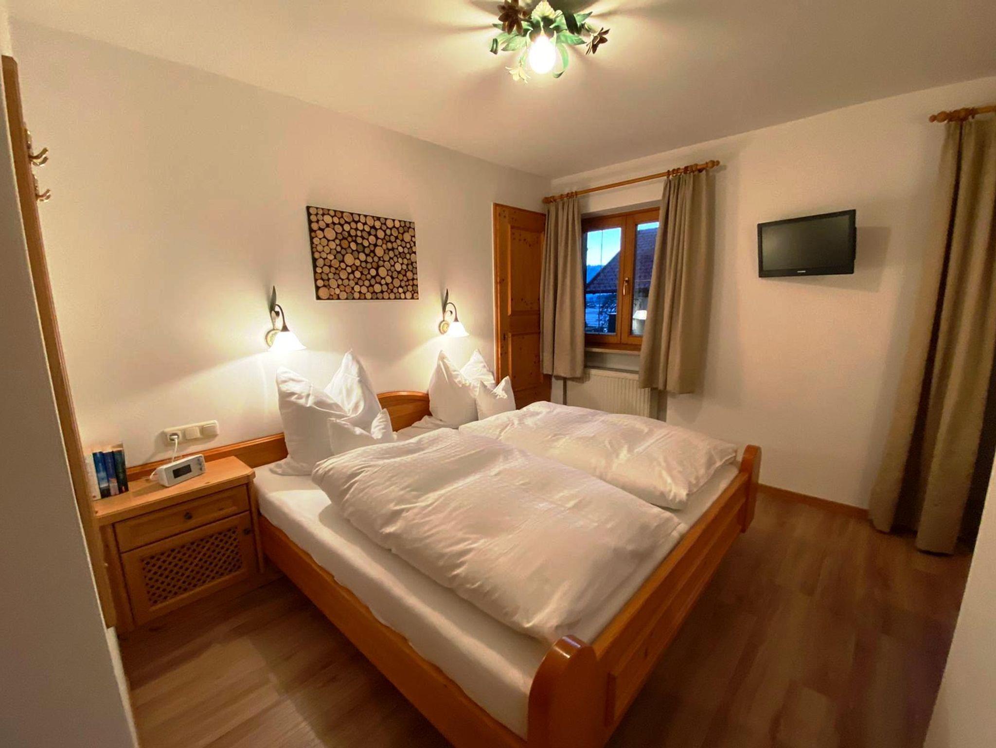 Zur Ferienwohnung bieten wir noch ein zusätzliches Doppelzimmer mit eigener Dusche und WC, ebenfalls mit einem Kabel-Flachbild-TV versehen, sowohl als Doppel- als auch als Einzelbelegung an. Das Zimmer befindet sich außerhalb der Wohnung, beide Eingangstüren liegen jedoch direkt nebeneinander. Dadurch ist ein entspannter Aufenthalt bei uns auch für Familien mit größeren Kindern oder für zwei befreundete Paare möglich. Für ein zweites Auto steht ein weiterer, ebenfalls kostenloser Stellplatz zur Verfügung.