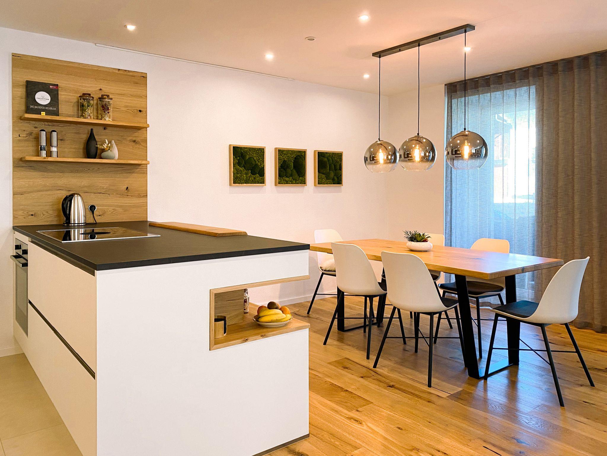 Die Ende 2022 erst fertiggestellte, luxuriöse Ferienwohnung Schneewinkl im kernsanierten ehemaligen Gasthof Blaserwirt ist der perfekte Ausgangspunkt für Urlaub in den Chiemgauer Alpen. Langlaufloipen und Wanderwege sind in unmittelbarer Nähe. Direkt bei der Wohnung hält der Skibus zur Talstation Seegatterl des Skigebiets Winklmoosalm - Steinplatte. Zum Dorfzentrum mit vielen Restaurants und Einkaufsmöglichkeiten sind es ca. 1,3 km, wobei das nächstgelegene Restaurant lediglich 200 Meter entfernt ist. Im Sommer kann man bei schönem Wetter das Frühstück in der herrlichen Morgensonne auf der Terrasse genießen oder ein Buch in der Sonnenliege im Garten lesen. Mit einem kostenlosen Babybett, Kindergeschirr- und Besteck, Krabbeldecke, Spielzeug und Puzzles sowie einem Schlitten ist die Wohnung auch für Familien mit Kleinkindern bestens ausgestattet. Es stehen zwei kostenfreie Parkplätze zur Verfügung. Die Wohnung für bis zu sechs Personen mit drei Schlafzimmern, Küche, Wohnzimmer, zwei Bädern und Garten ist komplett smart ausgestattet. Sie verbindet Altbaucharme mit hochwertiger, moderner Ausstattung.