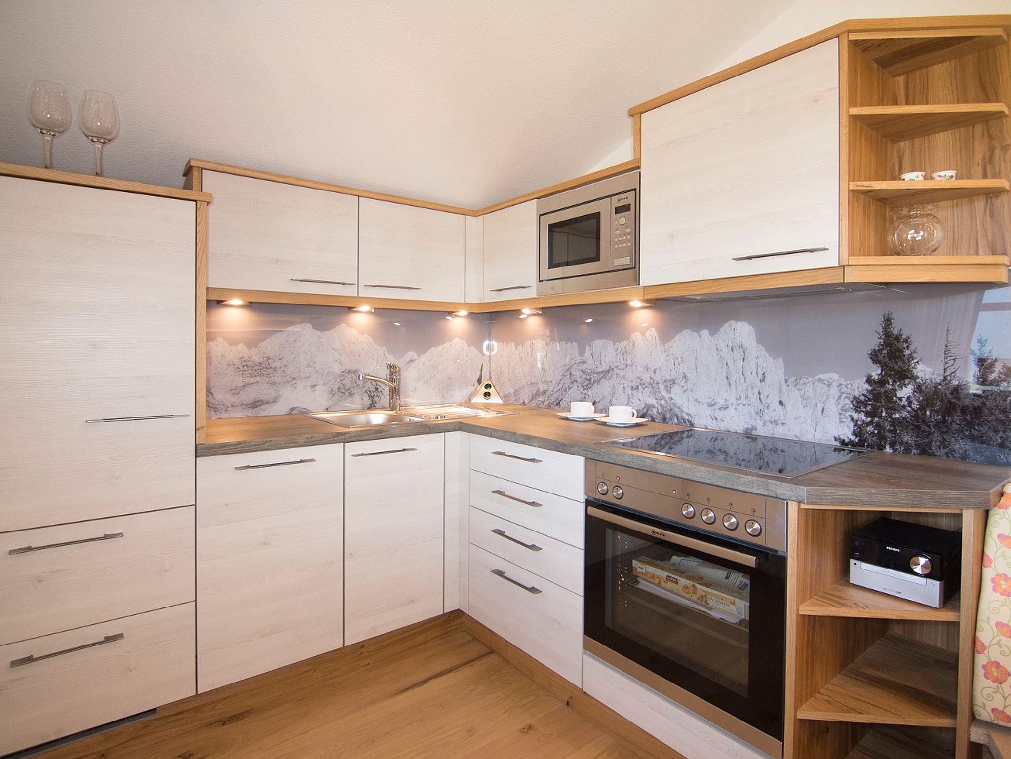 Vom Schreiner maßgefertigte neue stilvolle Küche mit Spülmaschine, 4er Cerankochfeld mit Backofen, Mikrowelle, Kühlschrank mit Gefrierfach, helle Essecke mit Blick in die Natur, Wohnlandschaft mit großflächigem Flachbildschirm mit DVD Player und Kaminfeuer dazu ein Fernsehsessel zum relaxen, WLAN-Internetanschluss, Telefon und Balkonzugang. Das großzügige Schlafzimmer Doppelbett in massivem Stadlholz und begehbarem Schrank mit Zimmersafe, TV, zusätzlichem Balkon mit einmaligem Traumblick in die Berge, kleinem Nebenraum mit Dachschräge, Diele mit Bank und Spiegelgarderobe, Geräumiges modernes, neues Bad/WC mit begehbarer Dusche und Regenbrause und großem Dachfenster. Genießen Sie das herrliche Panorama zum Frühstück in der Morgensonne und am Abend zum Sonnenuntergang auf den beiden großen Balkonen, ausgestattet mit Liegestühlen, Tisch, Sonnenschirm und moderner Relax-Lounge-Liege. Eigener KFZ-Stellplatz an der Tiefgarage. Waschmaschine und Trockner stehen im Keller für Sie bereit. Brötchenservice vom Dorfbäcker.