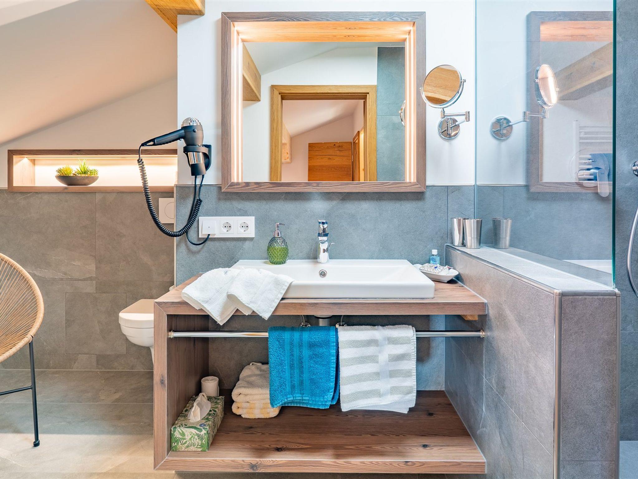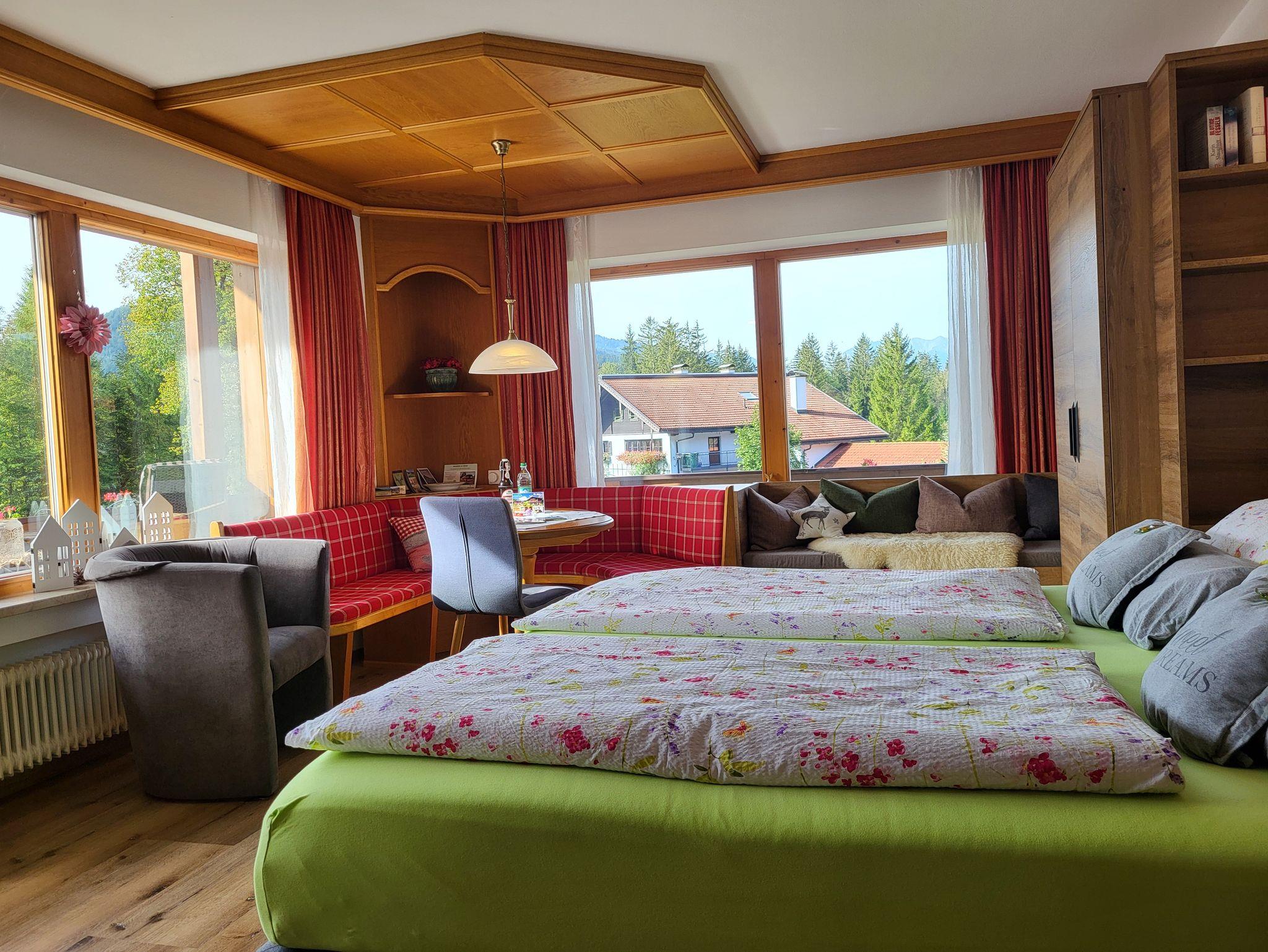 Unsere sieben Ferienwohnungen (für 2-5 Personen), davon Nr. 1,6,7,8 mit einer **** und *****Sternen Klassifizierung und die drei Doppelzimmer sind teilweise alpenländisch, aber auch modern mit viel Liebe zum Detail gestaltet und werden ständig renoviert. Viele Schnitzarbeiten, Möbel und Holzdetails fallen auf - Sie werden vom Hausherrn individuell gefertigt - darum steckt auch viel Herzblut in der Einrichtung.