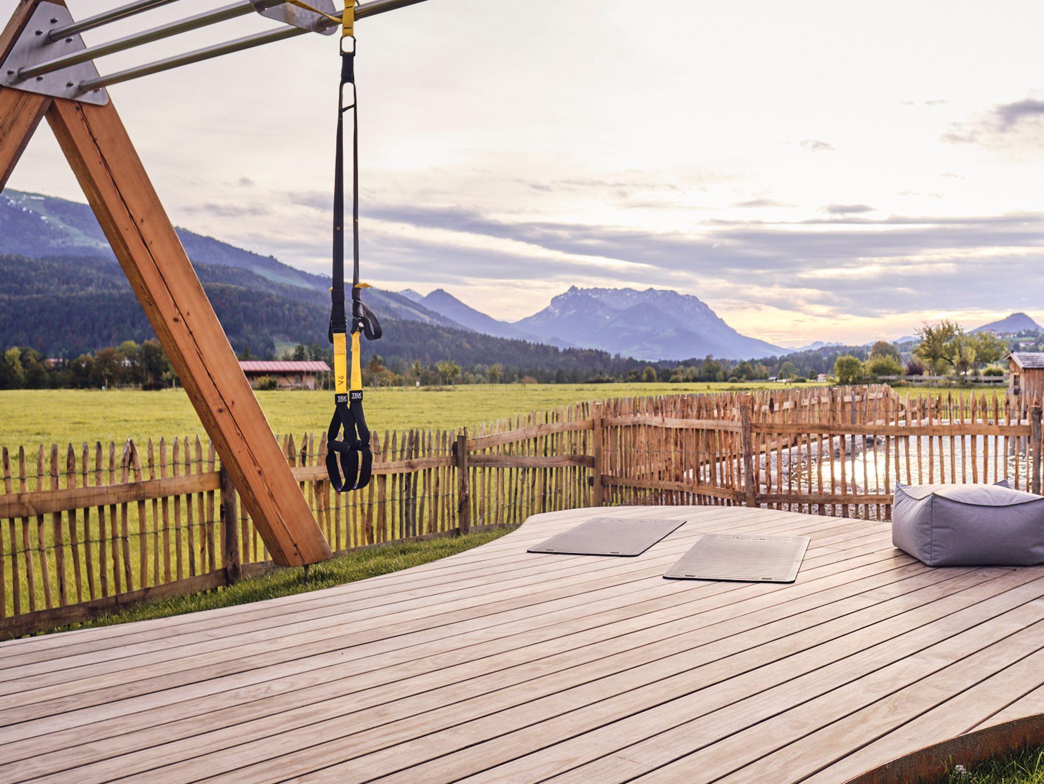 Das Chalet für Aktive im Chiemgau. Faszinierendes Alpstyle-Design, traumhafter Blick auf die Bergwelt – Sport & Fun für den Körper, Erholung & Inspiration für Geist und Seele. Das activechalets six.nine.eight liegt auf 698m Höhe am Eingang zu Reit im Winkl vor dem Kaisergebirge, das auf neue Art und Weise die Freiheit von Apartments mit der Möglichkeit der Aktivität und Design verbindet. Vom Chalet für zwei auf 40m2 bis zum großzügigen Chalet für bis zu 8 Person im Dachgeschoß mit 150m2 mit höchstem Komfort ist für jeden Geschmack was dabei. Im modern eingerichteten Fitnessraum ist auf 50 qm für jeden Aktiven was dabei. Danach entspannen in der Innen- oder Außensaune im 400qm alpspa Wellnesbereich mit Ruheräumen und Naturpool (> 16 Jahre) oder im alpspa family mit den kids und wer mag eine Runde digitale Brettspiele am Fun4Four display. Für die kids steht draußen ein spannendenr Spielplatz bereit. lFür Langeweile bleibt keine Zeit.