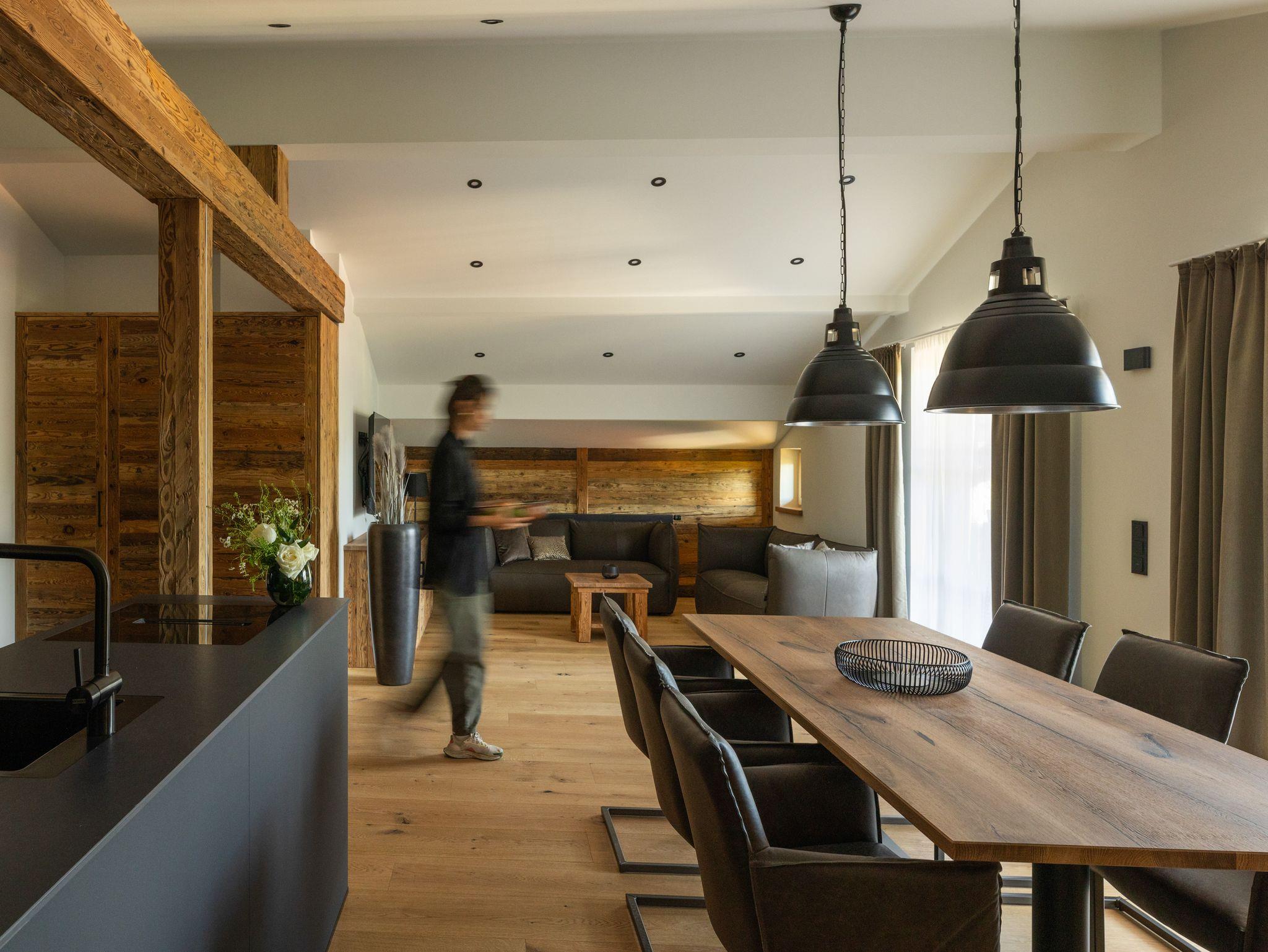 Für alle, die Ruhe mit Stil und Natur mit Komfort verbinden möchten: Sobald Sie Das Denisl betreten, stellt sich ein tiefes Gefühl der Erholung ein. Mitten im Herzen von Reit im Winkl, zentral an der Sonnenloipe, wartet ein neues Apartmenthaus mit 14 stilvollen, hellen Ferienwohnungen voller Flair auf Ihre unvergessliche Zeit im Chiemgau. Viel Altholz, gedeckte Farben, indirekte Beleuchtung, schwarze Armaturen und große Türen zu Balkon oder Terrasse machen Ihre Urlaubstage zu einem echten Design-Erlebnis. Freuen Sie sich auf bestens ausgestattete Küchen, einladende Essbereiche, gemütliche Ledersofas, große Waschtische, kuschelige Boxspringbetten und Regenduschen, die Sie rundum verwöhnen und entspannen lassen. Im Haus zählt der großzügige Aufenthalts- und Eventraum mit 120?m² zu einem beliebten Treffpunkt, um gemütlich zusammenzusitzen, gemeinsam zu feiern oder Tagungen durchzuführen – ausgestattet mit Küche, Theke, Tontechnik, Getränke-/Snackautomat und einer großen Sonnenterrasse mit Blick ins Grüne. Für Aktive Urlauber beginnen direkt vor der Tür idyllische Wanderwege, tolle Biketouren und gepflegte Skiloipen im Winter. Ihre Ausrüstung ist dabei bestens aufgehoben: im großen Skikeller mit Spinden und Skiwerkstatt sowie im Radlhäusl mit Fahrraddusche, Werkstatt und Spinden. Für entspannte Momente sorgt die charmante Sauna im Garten – Ihr Rückzugsort für Körper und Geist. Familien freuen sich über den Spielplatz und das Freibad ganz in der Nähe, aktive Urlauber schätzen schätzen die Haltestelle für den Wanderbus direkt hinter dem Haus. Kostenlose Parkplätze sind in ausreichender Anzahl im Hof vorhanden und wer elektrisch unterwegs ist, findet eine E-Ladestation bei der nahen Tourist-Info.