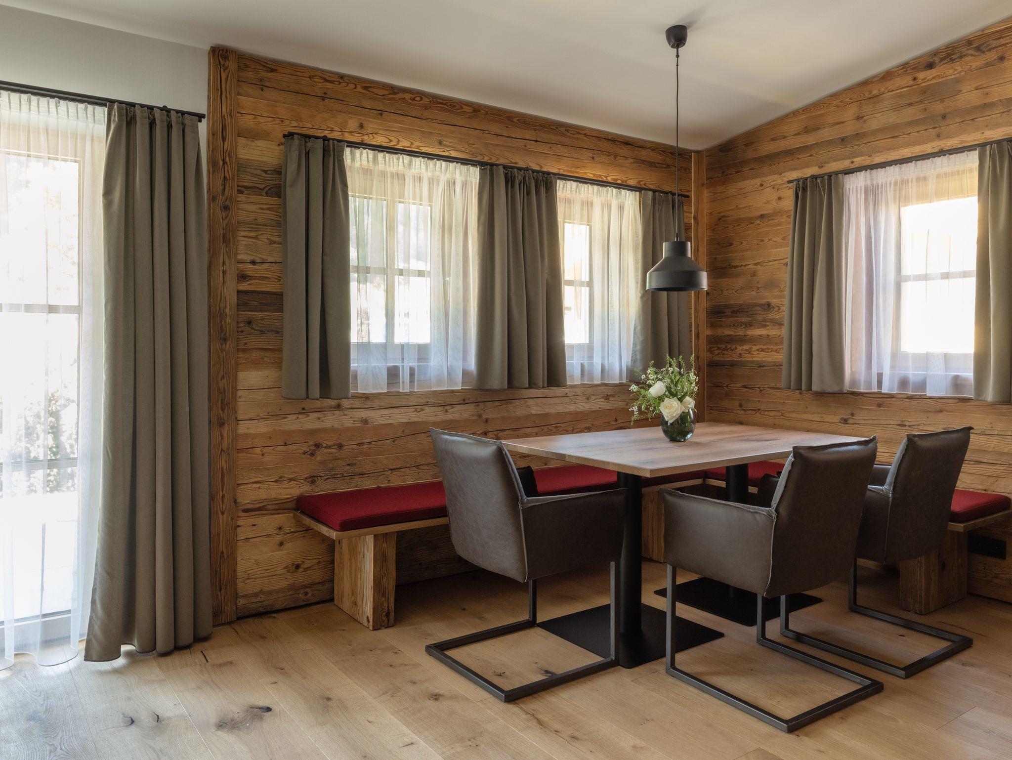 Für alle, die Ruhe mit Stil und Natur mit Komfort verbinden möchten: Sobald Sie Das Denisl betreten, stellt sich ein tiefes Gefühl der Erholung ein. Mitten im Herzen von Reit im Winkl, zentral an der Sonnenloipe, wartet ein neues Apartmenthaus mit 14 stilvollen, hellen Ferienwohnungen voller Flair auf Ihre unvergessliche Zeit im Chiemgau. Viel Altholz, gedeckte Farben, indirekte Beleuchtung, schwarze Armaturen und große Türen zu Balkon oder Terrasse machen Ihre Urlaubstage zu einem echten Design-Erlebnis. Freuen Sie sich auf bestens ausgestattete Küchen, einladende Essbereiche, gemütliche Ledersofas, große Waschtische, kuschelige Boxspringbetten und Regenduschen, die Sie rundum verwöhnen und entspannen lassen. Im Haus zählt der großzügige Aufenthalts- und Eventraum mit 120?m² zu einem beliebten Treffpunkt, um gemütlich zusammenzusitzen, gemeinsam zu feiern oder Tagungen durchzuführen – ausgestattet mit Küche, Theke, Tontechnik, Getränke-/Snackautomat und einer großen Sonnenterrasse mit Blick ins Grüne. Für Aktive Urlauber beginnen direkt vor der Tür idyllische Wanderwege, tolle Biketouren und gepflegte Skiloipen im Winter. Ihre Ausrüstung ist dabei bestens aufgehoben: im großen Skikeller mit Spinden und Skiwerkstatt sowie im Radlhäusl mit Fahrraddusche, Werkstatt und Spinden. Für entspannte Momente sorgt die charmante Sauna im Garten – Ihr Rückzugsort für Körper und Geist. Familien freuen sich über den Spielplatz und das Freibad ganz in der Nähe, aktive Urlauber schätzen schätzen die Haltestelle für den Wanderbus direkt hinter dem Haus. Kostenlose Parkplätze sind in ausreichender Anzahl im Hof vorhanden und wer elektrisch unterwegs ist, findet eine E-Ladestation bei der nahen Tourist-Info.