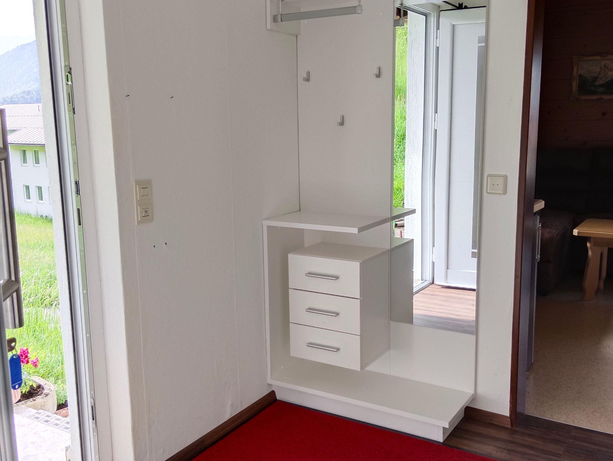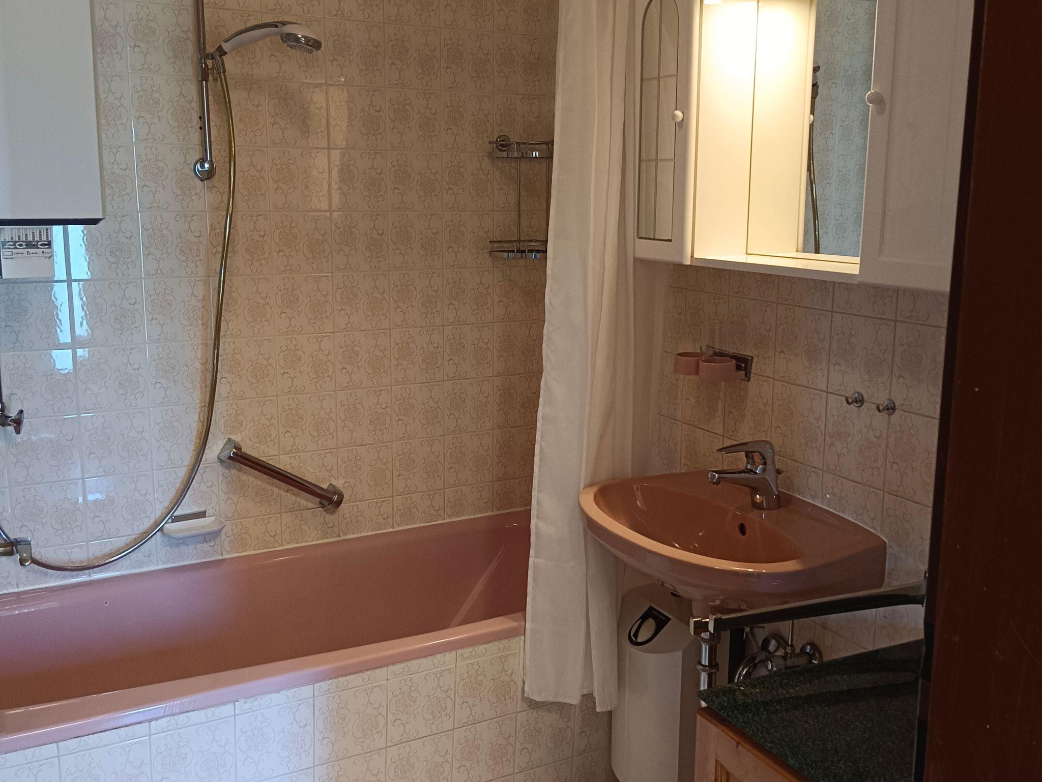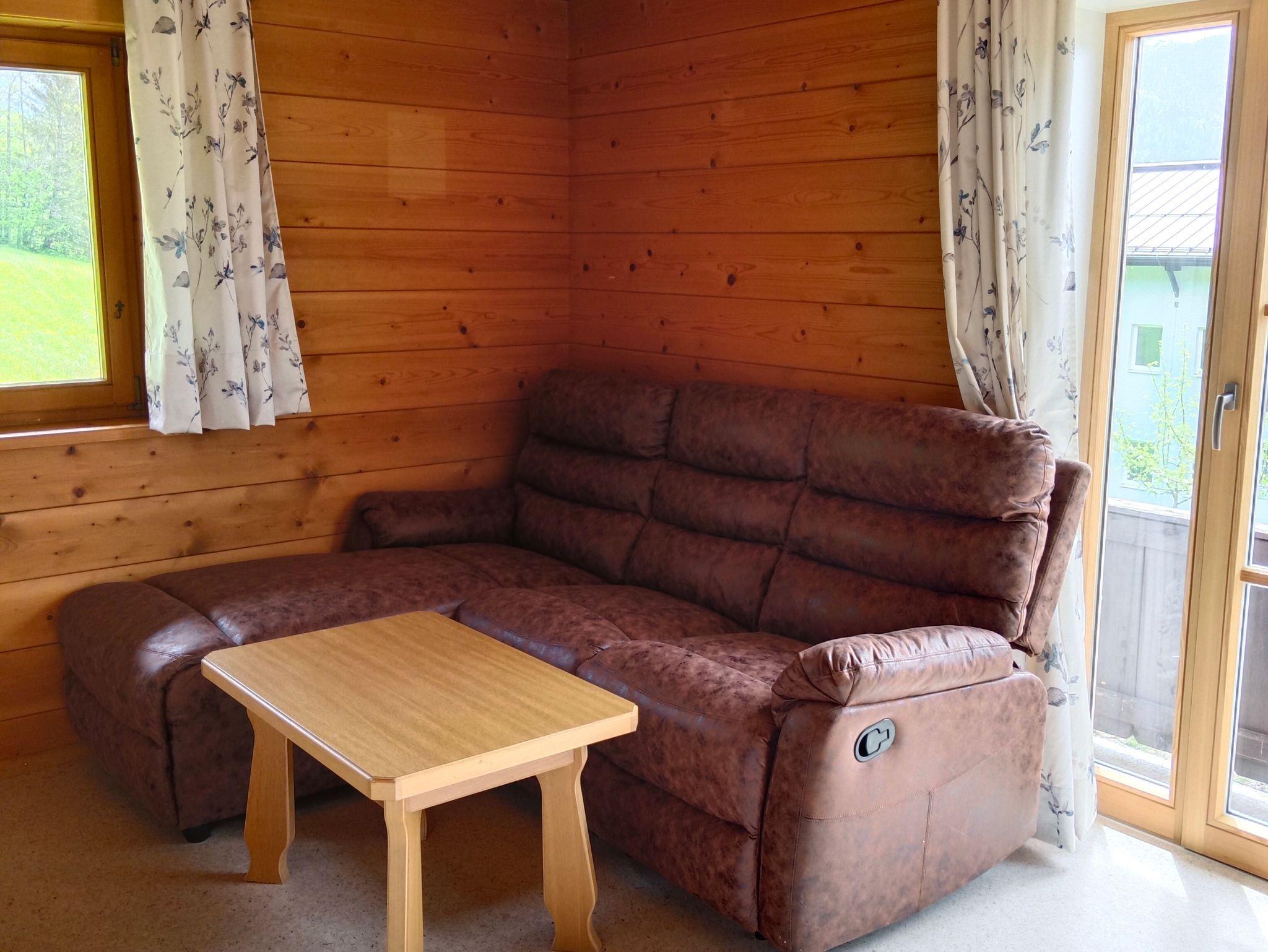 Der Balkon ist nach Süden ausgerichtet, die Sitzgarnitur befindet sich auf der Sonnenaufgangsseite. Für zwei Liegestühle finden Sie Platz auf der angrenzenden Wiese.