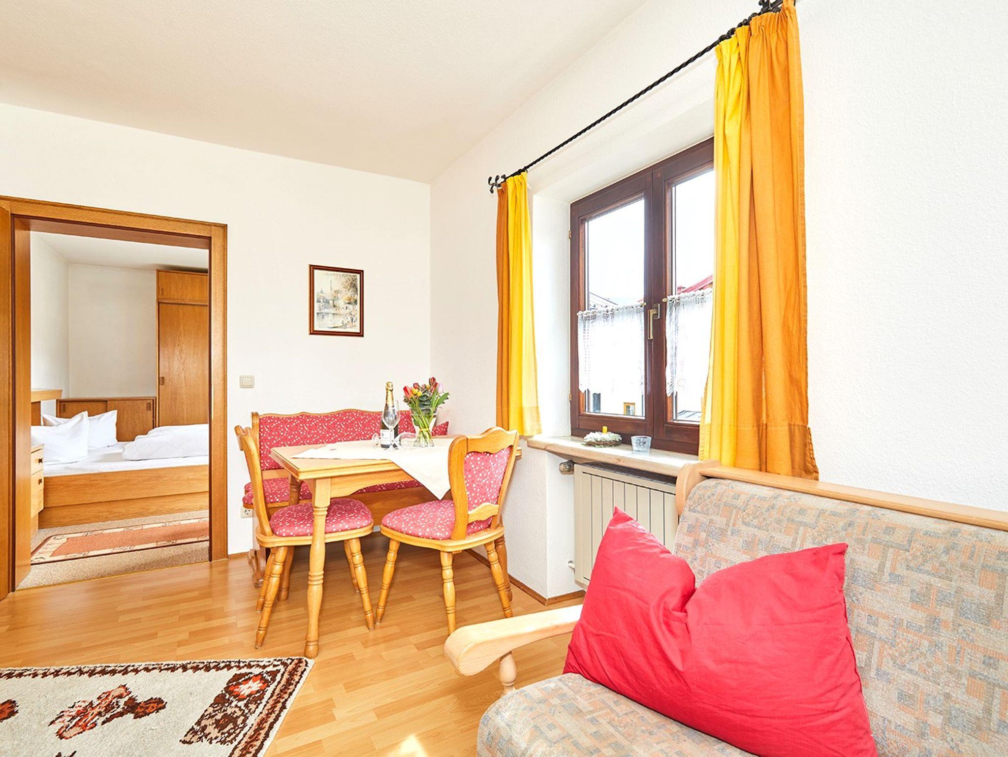 Ferienwohnung 'Lichtblick' – Ihr Zuhause in Rei im Winkl. Willkommen in der hellen und einladenden Ferienwohnung Lichtblick, die sich im ersten Obergeschoss befindet und ideal für Ihren nächsten Urlaub ist! Diese charmante Wohnung bietet ein gemütliches Wohnzimmer und ein komfortables Schlafzimmer mit einem Doppelbett, perfekt für Paare oder kleine Familien. Genießen Sie den großen Balkon, der sowohl vom Wohnzimmer als auch vom Schlafzimmer zugänglich ist. Hier können Sie den wunderschönen Blick auf das Kaisergebirge genießen und entspannte Stunden im Freien verbringen. Die Lage ist unschlagbar: Mitten im Ortszentrum von Reit im Winkl, aber dennoch in einer ruhigen Seitenstraße. Entdecken Sie den malerischen Ortskern mit zahlreichen Einkaufsmöglichkeiten, gemütlichen Restaurants, Cafés, Bars und einem Supermarkt. Auch eine Apotheke, Ärzte und die Skibushaltestelle sind in unmittelbarer Nähe. Die Tourist-Information ist ebenfalls fußläufig erreichbar. Die Wohnung ist mit einem großen Bad ausgestattet, das sowohl eine Badewanne als auch eine Dusche bietet. In der praktischen Kochnische finden Sie einen Kühlschrank, einen 2-Plattenherd und einen Geschirrspüler, kaffeemaschine, Wasserkocher, etc. Das Wohnzimmer lädt mit einer bequemen Couch und einem Esstisch zum Verweilen ein. Die WOhnung sit allergikerfreundlich, Haustiere sind hier nicht erwünscht.