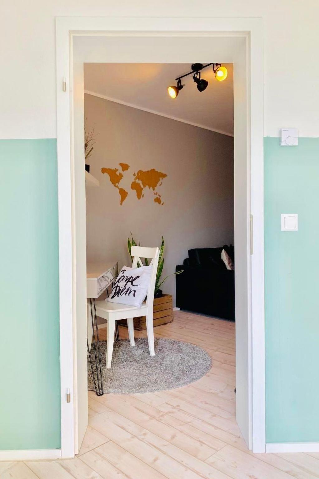 Inside, you will find a lovingly furnished living area that leaves nothing to be desired. The spacious living room has a comfortable sofa set, a practical writing corner and a 42-inch flat-screen TV equipped with Astra and Amazon Fire Stick, ideal for relaxing evenings. The high-quality sofa bed with a 22 cm thick hard foam mattress promises restful sleep for up to two guests. In the bedroom you will find an inviting king-size box-spring bed, suitable for two people, as well as enough space for an additional cot. A wardrobe and three chest cupboards offer plenty of storage space.