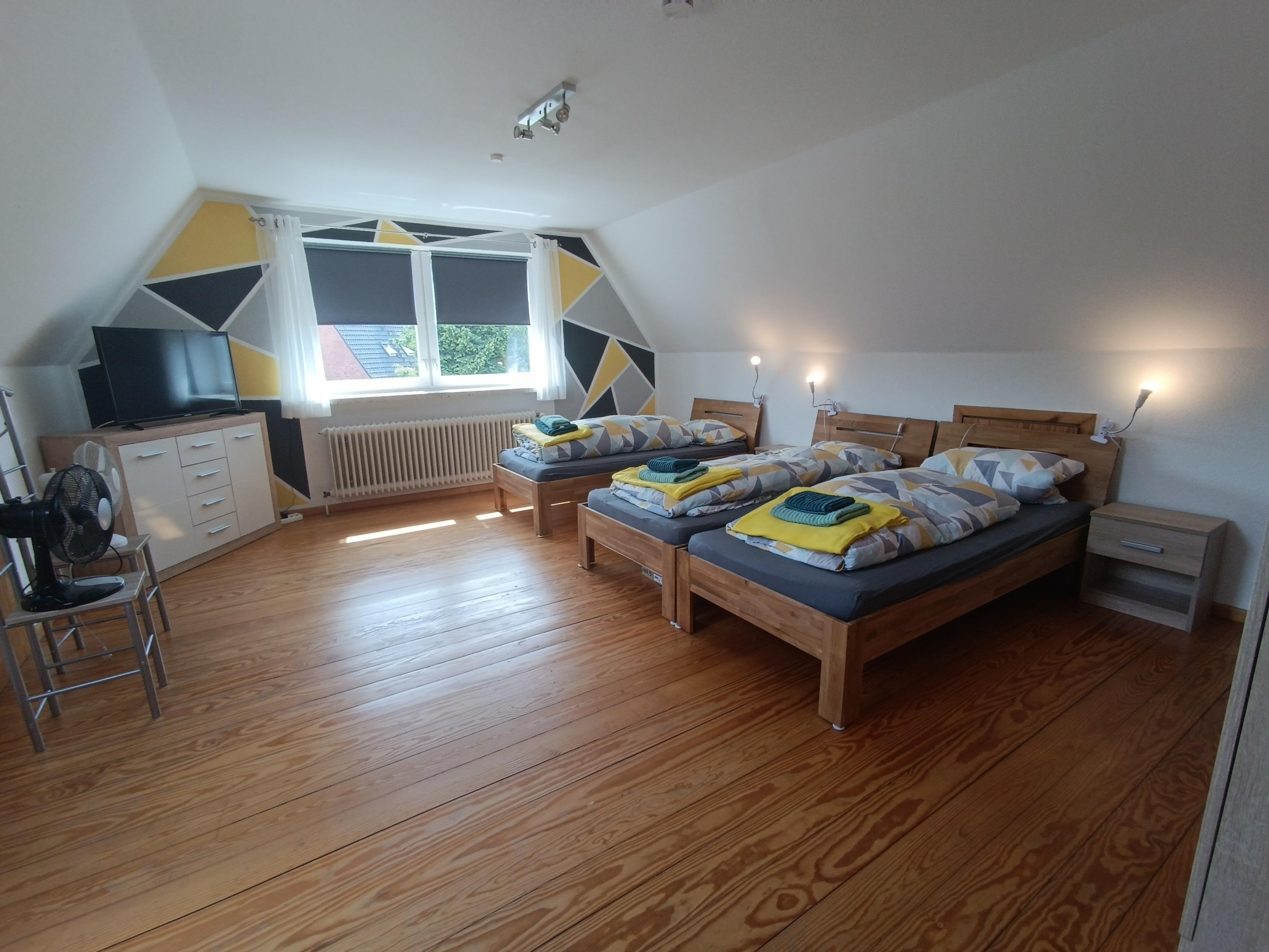 Das Ost- und Nordseezimmer bieten je ein Doppelbett (1,80 x 2m) oder zwei Einzelbetten. Das Südseezimmer verfügt über drei Schlafplätze, wahlweise drei Einzelbetten oder ein Doppel- und ein Einzelbett. Das Erdgeschoss ist barrierearm gestaltet, ebenso das Duschbad dort. Im Obergeschoss finden Sie das Nord- und Südseezimmer sowie ein Wannenduschbad.