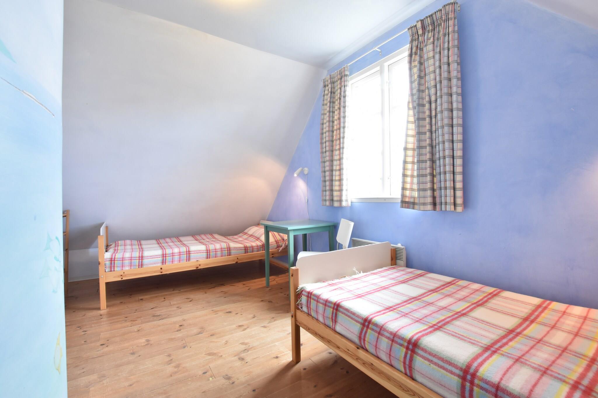 Stueetage: (åbent køkken(elkedel, brødrister, komfur, emhætte, ovn, opvaskemaskine , køle-fryseskab), stue / spisestue(dobbeltsovesofa, Fjernsyn, spisebord, pejs, sofahjørne, radio), badeværelse(bruser, håndvask, toilet)) Loft: (soveværelse(king size-seng), soveværelse(enkeltseng, enkeltseng)) havedøre, varme(elektrisk), terrasse(overdækket), have(indhegnet), havemøbler, solstole, grill, parkering, Haveskur, Gyngestativ