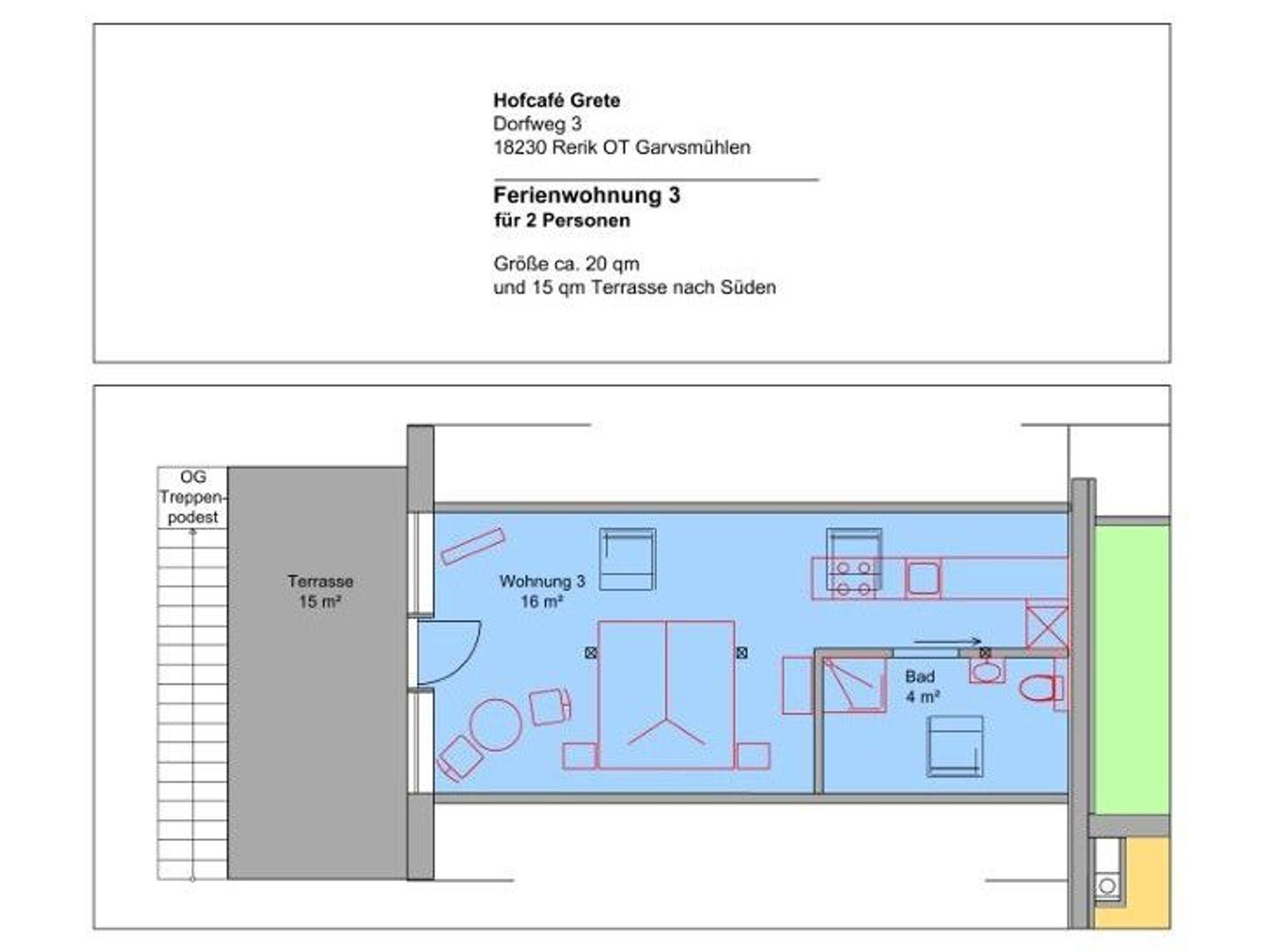 H3 Wohnen am Hofcafé mit Feierscheune Ostseebad Rerik, Nr.3/ 1-Raum-FeWo (20m²) 1-2 Pers., großer Süd-Balkon, OG