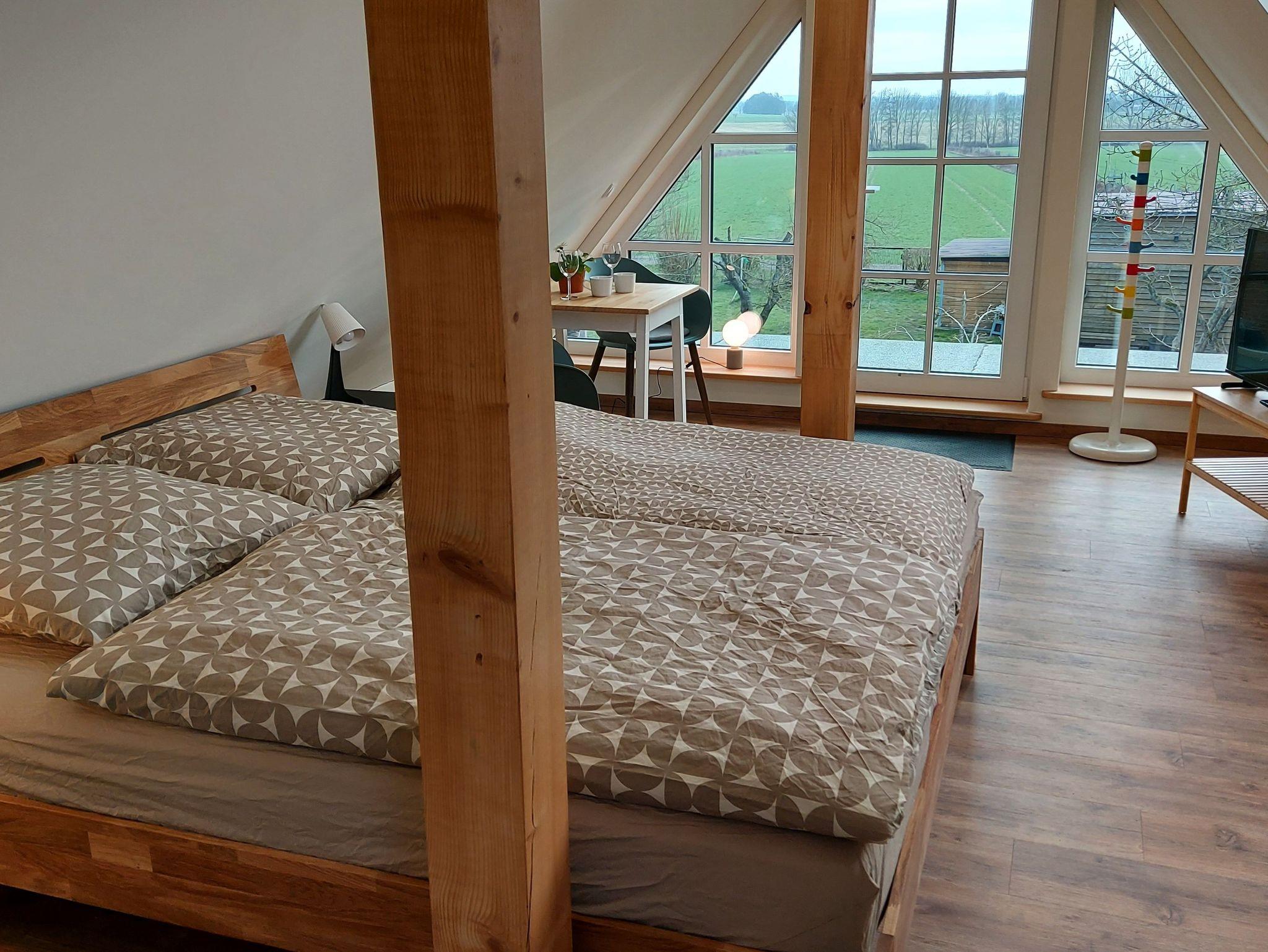 Liebevoll und modern eingerichtete 1-Raum-Ferienwohnung mit Weitsicht auf das Salzhaff klingt nach einem perfekten Rückzugsort! Mit 20m² bietet sie ausreichend Platz für 2 Personen und verfügt über einen eigenen Eingang, der über einen 15m² großen Süd- Balkon zugänglich ist ideal, um die frische Luft und die Aussicht zu genießen.