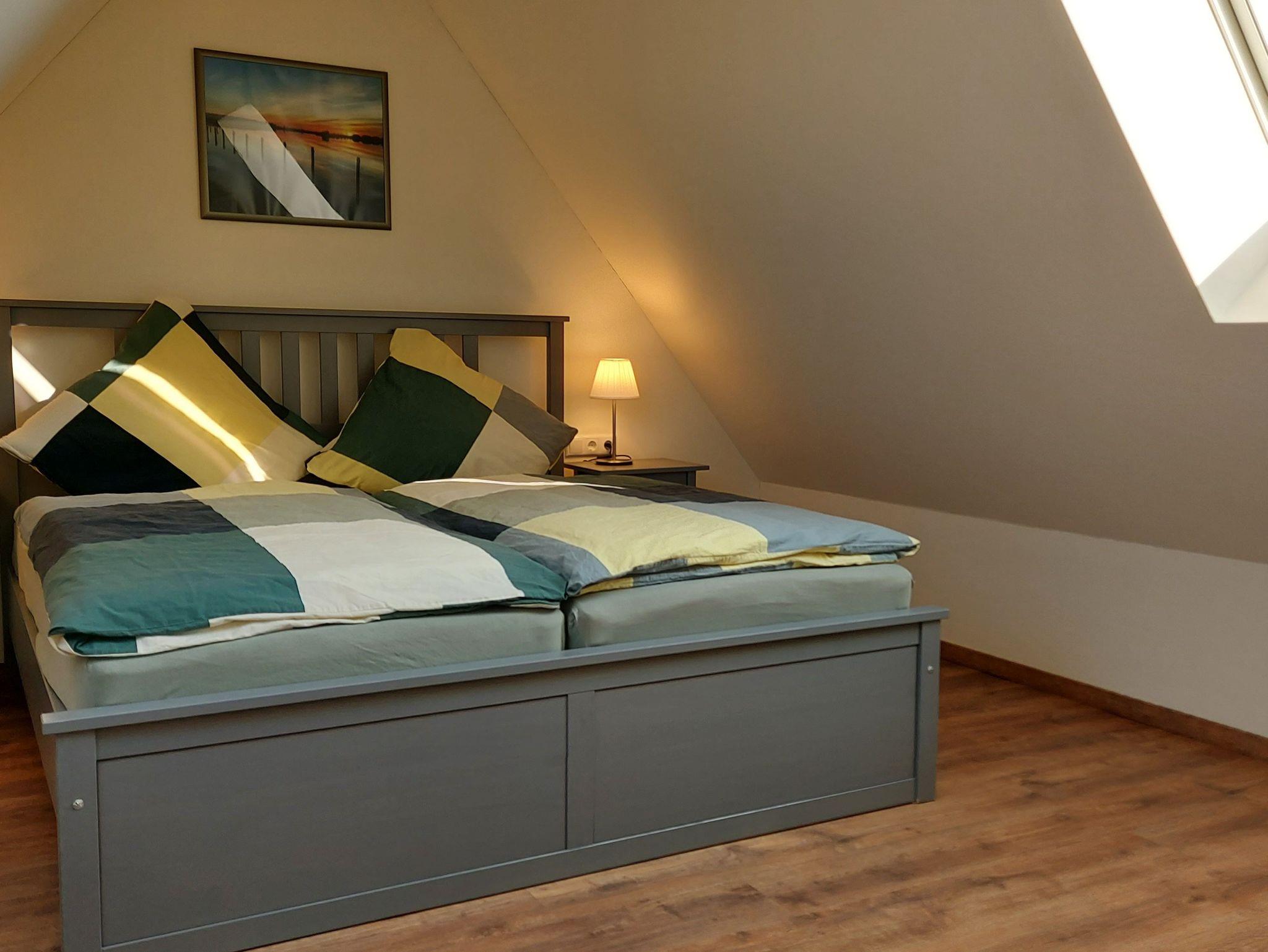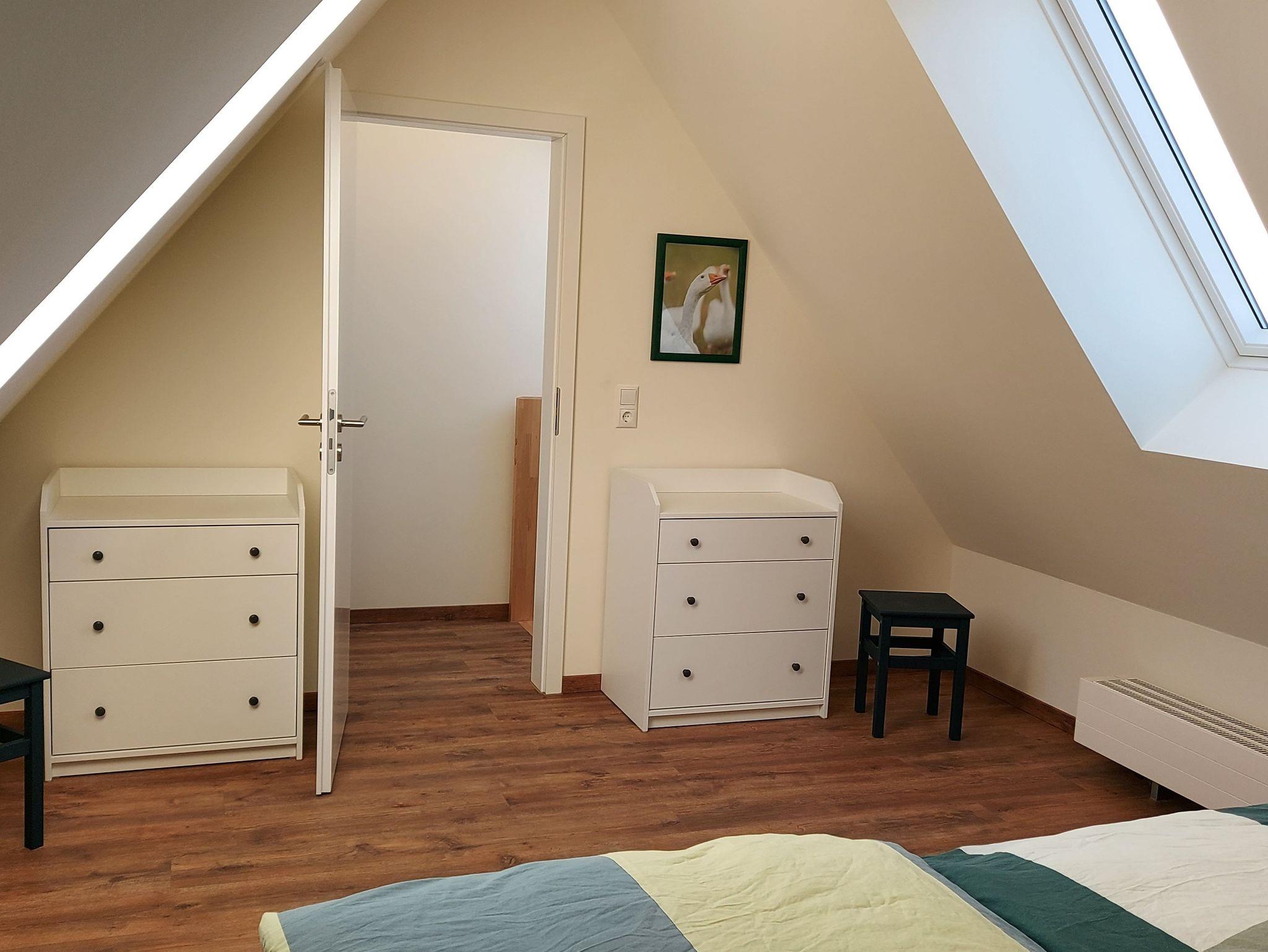 Im zweiten Obergeschoss (Dachgeschoss) Schlafraum mit Doppelbett (2x 0,90 x 2 m).