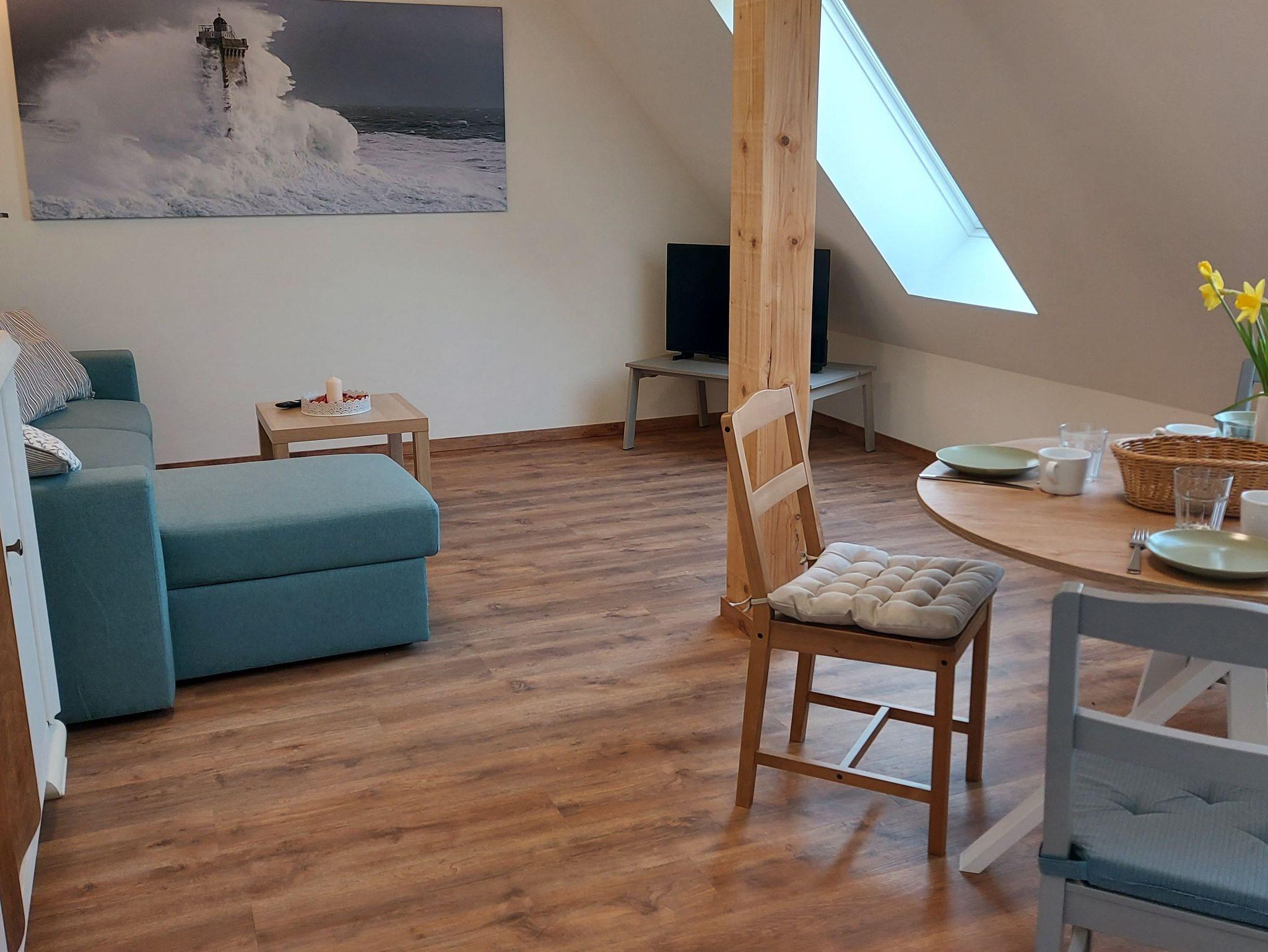 2-Raum-Ferienwohnung mit 60m² auf zwei Ebenen (OG Ober- und DG Dachgeschoss) Platz für 2 bis 4 Personen und ein Baby.
