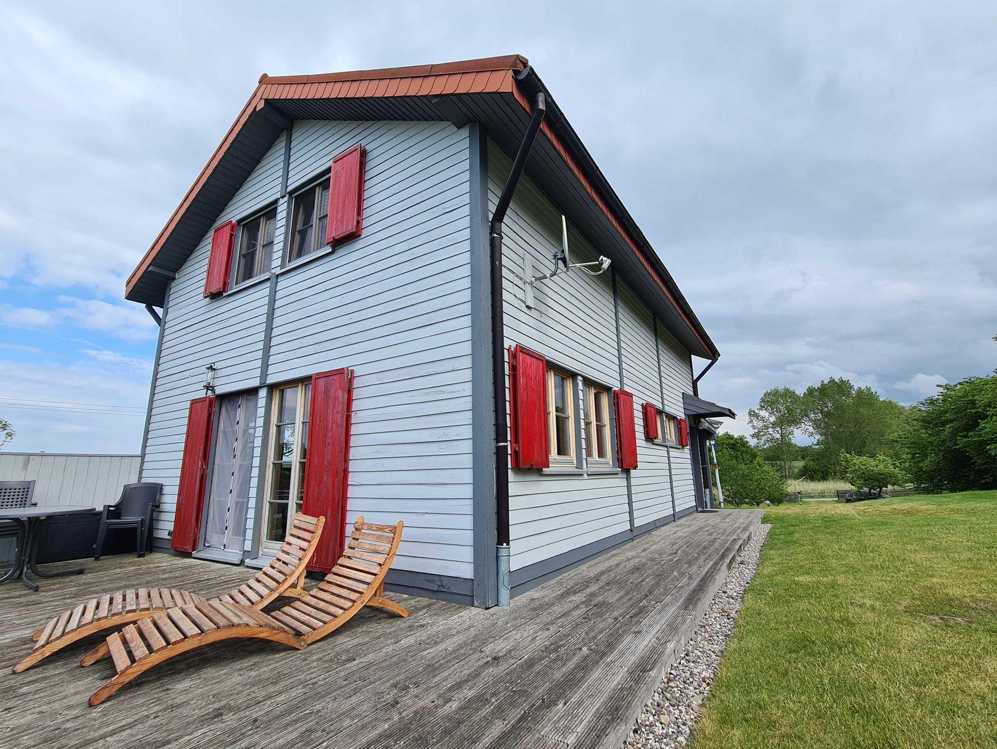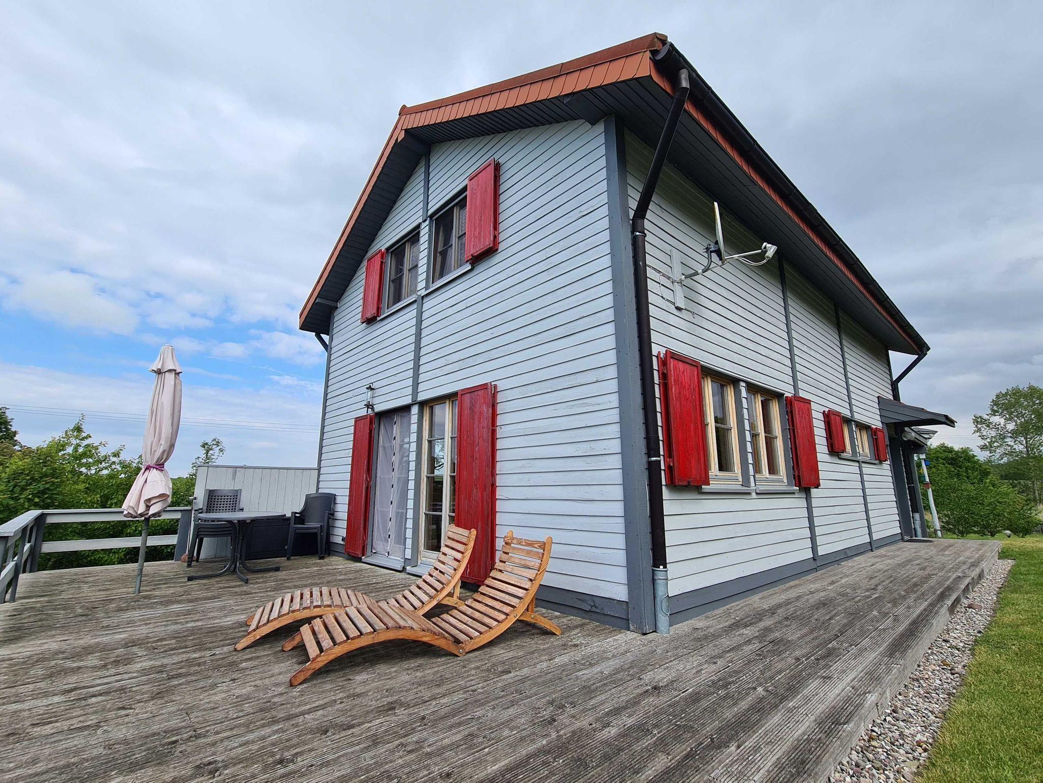 Unterkunft: 4- Raum- Ferienhaus mit Kamin in Holzbauweise (100m²; max. 6 Personen, 3 Schlafräume) mit großer Sonnenterrasse und Grill. Garten und Carport auf eingezäuntem Grundstück. Nichtraucherhaus. Haustiere nicht erlaubt