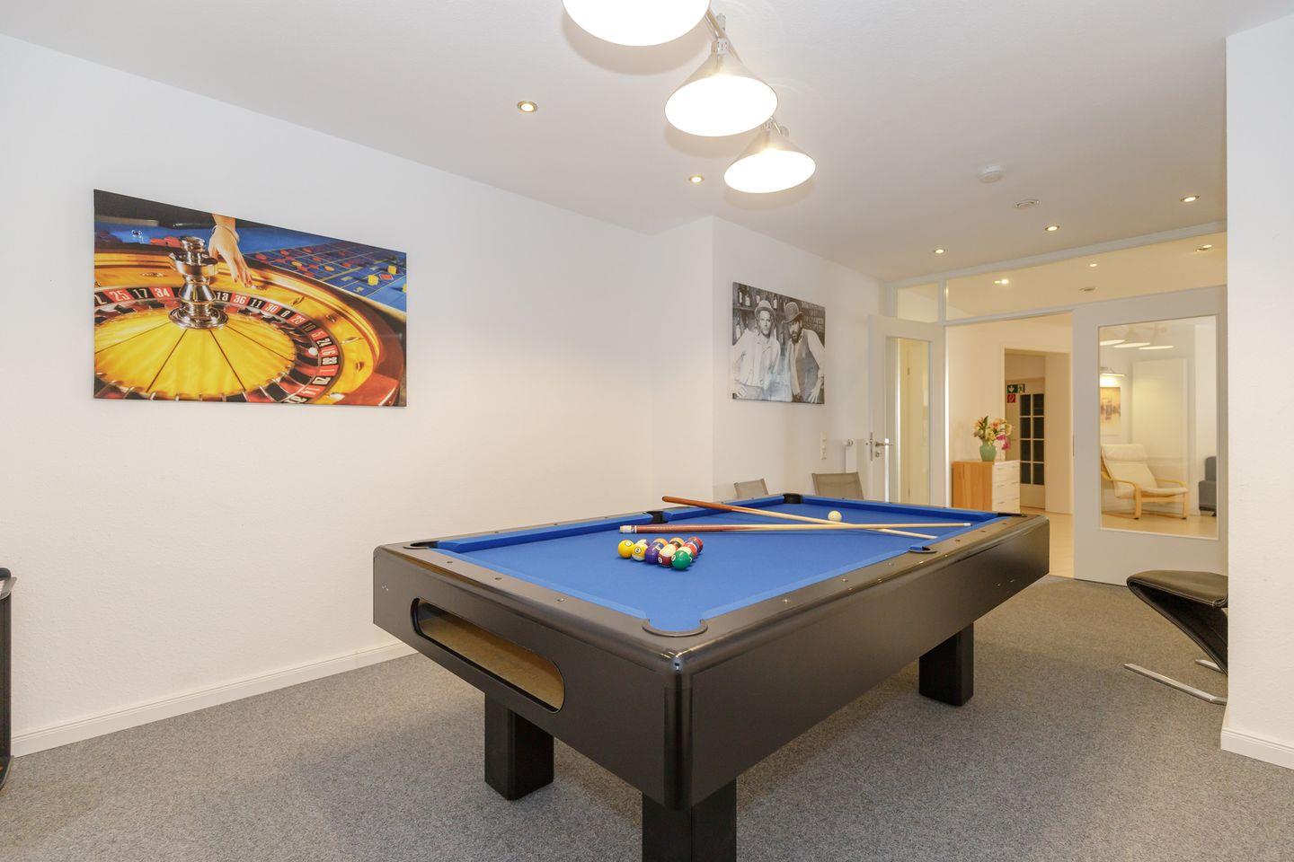 Verfügung. Auch einen Billardraum und einen Tischkicker finden Sie hier vor, so