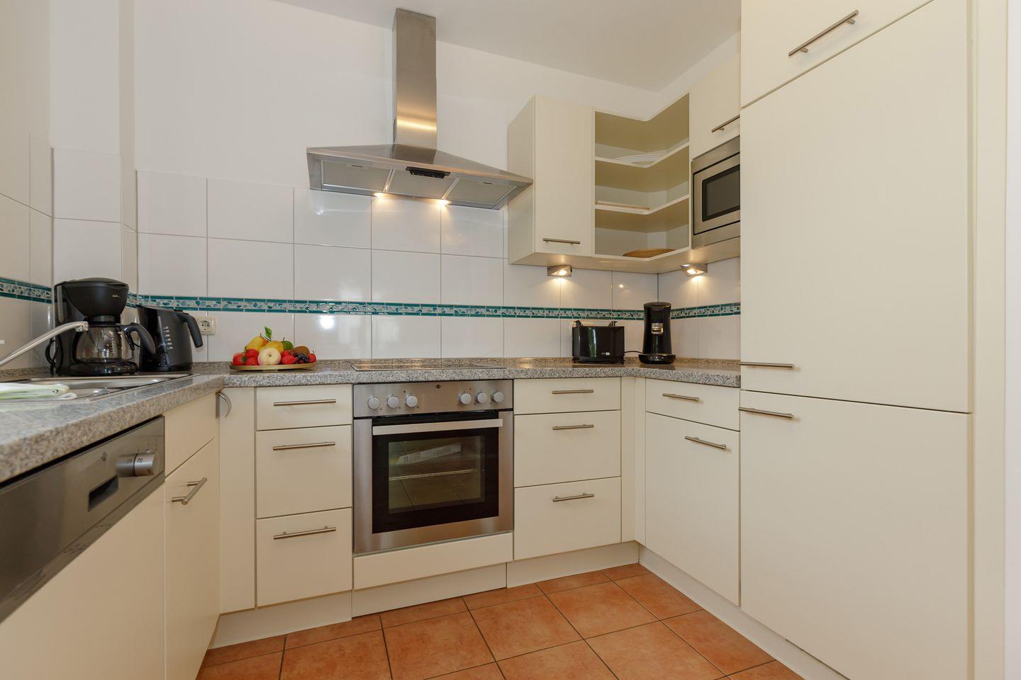 Die Küche ist mit allem technischen Komfort ausgestattet.