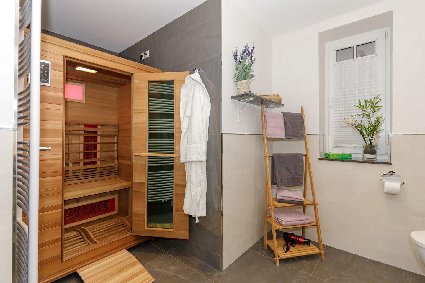 5-Sterne- Luxuswohnung mit Infrarotkabine und privatem Strandkorb.