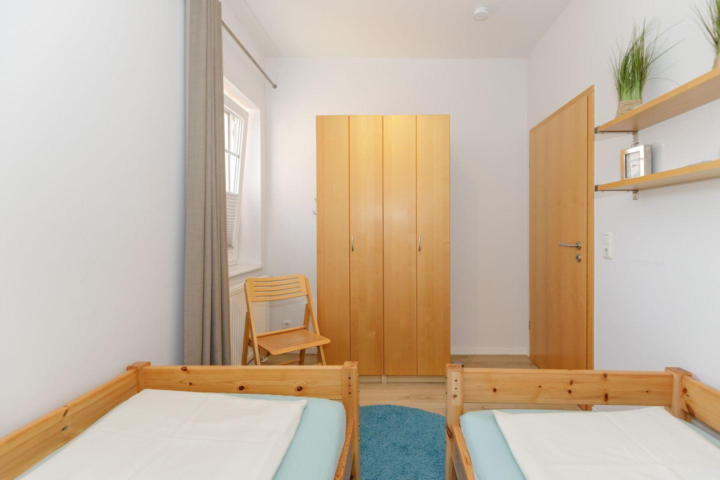Das große Schlafzimmer hat ein Doppelbett (180x200), hier ist auch Platz für ein Reisekinderbettchen. Im kleinen Schlafzimmer stehen 2 Einzelbetten (90x200) . Bettwäsche ist bereits im Mietpreis enthalten.