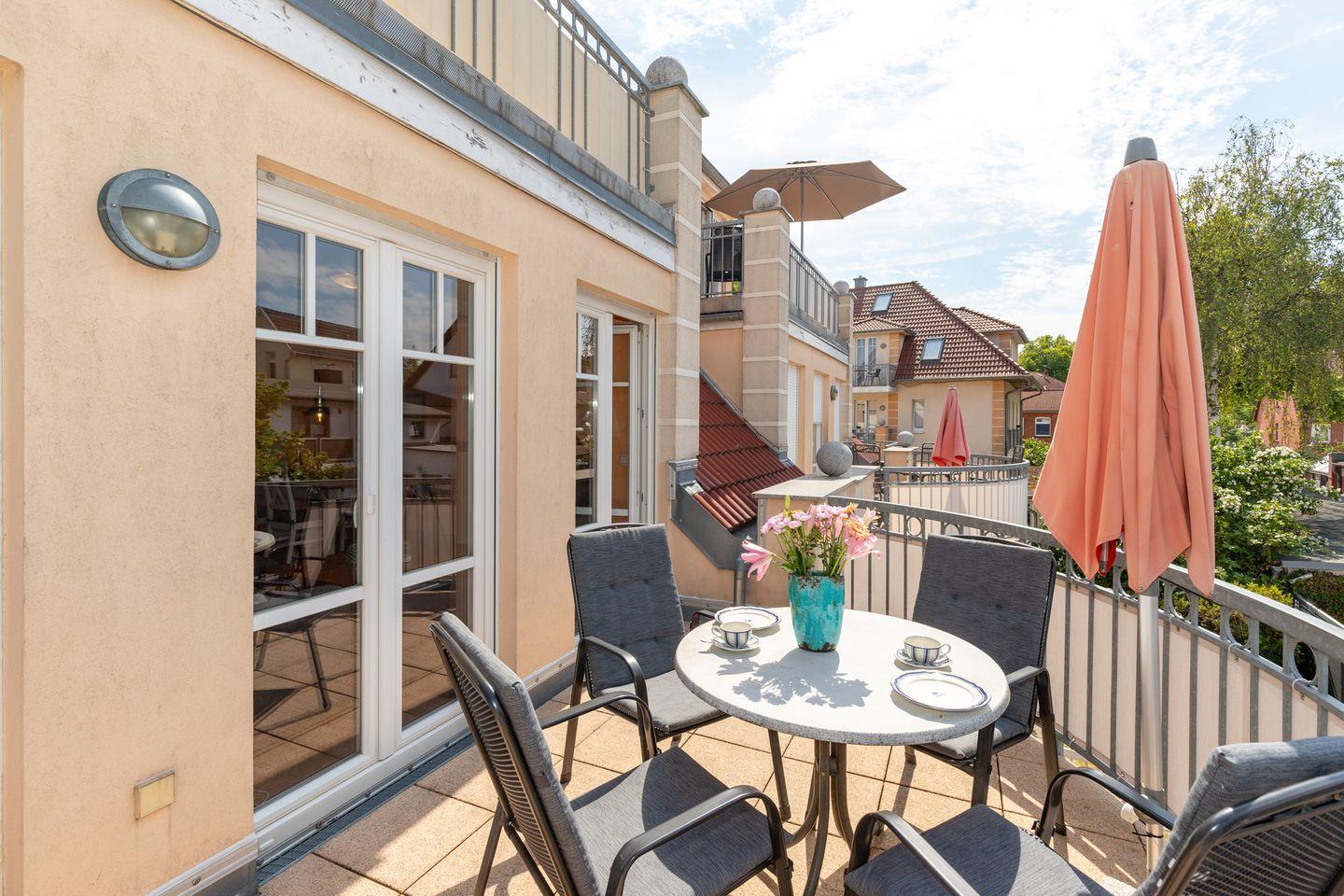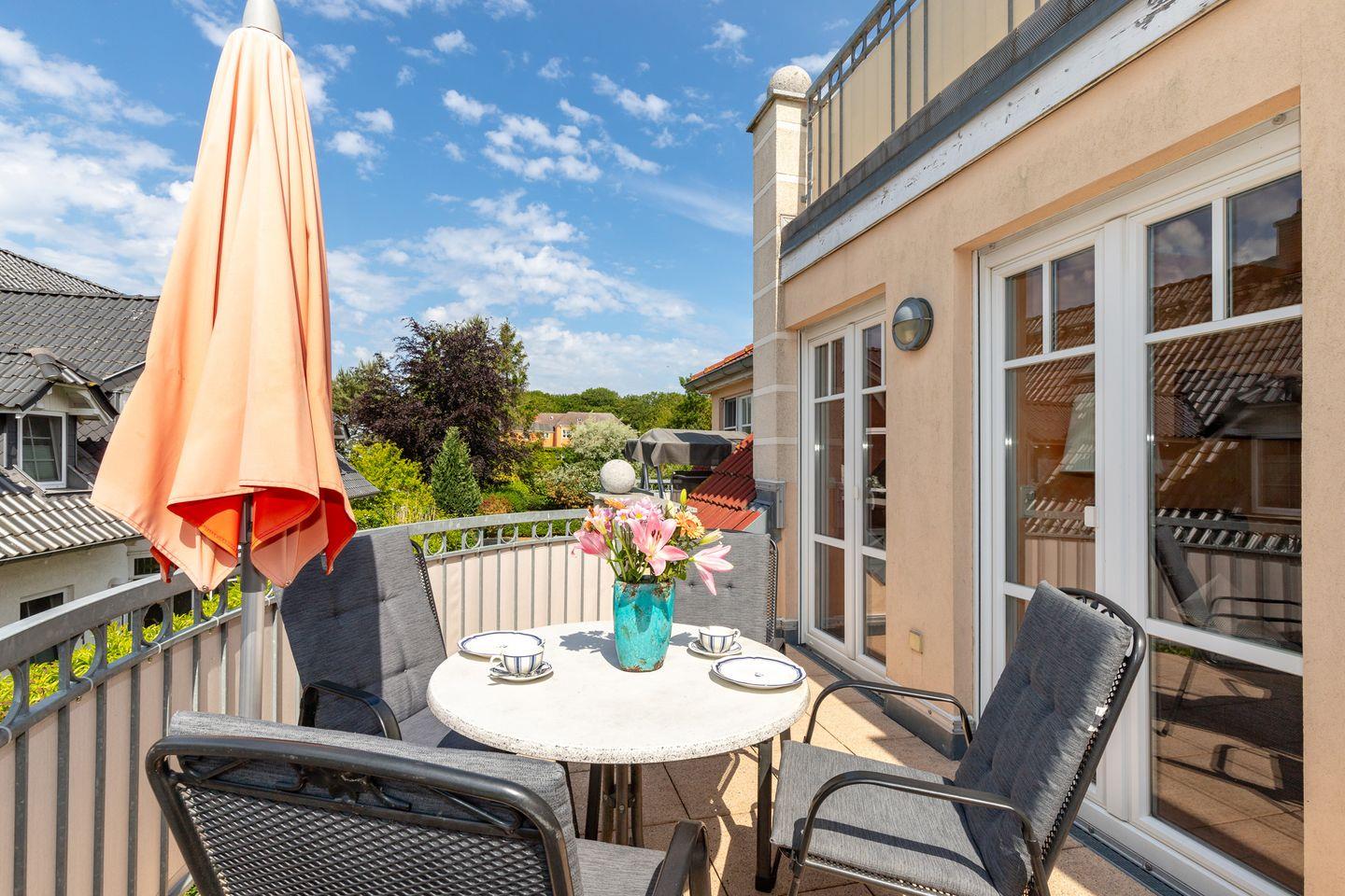 In 46 qm erwarten Sie ein Wohn/Essbereich, ein separates Schlafzimmer, ein Bad mit flacher Dusche sowie ein großer Süd/West-Balkon mit Balkonmöbeln und Sonnenschirm.